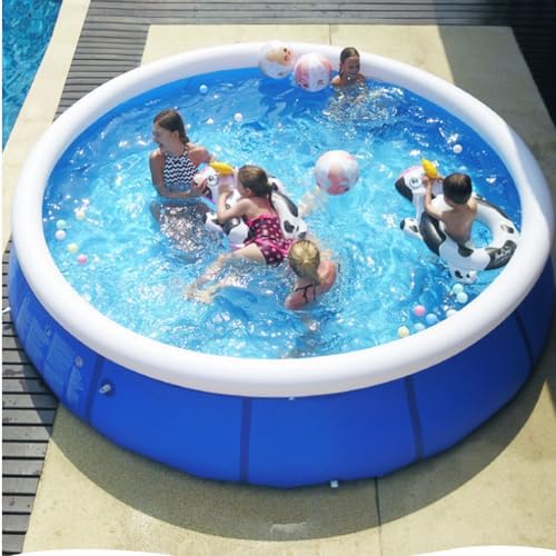Piscina a montaggio rapido: progettata per un divertimento immediato, questa piscina si installa rapidamente, fornendo una soluzione perfetta per le famiglie per rinfrescarsi nelle calde giornate estive senza la necessità di un ampio spazio esterno. Maggiore durata: dotata di un robusto rivestimento a 3 strati, questa piscina presenta una resistenza alla perforazione superiore dell'85% rispetto alle piscine in PVC standard. Le sue pareti laterali resistenti ai raggi UV garantiscono una lunga durata contro l'usura e i fattori ambientali. Installazione e riempimento senza sforzo: basta selezionare un punto di livello, gonfiare l'anello superiore e riempire con acqua. La piscina si alza da sola ed è pronta per l'uso in circa 10 minuti, rendendo la preparazione semplice e veloce. Comodo sistema di drenaggio: dotato di una valvola di drenaggio integrata, svuotare la piscina è facile come collegare un tubo da giardino, facilitando il rapido drenaggio dell'acqua e semplificando lo stoccaggio fuori stagione. Funzionamento senza attrezzi: questo pool elimina la necessità di attrezzi o complesse istruzioni di montaggio, garantendo installazione e smontaggio senza problemi. Il suo design compatto consente di risparmiare spazio quando non viene utilizzato.