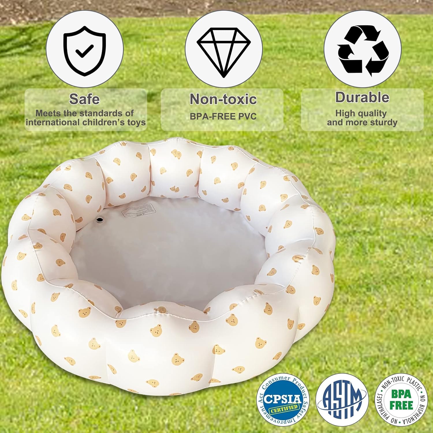 Materiali di qualità avanzata: questa piscina per bambini è realizzata in PVC privo di BPA, che è più resistente e durevole. Adottando questo materiale, soddisfa gli standard internazionali dei giocattoli per bambini, per garantire la sicurezza dei bambini e tanto divertimento fatto in casa Design unico per i bambini: la dimensione della pagaia è consigliata per consentire ai bambini di godersi una festa in piscina in giardino o al chiuso. Multifunzione: la piscina gonfiabile è adatta a molte situazioni: sia all'aperto (può essere utilizzata come piscina all'aperto, piscina sulla spiaggia, piscina con palline oceaniche o piscina per bambini) o all'interno. È possibile aggiungere almeno 300 palline a questa piscina gonfiabile che i bambini adorano, permettendo ai tuoi bambini di giocare felici tutto il giorno. Portatile e comoda: questa piscina può essere gonfiata in 5-6 minuti quando vuoi usarla e facilmente smontabile e riposta per risparmiare spazio. Grande divertimento per i bambini: il tuo amato bambino può godersi tutto il tempo di divertimento e relax in acqua. È una scelta meravigliosa per l'estate fresca