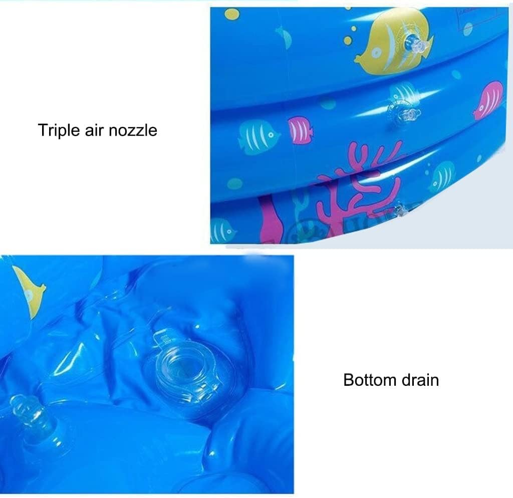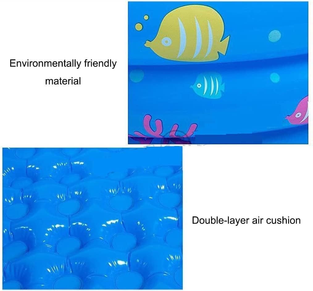 Double-layer air cushion, the bottom is designed with a double-layer air cushion, which not only makes the child step on more comfortable, but also effectively keeps warm in autumn and winter. PVC material, repeated folding without deformation, thickened material is air-proof, anti-exposure. The bottom drainage port, the bottom of the leaking gasket design, the drainage speed is faster and more convenient. Triple air nozzles and three independent inflation ports make it easier to inflate. Faster when deflating. Fantastica e vivace piscina per tutta la famiglia.