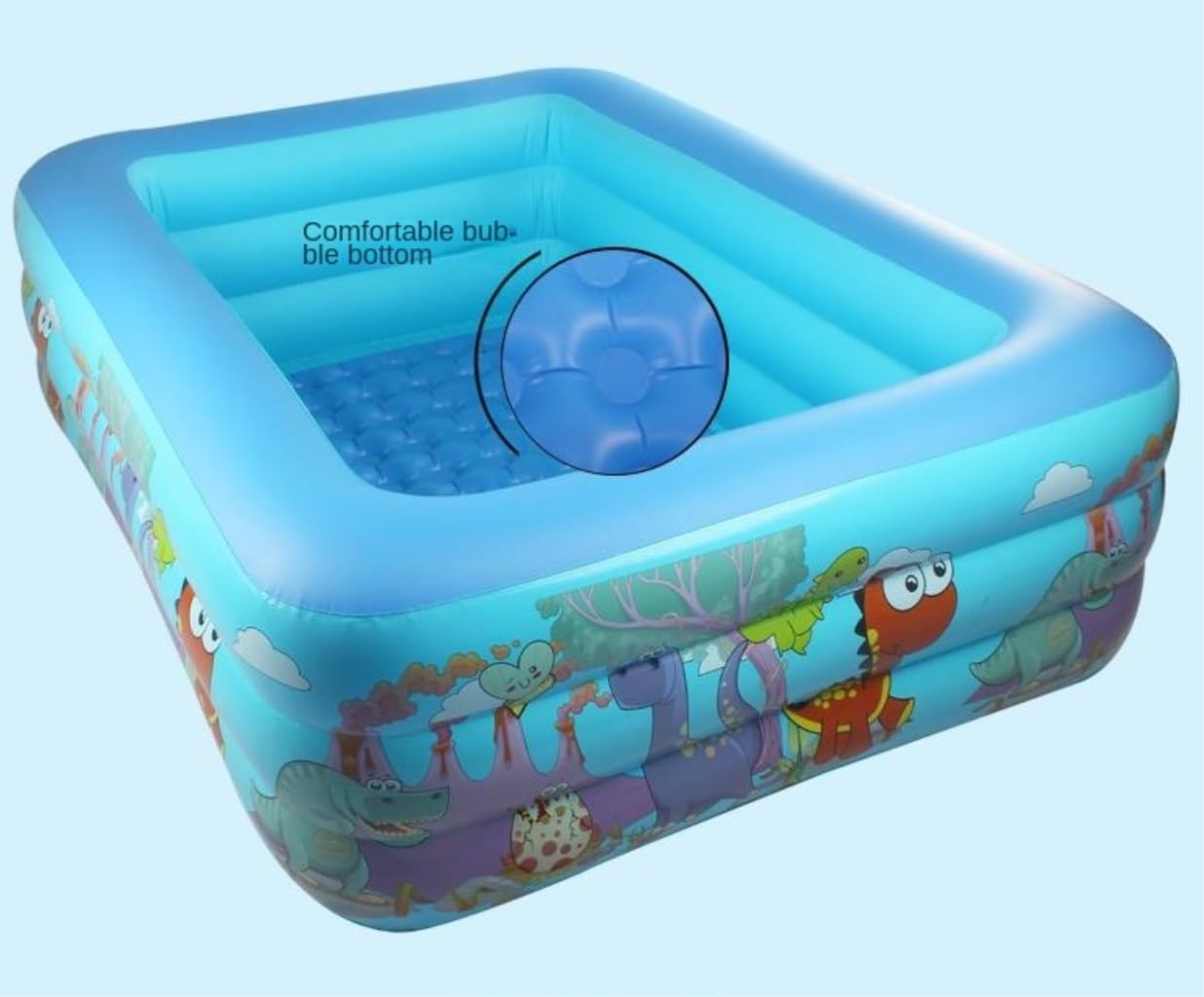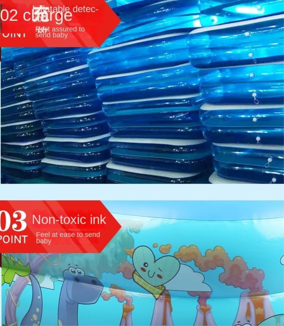 Easy to Inflate: Individual air chambers make this swimming pool easy to inflate and deflate while preventing water or air leakage. Easily inflated in 3-4 minutes with an hand air pump(Without air pump). It is large enough to hold around children to enjoy a splashing pool party. User Friendly The thick bottomed inflatable bladder effectively block The cold o The ground, avoidin The rapid drop in water temperature, and prevent The baby from falling and stung while swimming or playing i The pool, enjoy your splendid summer time. Safe & Sturdy This inflatable swimming pool is made with high-strength tough material, environmental protection , wear-resistant and durable, reducin The risk of puncture and ensuring a longer service life. Fantastica e vivace piscina per tutta la famiglia.