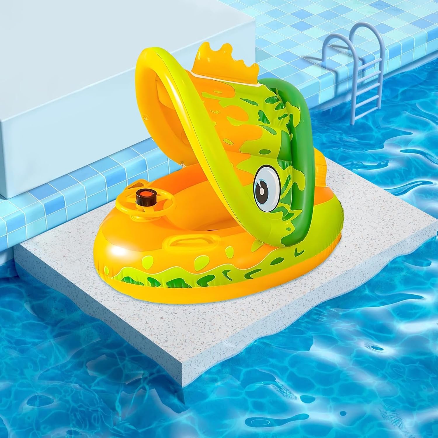 Costruzione robusta: questo salvagente per bambini si basa sulla sicurezza grazie al bordo rinforzato, allo schienale confortevole e alla costruzione affidabile a prova di perdite per un piacere spensierato in acqua. Design delicato sulla pelle: combina PVC inodore con proprietà delicate sulla pelle per un uso duraturo e un divertimento sicuro in piscina. Spruzzi sicuri: motiva i bambini da 1 a 5 anni a esplorare in acqua giocosa con il salvagente e il clacson a forma di barca – offrono ulteriore intrattenimento per un'esperienza di piscina sicura e fantasiosa Stabile: appositamente progettato per i bambini con tenuta sicura, protezione UV grazie al tetto rimovibile e alla comoda funzione di gonfiaggio per una conservazione ordinata. Funzione di supporto delicata: la combinazione di parasole e cuscino voluminoso garantisce un sollievo ergonomico ottimale e previene le irritazioni della pelle