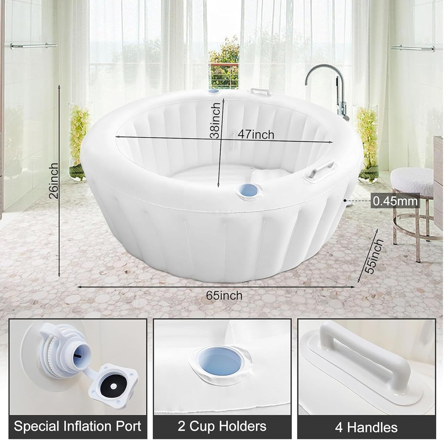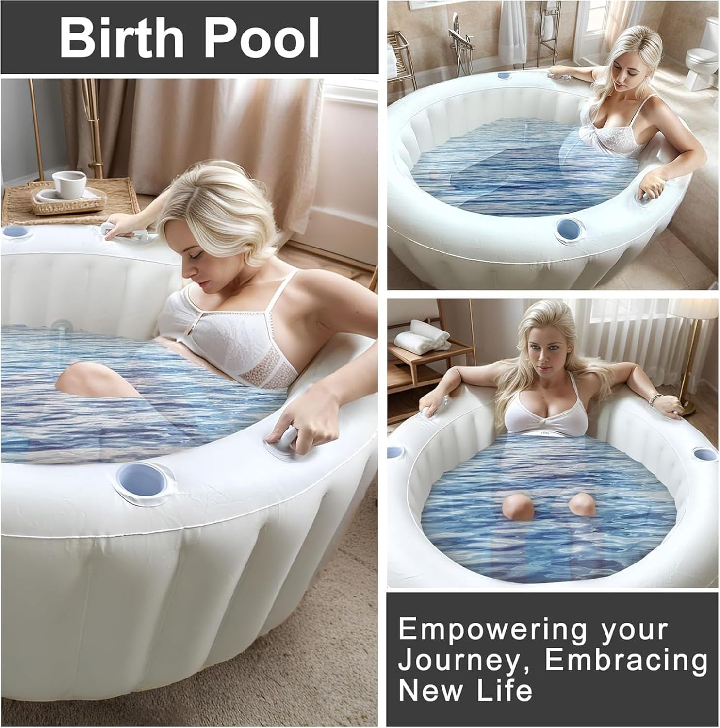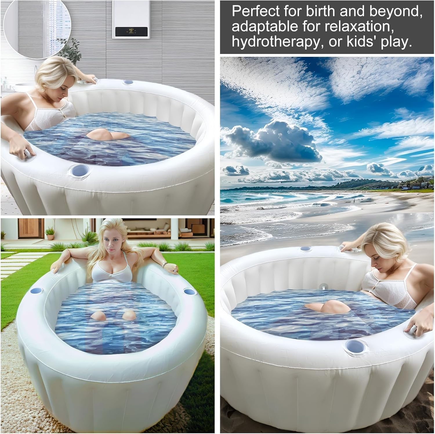 Materiale affidabile: questa piscina è realizzata in materiale PVC spesso di qualità, durevole e resistente all'usura, offrendo alla futura mamma un'esperienza sicura, stabile e confortevole durante il parto; Il PVC fornisce un ambiente robusto ma flessibile, adatto alle procedure di parto in acqua. Utilizzo versatile: la piscina da parto non è solo per il parto. Serve anche come vasca rilassante nei giorni normali e come piscina divertente per il tuo piccolo dopo la nascita. Questo prodotto è progettato per servirti oltre il tuo viaggio di nascita in casa. Installazione semplice e conservazione comoda: la nostra vasca da parto è dotata di una pompa di gonfiaggio incorporata che può preparare la piscina da parto in soli 5 minuti. Il design semplice semplifica l'imballaggio e la conservazione, garantendo una preparazione senza stress per i tuoi momenti speciali. Caratteristiche utili per il comfort: la piscina per il parto in casa è dotata di quattro maniglie e due portabicchieri, rendendo facile e comodo l'ingresso e l'uscita delle future mamme. Ogni dettaglio mira a rendere la tua esperienza di parto più fluida. Design elegante e sofisticato: la piscina da parto presenta un'estetica ispirata ai marshmallow che trasuda lusso e comfort. Il suo design elegante lo rende un'aggiunta elegante alla tua casa fornendo al contempo il massimo comfort durante il processo di parto.