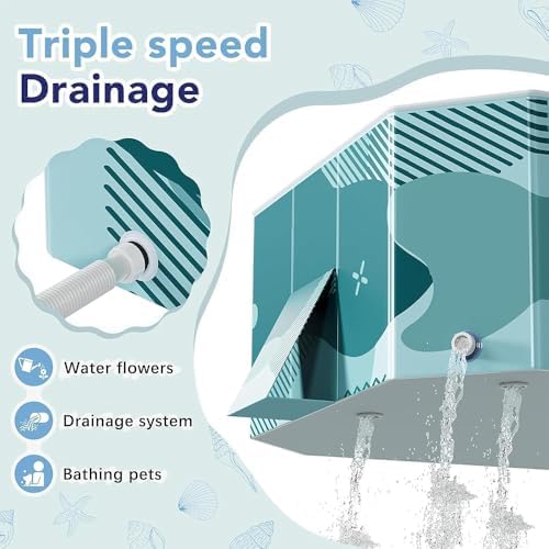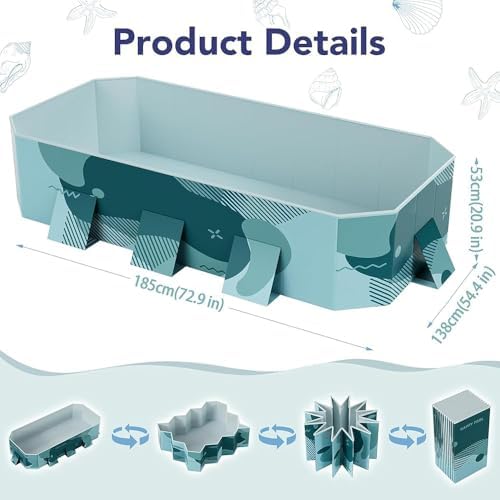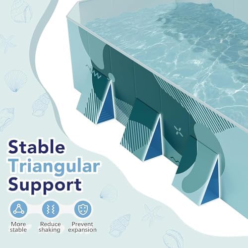 Uso versatile per interni ed esterni: questa piscina rettangolare è progettata per adattarsi perfettamente a varie impostazioni, sia in cortili, prati all'aperto o bagni interni. Goditi la libertà di rilassarti e battere il caldo in qualsiasi giorno estivo, in qualsiasi luogo. Ampio divertimento in famiglia: Caratterizzata da un design a parete sottile che massimizza lo spazio utilizzabile, questa piscina offre una generosa capacità per tutta la famiglia di nuotare e giocare insieme. Trasforma il tuo cortile in un parco acquatico personale per un divertimento condiviso e esperienze memorabili. Drenaggio facile e veloce: progettato con 3 porte di drenaggio posizionate strategicamente (fondo e lati) per uno svuotamento rapido. Questo efficiente sistema riduce notevolmente i tempi di pulizia e semplifica la manutenzione, permettendoti di tuffarti in acque rinfrescanti ogni volta che vuoi. Struttura robusta e di lunga durata: realizzata in plastica rigida di alta qualità, PVC resistente agli strappi e MDF, questa piscina vanta una struttura stabile. Le staffe multidirezionali distribuiscono uniformemente il peso, migliorando la stabilità e fornendo una protezione affidabile per un uso prolungato. Assemblaggio compatto, portatile e facile da usare: il design pieghevole di questa piscina elimina il fastidio delle tradizionali configurazioni gonfiabili. Non è necessaria alcuna installazione complicata, puoi goderti senza sforzo un'esperienza d'acqua rinfrescante in pochissimo tempo.