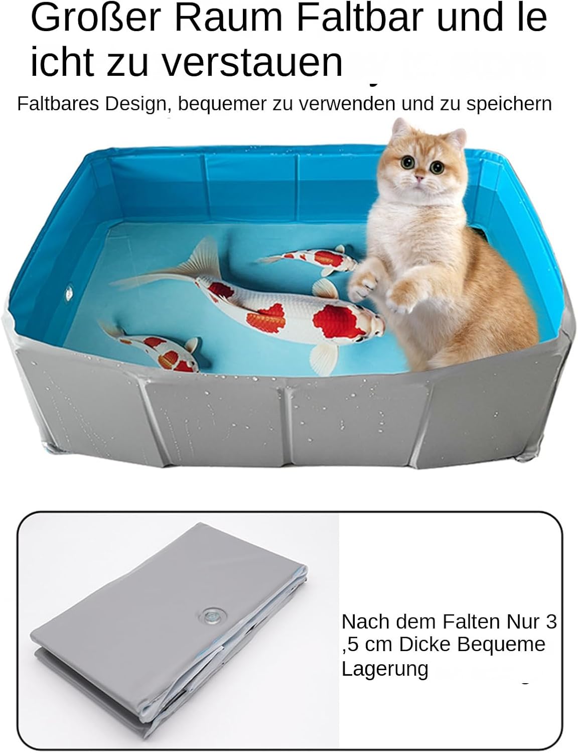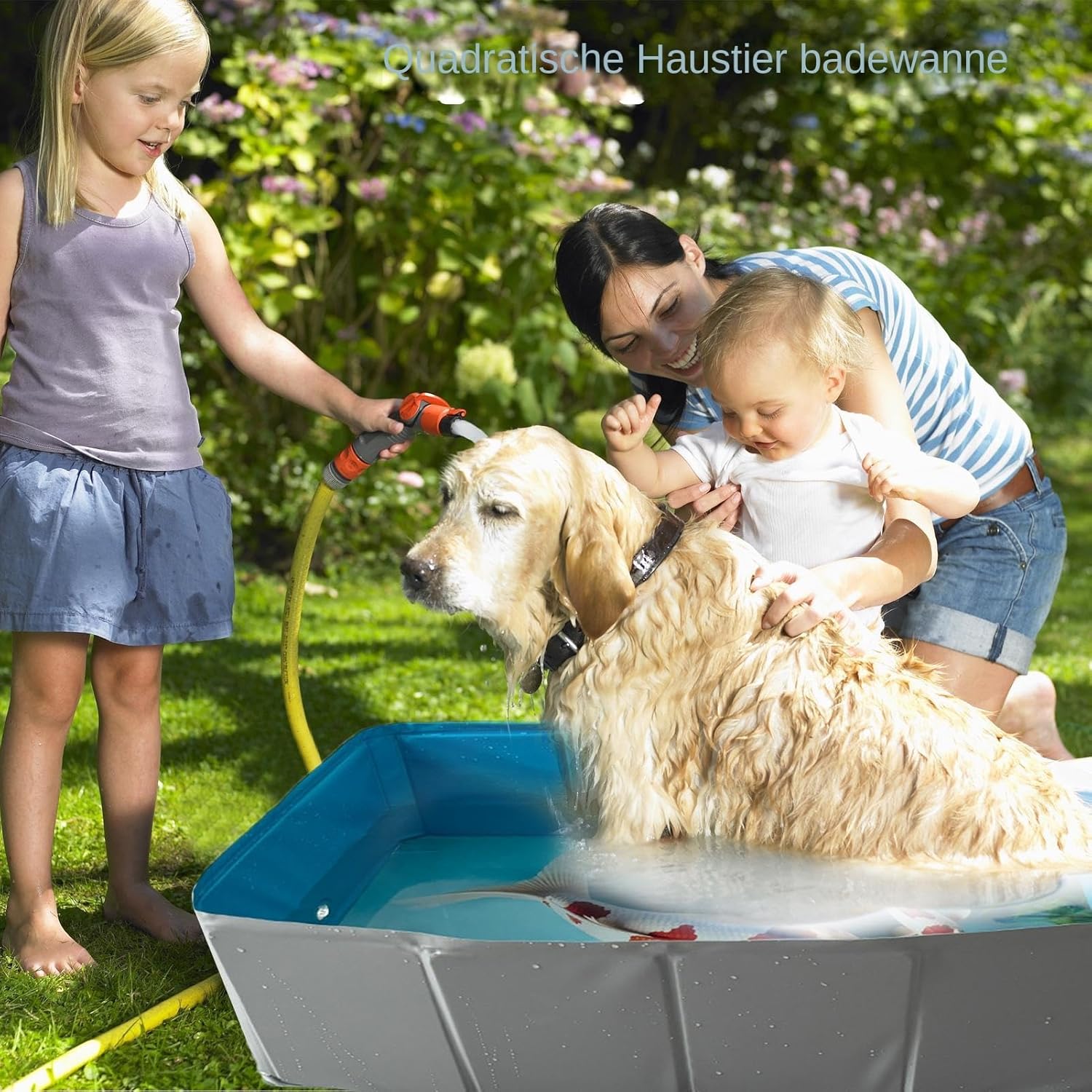 Piscina multifunzionale: questa piscina per animali domestici è facile da pulire e divertirsi. La pratica forma quadrata si adatta a piccoli giardini e terrazze, offre comfort per gli animali durante il bagno e il gioco. Rifugio fresco: offre agli animali domestici un'oasi rinfrescante per rinfrescarsi in estate e per la routine quotidiana di cura a casa. Perfettamente adatto per gite in tenda e applicazioni versatili in diverse situazioni. Garantisce comfort in diversi ambienti e semplifica la manipolazione per i proprietari di animali domestici. Tecnologia antiscivolo: lo speciale fondo di sicurezza in PVC resistente agli strappi offre una presa ottimale, previene efficacemente lo scivolamento e protegge gli amici a quattro zampe su tutti i tipi di pavimento Pratica da usare: questa piscina per cani è pronta all'uso poiché non è necessario alcun montaggio. Dopo essere stato riempito con acqua per il divertimento del vostro animale domestico, si può pulire facilmente, asciugare e ripiegare per risparmiare spazio, ideale per una facile manutenzione quotidiana. Pieghevole e salvaspazio: grazie al design portatile, la vasca pieghevole per animali domestici è perfetta per una facile maneggevolezza, montaggio rapido e conservazione compatta in poco spazio.