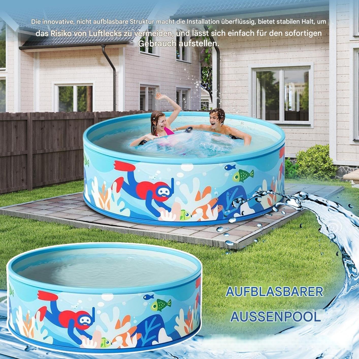 Uso esterno multiuso: adatta per giardini, cortili e spazi esterni, questa piscina funziona come un bagno rinfrescante per animali domestici, un paraspruzzi per bambini o un bagno rilassante per adulti che offre giochi estivi utili tutto l'anno. Sicura per tutte le età: progettata con bordi lisci e pareti robuste per garantire un'esperienza confortevole e sicura per bambini e adulti, rendendola una soluzione versatile per il bagno all'aperto per il relax della famiglia. Installazione semplice e veloce: semplice da gonfiare e riempire, questa piscina è ideale per l'uso spontaneo senza attrezzi o assemblaggi complessi richiesti e altrettanto facile da svuotare e ripiegare per riporla in modo compatto quando non è dentro. utilizzare la struttura in PVC ispessito: realizzata con materiale in PVC ispessito ad alta resistenza, questa piscina rotonda è progettata per durare e per un uso duraturo fornendo un ambiente di nuoto stabile e sicuro sia per i bambini che per gli adulti nel vostro giardino Spazioso divertimento per tutta la famiglia: ampio spazio per bambini e adulti per divertirsi insieme, perfetto per giocare con giochi d'acqua in giardino o semplicemente per rinfrescarsi durante le calde giornate estive creando ricordi duraturi con amici e familiari all'aperto