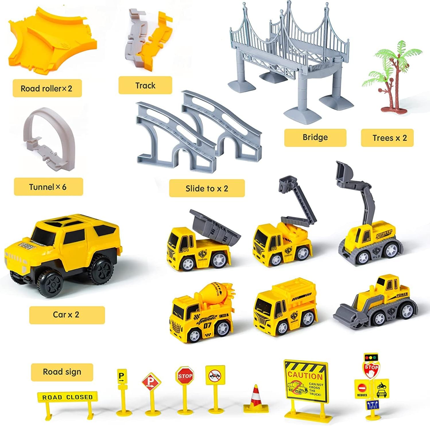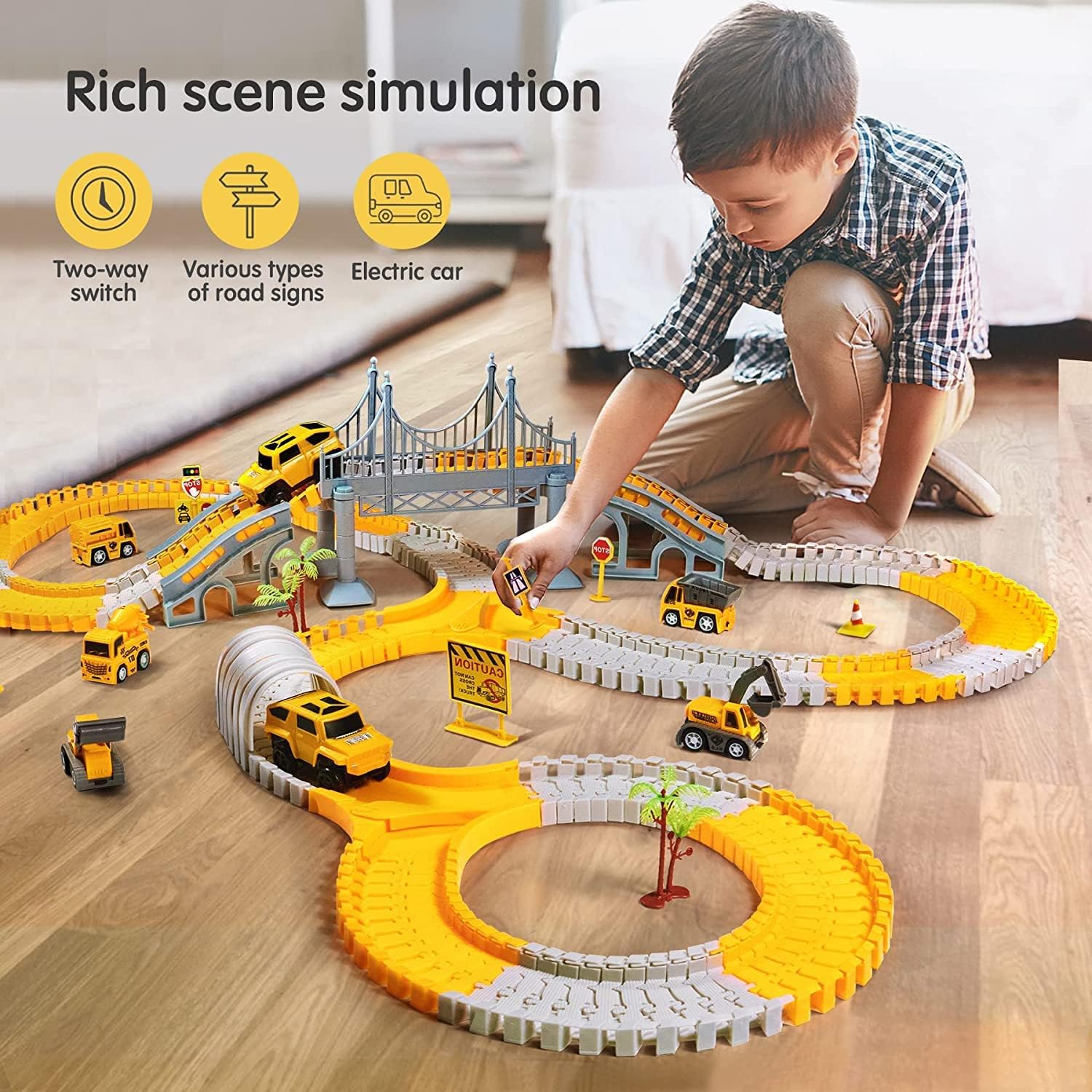 【Pacchetto incluso】2 auto elettriche (senza batteria), 6 veicoli inerziali (rulli compressori, bulldozer, escavatori, autocarri con cassone ribaltabile, piattaforme di lavoro, veicoli per l'irrigazione), pezzo ferroviario, viadotto, ponti ad arco, tunnel, binario a Y, albero, segnali stradali da rimuovere. I veicoli elettrici possono guidare da soli o manualmente con altri veicoli inerziali in pista. Il binario è flessibile in modo che il bambino possa girarlo, ruotarlo e regolarlo. Configurazione avanzata per costruire il tuo regno di costruzioni per i tuoi piccoli! 【Giocattolo educativo dai 3 anni in su】 Costruendo e progettando un garage per dinosauri, i bambini possono migliorare le abilità manuali, la coordinazione occhio-mano, il pensiero spaziale (riconoscendo posizione e direzione), la risoluzione dei problemi e l'intelligenza creativa e strategica. Perfetto per giochi di famiglia, attività di gruppo, lavoro di squadra in classe e altro ancora. Configurazione avanzata Costruisci il tuo regno di costruzioni per i tuoi piccoli! 【Più accessori, più modi di giocare】 L'auto da corsa può attraversare il ponte e le parti del binario possono essere piegate e fissate per formare una varietà di forme diverse di binario. Ogni camion è dotato di bracci di lavoro mobili. I bambini possono far finta di fare tutti i tipi di lavori di costruzione con questi camion e trascorrere ore usando la creatività e l'immaginazione per costruire il proprio mondo in orbita. 【Sicurezza e dettagli al primo posto】 Realizzato con materiali atossici, la sicurezza viene sempre al primo posto. Ogni pista da costruzione è progettata appositamente per adattarsi perfettamente alla mano del bambino, facile da trasportare, gioca nella borsa ovunque, regalo perfetto per i più piccoli a Natale, Pasqua, compleanno e altre festività. Regalo perfetto, servizio clienti: la squisita scatola colorata progettata rende questo oggetto da corsa da costruzione molto adatto come regalo per ragazzi e ragazze di 3 4 5+ anni. Feste di compleanno, Pasqua, Natale, Ringraziamento o Festa dei bambini, ecc. Se non sei soddisfatto del nostro prodotto, contattaci. La soddisfazione del cliente è la nostra massima priorità. Usiamo la stessa scatola in questa serie di auto. In caso di problemi con questo set di piste da corsa, contattaci. Speriamo di offrirti la migliore esperienza di acquisto.