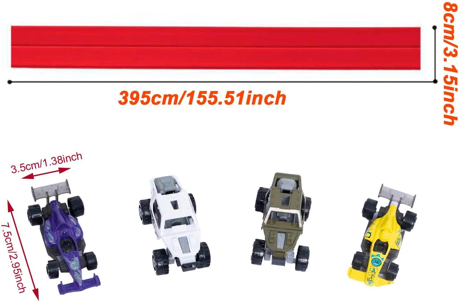 【REGALO PER GIOVANI CORRIDORI】: Questo versatile set di piste è la scelta ideale per compleanni e festività. Realizzato in polipropilene, è progettato per offrire ore di intrattenimento coinvolgente per bambini dai 3 anni in su. 【AZIONE EMOZIONANTE AD ALTA VELOCITÀ】: L'esclusivo design flessibile consente al modello di auto incluso di accelerare, sfrecciare attraverso curve strette e spiccare dai . È un'esperienza di gioco dinamica che dà vita ai concetti di velocità in modo divertente e pratico. 【INSTALLAZIONE IMMEDIATA e FACILE DA CONSERVARE】: Grazie all'innovativo design a ventosa, questa pista flessibile per auto da corsa si fissa saldamente a tutte le superfici: pareti, porte, pavimenti o mobili. Al termine della gara, flessibile si arrotola semplicemente per un facile e compatto stoccaggio. Ideale per il divertimento in viaggio e nelle sale giochi. 【DIVERTIMENTO FAI DA TE】: Questa enorme pista flessibile può essere piegata, curvata e modellata in innumerevoli configurazioni. I bambini possono costruire emozionanti, curve strette e persino loop impegnativi, stimolando la loro immaginazione e capacità di problem solving. 【SET DA CORSA】: Questo kit completo include auto pressofuse pronte per l'azione. Abbinato alla lunga pista da 3,95 metri, questo set fornisce tutto il necessario