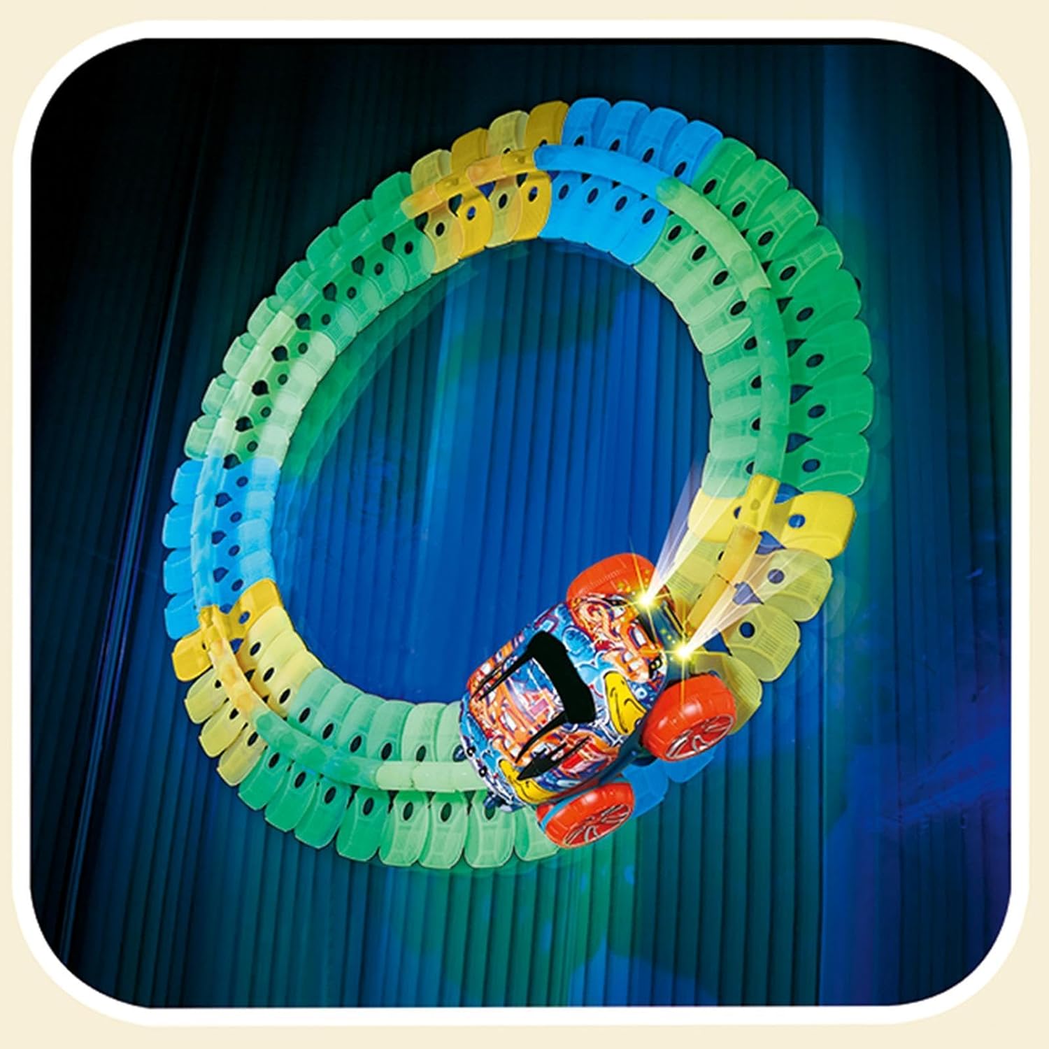 Installazione semplice e veloce: con colori vivaci e una funzione dinamica che si illumina al buio, i bambini possono mostrare la loro creatività e assemblare piste uniche che girano a destra e a sinistra con facilità. La nostra pista per auto da corsa facile da montare offre un'esperienza di corsa migliorata che promette più divertimento Gara sicura: goditi un'esperienza di corsa ininterrotta mentre le robuste pulegge si fissano saldamente alla pista, prevenendo eventuali cadute durante la caduta o l'arrampicata Sicuro e robusto: sicuro per i bambini piccoli curiosi, i bordi sono tutti arrotondati, garantendo l'assenza di angoli appuntiti; senza piccole parti, il che lo rende perfetto per un gioco senza preoccupazioni. Destrezza migliorata: incoraggia la crescita cognitiva di tuo figlio con un emozionante set da corsa automobilistica. Il giocattolo puzzle perfetto per il miglioramento delle abilità motorie, mantiene i tuoi bambini emozionati per ore favorendo il loro sviluppo Regalo ideale: delizia il tuo bambino con questa fantasiosa pista per auto da corsa, offrendo ore di intrattenimento e potenziando le sue capacità motorie e la sua immaginazione: il regalo perfetto per ogni occasione