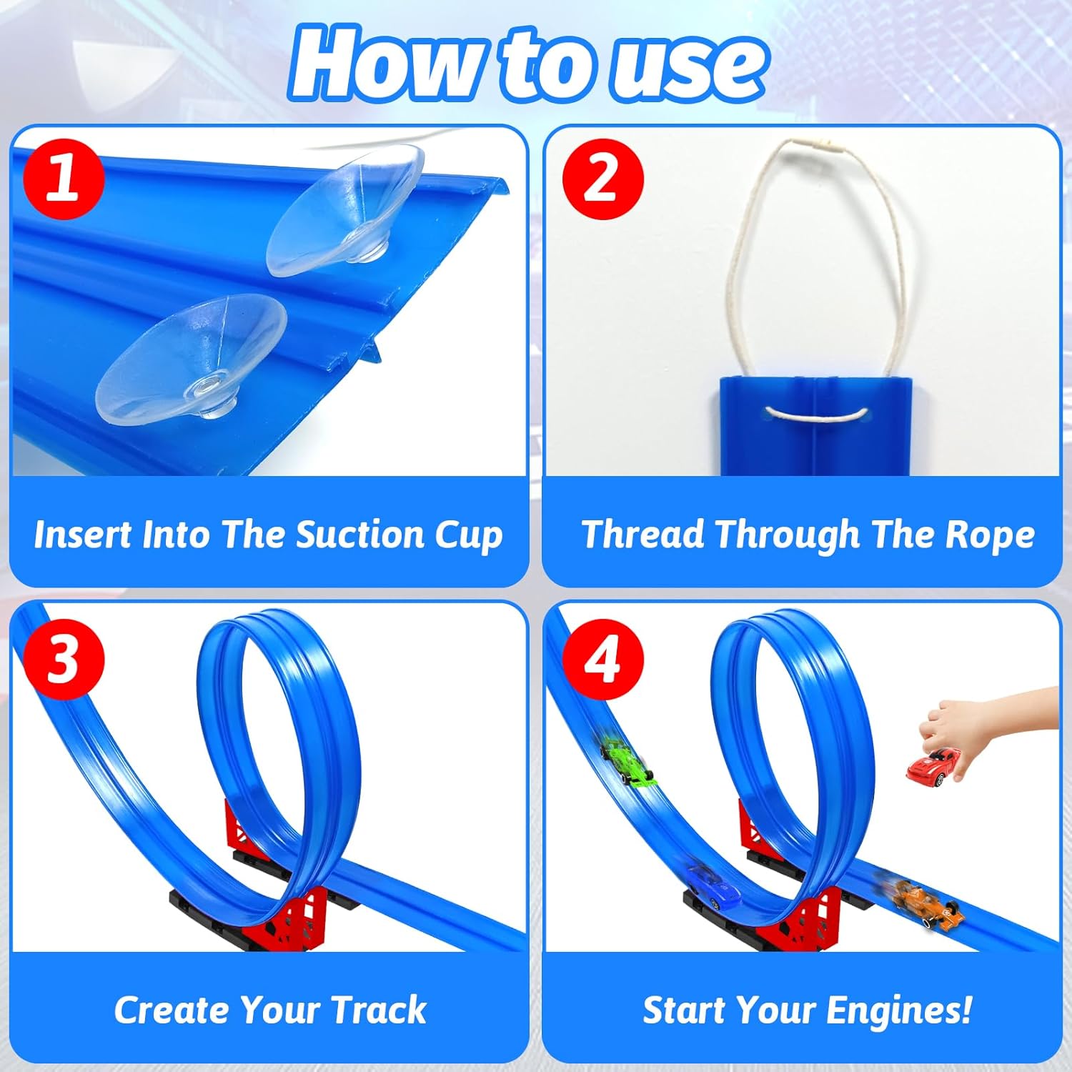 【Traccia flessibile】 Preparati per alcune gare folli! Questo entusiasmante set include una pista flessibile bidirezionale da 4 metri, 4 mini macchinine, 2 telai, 4 rampe, 4 connettori, 9 ventose, 1 cavo e un chiaro manuale di istruzioni. Tutto ciò di cui tuo figlio ha bisogno per costruire e gareggiare è incluso, perfetto per divertirsi con i fratelli o gli amici! 【Portatile e versatile】Corri con te ovunque! Grazie al suo design flessibile e alle potenti ventose, questa pista per auto può essere installata in meno di 30 secondi su quasi tutte le superfici lisce, finestre, pareti, tavoli, porte in vetro o anche all'aperto. Crea anelli, rampe e pendenze all'interno o all'esterno. Leggero e facile da arrotolare, è perfetto per i viaggi, gli appuntamenti di gioco o le avventure in giardino. 【Durevole e sicuro】 Circuito per auto flessibile realizzato con materiali di alta qualità, questo circuito è abbastanza resistente da non strapparsi o piegarsi. È impermeabile, si pulisce facilmente e non ha spigoli vivi, rendendolo ideale per i giovani ciclisti. Una volta finito il divertimento, basta arrotolarlo per riporlo in modo compatto. È costruito per resistere ad anni di gioco creativo e uso intensivo. 【Stimola la creatività e il gioco attivo】 I bambini possono progettare le proprie tracce con curve, salti e loop. Questo circuito incoraggia l'immaginazione e la risoluzione dei problemi migliorando al tempo stesso le capacità motorie e la coordinazione occhio-mano. Utilizzata da sola o come parte di gare in famiglia, ogni configurazione offre una nuova sfida e ore di divertimento accattivante. 【Regalo perfetto】 È un'ottima scelta regalo per ragazzi e ragazze, ma è anche più adatto per regali festivi come Natale, Ringraziamento, compleanni e Pasqua. Adatta ai bambini, questa pista flessibile per macchinine incoraggia il gioco attivo, lontano dagli schermi. Apprezzato sia dai genitori che dai bambini, offre un ottimo rapporto qualità prezzo e tanto divertimento.