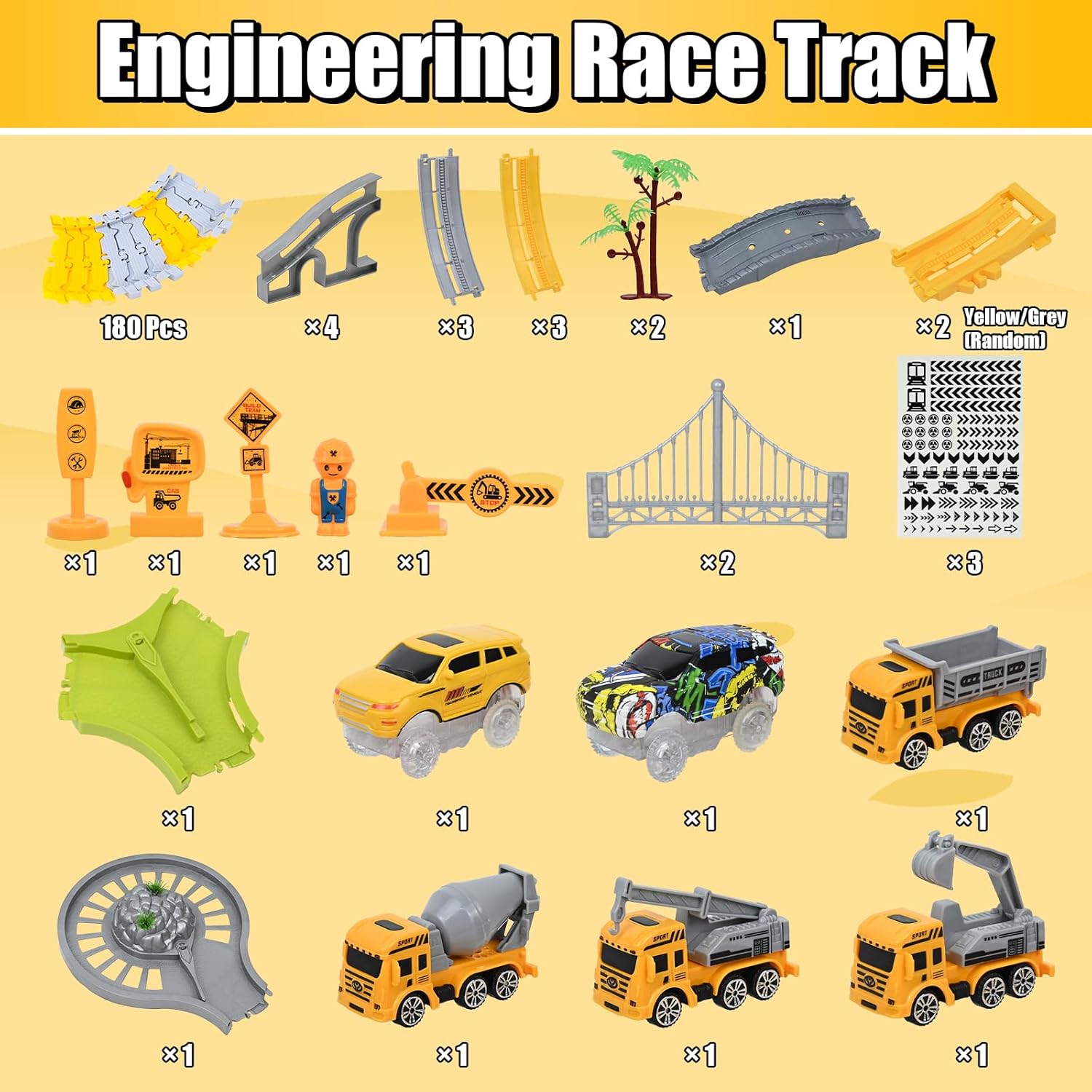 🏎️🏎️【Pista per auto per bambini】 Il nostro giocattolo da costruzione include 180 pezzi di pista per auto flessibile, pista circolare*6, macchinina per bambini piccola*6 (elettrica*2, normale*4), piloni per ponti*4, modello in roccia artificiale*1, modello di pianta*2, ambientazione*5, ponte*1, ponte*2, unità di sterzo con rotazione verde*1, mattoncini a clip*2, adesivi fluorescenti*3, istruzioni*1. Configurazione avanzata in modo che i tuoi bambini possano costruire il proprio regno di corse! 🎮️🎮️ 【Più possibilità di gioco】 Con piste da corsa flessibili, facili da piegare e agganciare, l'auto da corsa attraversa facilmente i ponti e gira di 360° nel circuito automobilistico per massimizzare il divertimento del gioco. Accompagnati da 6 diverse auto per bambini che simulano la costruzione, come escavatori, ecc., i piccoli avventurieri possono anche imitare i lavori di costruzione ed esprimere pienamente la loro creatività! 🌃🌃【Set di giocattoli che si illuminano al buio】La pista da corsa per bambini con adesivi fluorescenti, così come la piccola macchina elettrica con luci che illuminano la pista anche al buio e donano così alle gare notturne un bagliore magico. Allo stesso tempo, questi circuiti sono abbastanza facili da montare e smontare. Nota: sono necessarie 4 batterie AA (non incluse). 🪐🪐 【Crea il tuo circuito】 Con circuiti, archi e ponti per auto elettriche a forma di U e Y, i bambini possono dare libero sfogo alla loro immaginazione e creare un mondo ferroviario unico. In tal modo rafforzano il loro pensiero spaziale, sviluppano le loro capacità di risoluzione dei problemi e liberano la loro creatività. ✨✨ 【Regali giocattolo perfetti】 Il nostro set di auto elettriche, piste e accessori è realizzato con materiali atossici per adattarsi perfettamente alla mano del bambino, facile da trasportare, i bambini possono costruire le proprie piste sempre e ovunque! Regalo perfetto per i più piccoli a Natale, Pasqua, compleanno e altre festività.