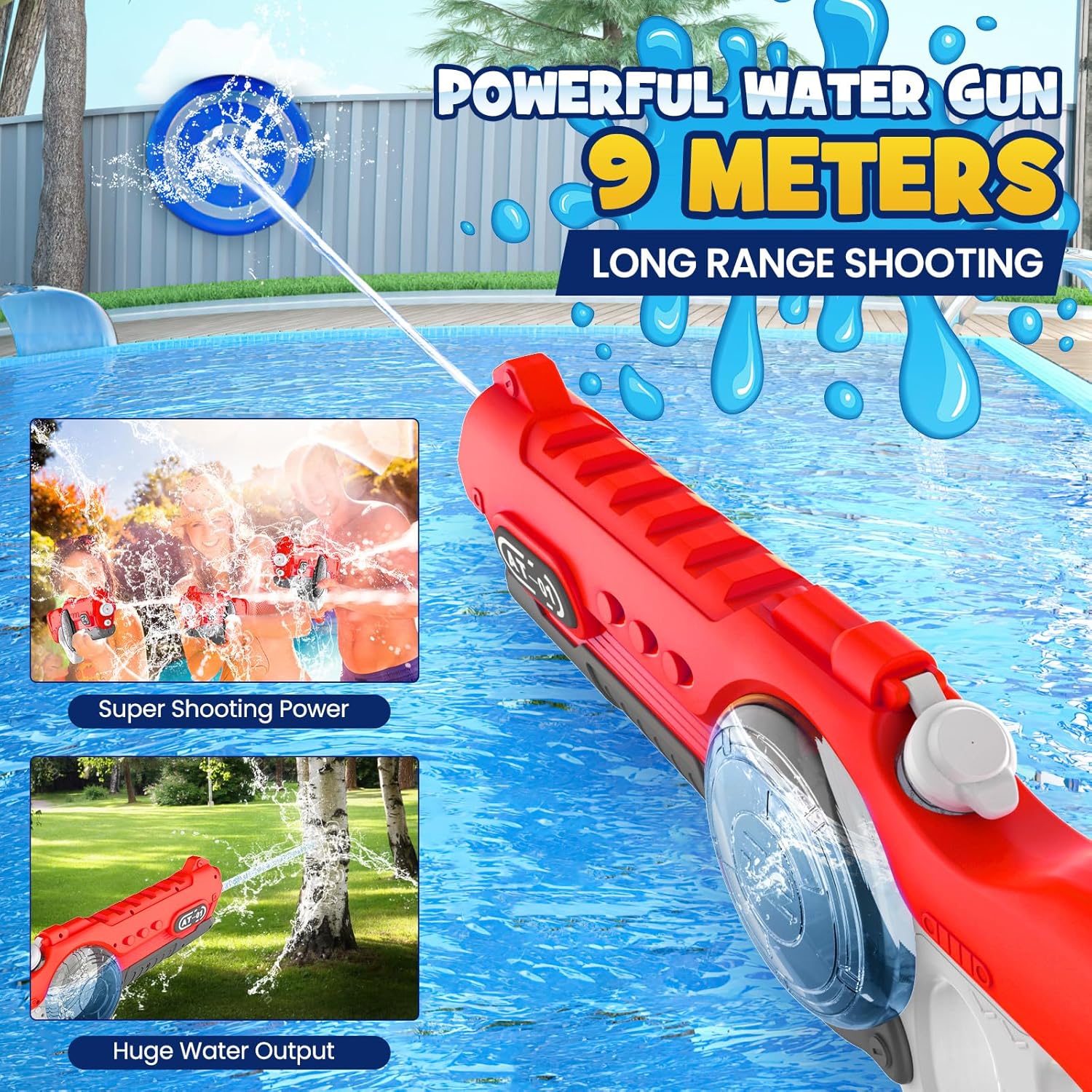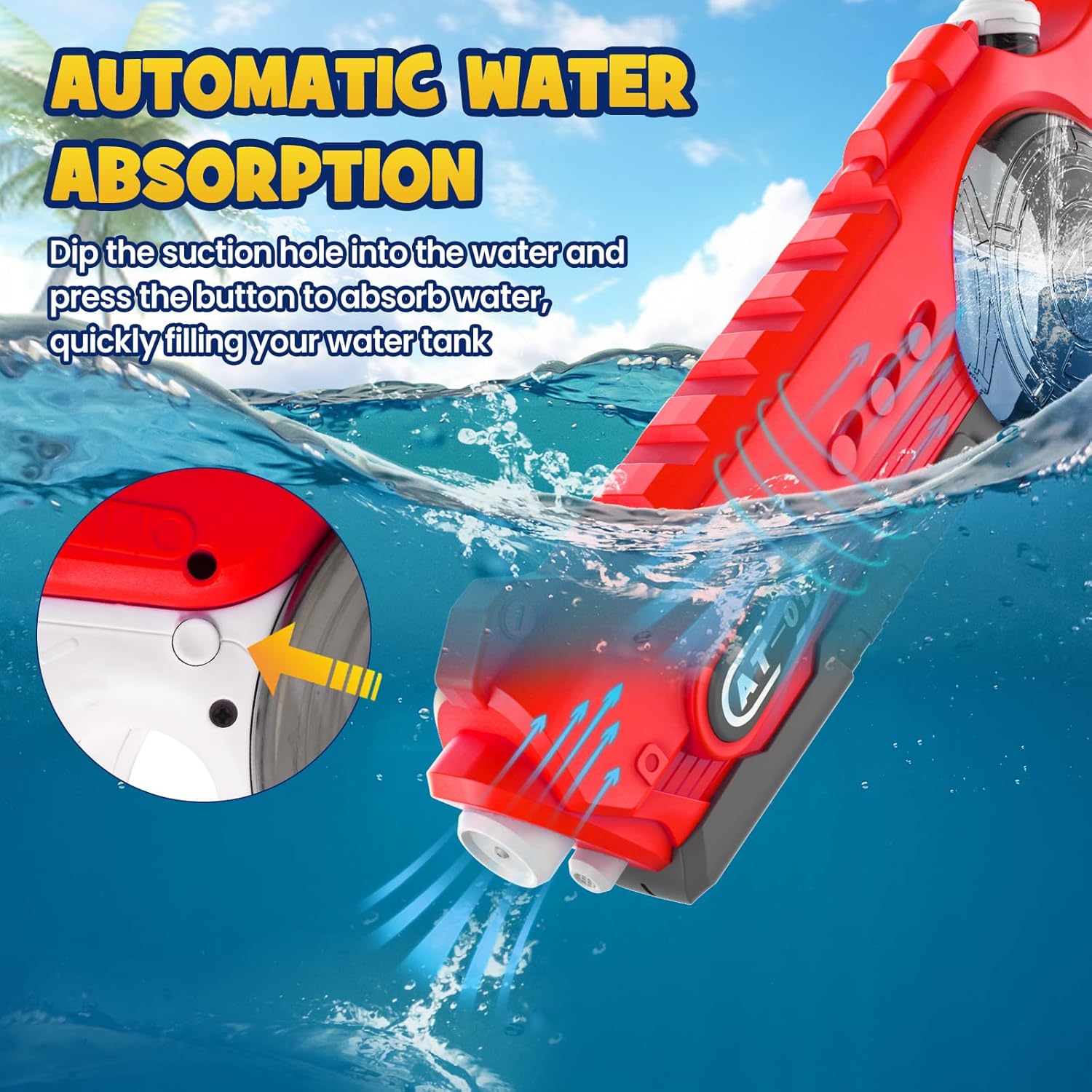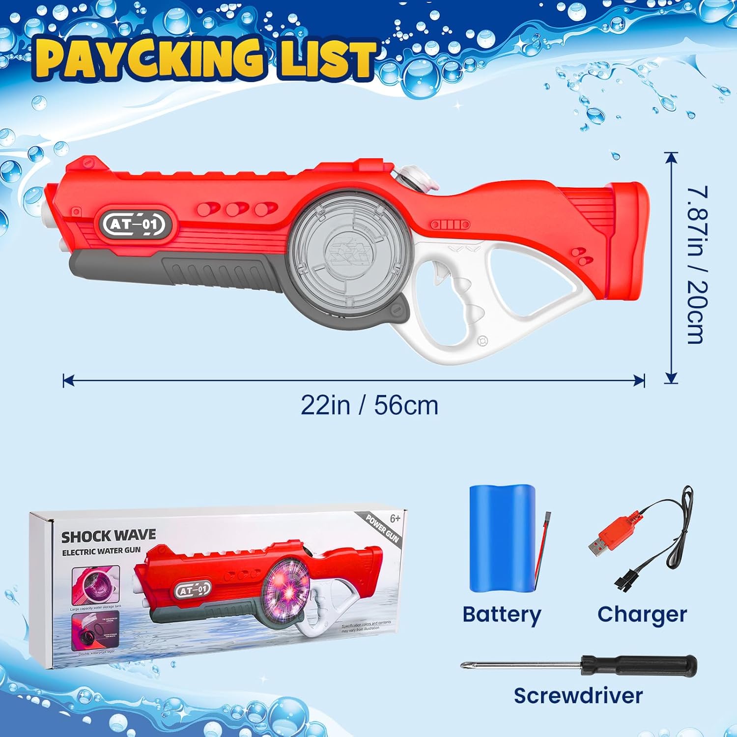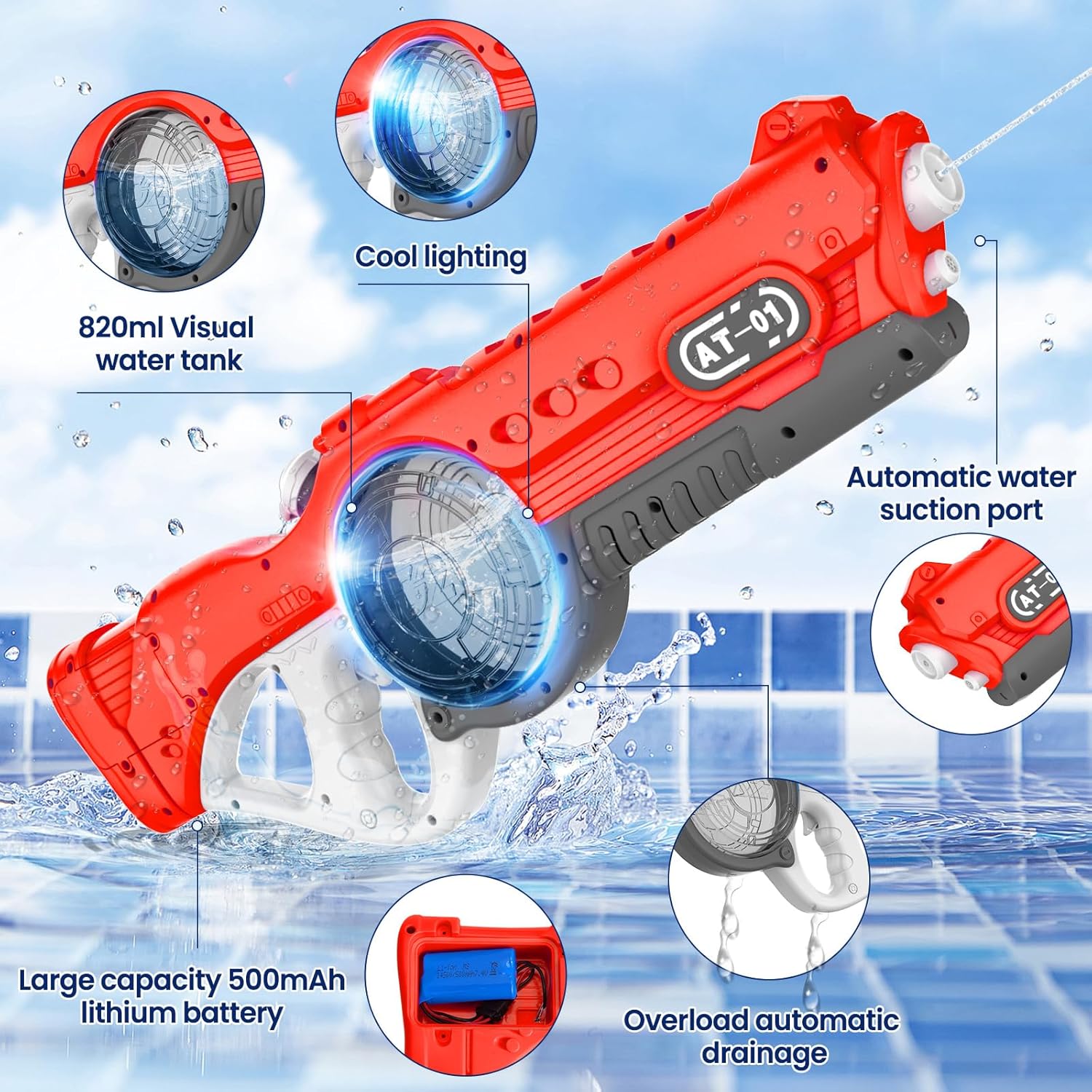 【Pistola ad acqua elettrica】 La nostra pistola ad acqua elettrica è adatta sia per adulti che per bambini. Batteria ricaricabile integrata di grande capacità da 500 mAh, la durata della batteria è di 20-30 minuti. Questa pistola ad acqua elettrica adotta un design a un pulsante, comodo per i bambini. Finché premi il grilletto e tiri, l'acqua schizzerà continuamente ad alta velocità! È un ottimo modo per divertirsi in una calda giornata estiva, soprattutto in gruppo! 【Con luci a LED】 Questa pistola ad acqua elettrica brillerà sul lavandino e le luci da sogno creeranno bolle colorate, rendendo la pistola ad acqua più splendida. Ciò ci consente anche di condurre combattimenti con pistole ad acqua di notte e identificare meglio la posizione del giocatore. Le luci intense aumentano notevolmente il divertimento del gioco. 【Funzione autoassorbente】 Questa pistola ad acqua elettrica completamente automatica è dotata di una funzione autoassorbente. Basta mettere la volata nell'acqua e premere il pulsante per riempire il caricatore molto rapidamente, eliminando la fatica di aggiungere manualmente l'acqua, permettendoci di mettere il tuo cuore e la tua anima nel gioco. 【Sicuro e durevole】 Questa pistola ad acqua è realizzata in ABS + componenti elettronici di alta qualità, non tossici, sicuri e durevoli e il design chiuso elimina la necessità di preoccuparsi delle perdite d'acqua. È stato testato per la sicurezza dei bambini e ha angoli arrotondati per proteggere le mani del tuo bambino. I genitori possono giocare con i loro bambini e godersi insieme la calda estate. 【Miglior giocattolo estivo】 Questa pistola ad acqua elettrica è la scelta migliore per i giocattoli estivi. Venite a organizzare una festa appassionante con i vostri bambini o amici nel giardino dietro la piscina o sulla spiaggia. È anche un buon regalo degno di essere dato ai bambini