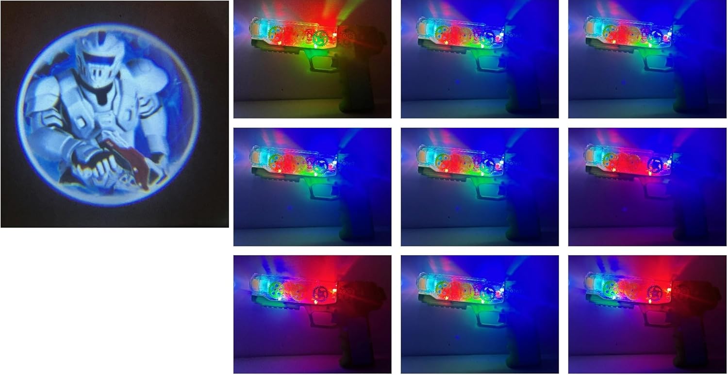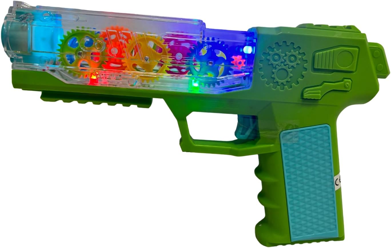 Pistola Giocattolo con Luci e Suoni - Divertimento Interattivo e Realistico: Questa Pistola Giocattolo con Effetti Sonori offre un'esperienza di gioco unica e coinvolgente, con luci brillanti, suoni realistici e un meccanismo visibile all'interno della canna trasparente. Ideale per bambini appassionati di giochi d’azione e fantasia, questa pistola giocattolo stimola la creatività e offre un’esperienza di gioco ricca e interattiva, perfetta per stimolare il gioco di ruolo e l’immaginazione. Proiettore a Tema Robot - Effetti Visivi Avvincenti: Questa Pistola Giocattolo con Proiettore è dotata di una funzione speciale: ogni volta che si preme il grilletto, la pistola proietta l’immagine di un robot, aggiungendo un tocco innovativo e accattivante al gioco. I bambini possono creare scenari immaginativi, interagendo con la proiezione mentre sperimentano una dinamica unica che porta il gioco a un livello superiore. Ideale per attività creative e divertenti sia all’interno che all’esterno. Canna Trasparente e Ingranaggi in Movimento per un’Esperienza Realistica: La Pistola Giocattolo Trasparente permette di vedere gli ingranaggi muoversi all’interno della canna, offrendo un’esperienza visiva affascinante e realistica. Quando il grilletto viene premuto, le luci interne illuminano gli ingranaggi in movimento, creando un effetto coinvolgente che cattura l’attenzione dei bambini e rende ogni gioco più realistico. Perfetto per chi cerca un giocattolo interattivo e affascinante. Luci LED Brillanti ed Effetti Sonori Realistici: Dotata di luci LED vibranti, questa Pistola Giocattolo con Luci e Suoni accende il divertimento, illuminando ogni sessione di gioco. Gli effetti sonori realistici arricchiscono l’esperienza, trasformando ogni gioco in un’avventura avvincente. Ideale per bambini che amano giochi d’azione e giochi di ruolo, le luci e i suoni rendono ogni scena più intensa, favorendo la creatività e un’immersione completa nel gioco. Colori assortiti,colore casuale - Sicura e Divertente - Perfetta per i Bambini: Progettata con materiali sicuri e leggeri, questa Pistola Giocattolo per Bambini è adatta anche ai più piccoli, garantendo un utilizzo sicuro e facile. Perfetta per bambini dai 3 anni in su, questa pistola giocattolo combina design sicuro e divertente, con dimensioni adatte alle mani dei più piccoli. Perfetto per giochi in casa o all’aperto, e ideale per avventure creative con amici e familiari. Regalo Ideale per Bambini - Perfetto per Festività e Compleanni: Questa Pistola Giocattolo con Luci e Suoni e Proiettore è un’idea regalo perfetta per compleanni, festività e occasioni speciali. Con la combinazione di effetti sonori, proiezioni e ingranaggi in movimento, questa pistola giocattolo è un regalo innovativo e divertente, che cattura immediatamente l’attenzione e stimola la fantasia. Ideale per bambini che amano i giochi di ruolo e d’azione, rende ogni momento di gioco speciale e ricco di emozioni. Funziona con 3 pile stilo AA (non incluse)
