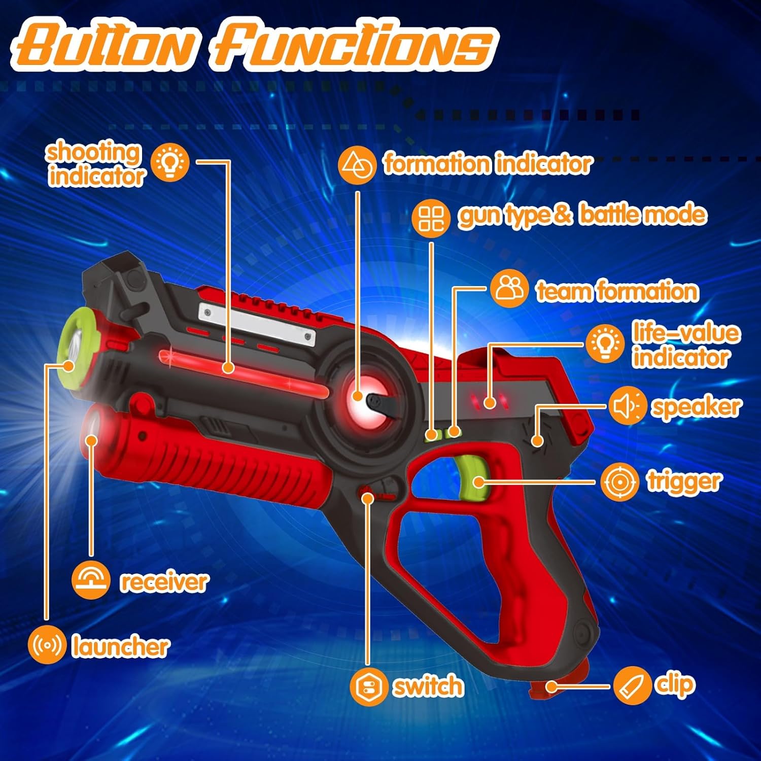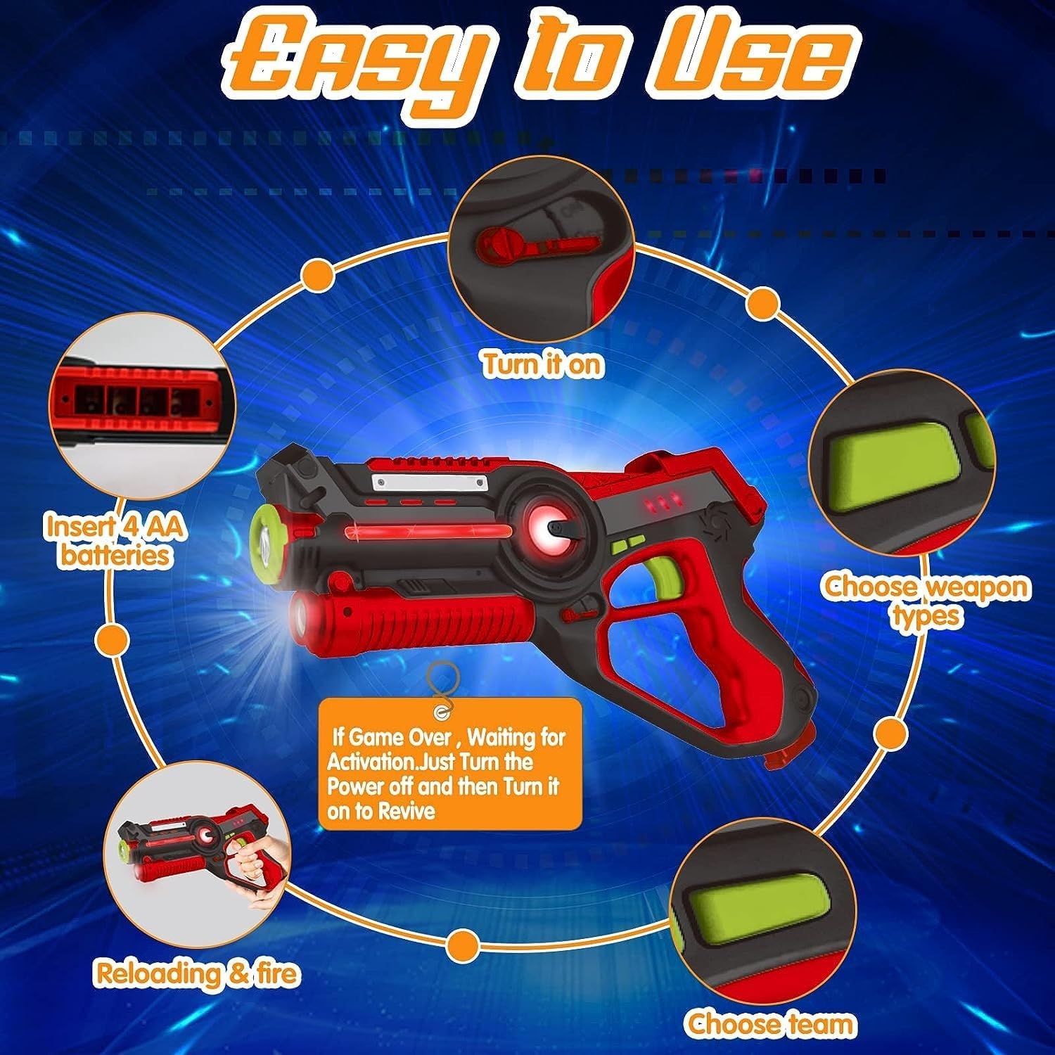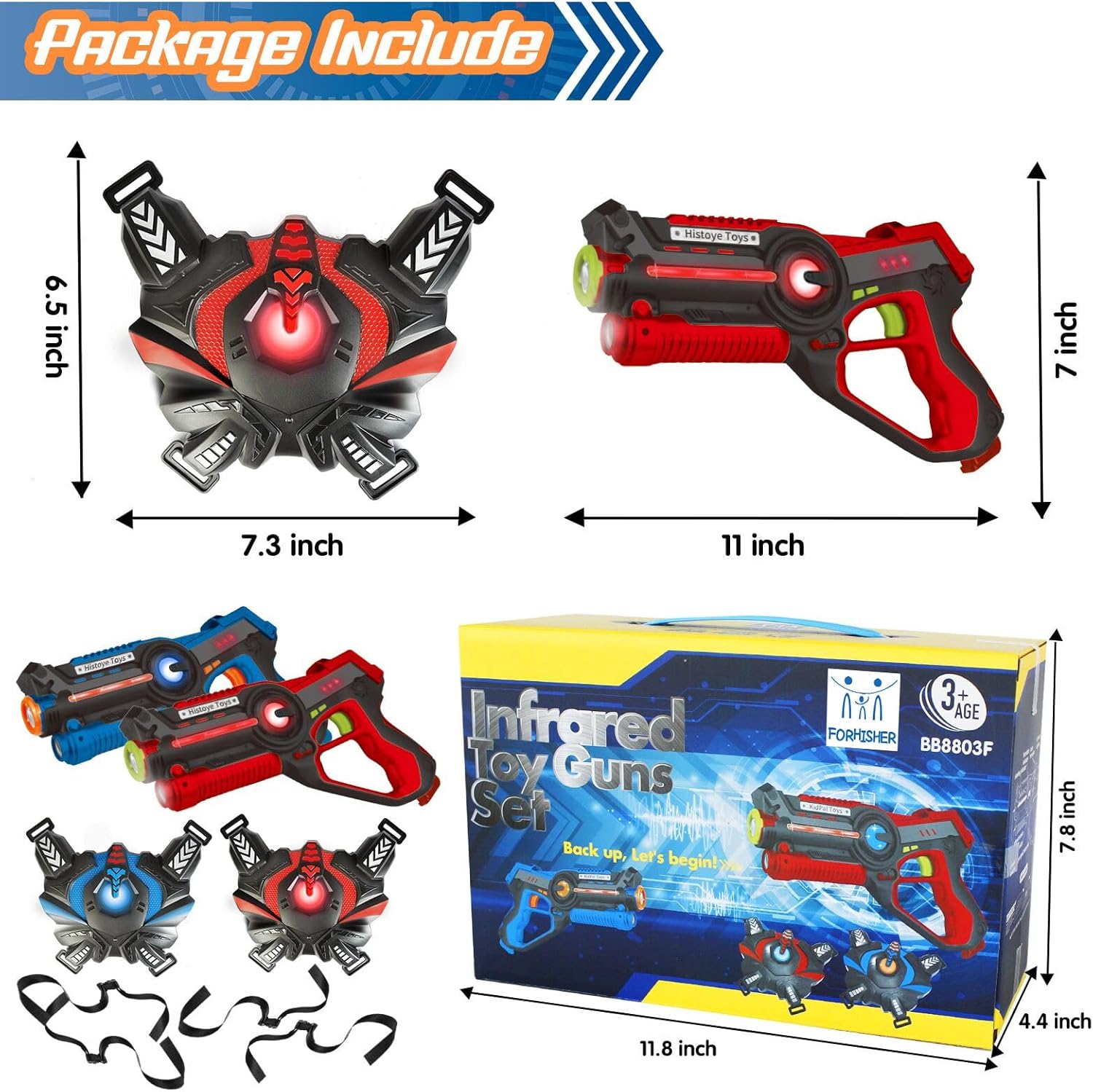 【Sicurezza al 100%】L'emissione del segnale del tag laser è inferiore a 1 mw (0,9 mw) che non danneggia gli occhi. Le pistole laser FORHISHER sono certificate sicure per i bambini di tutte le età. Si prega di essere certi che l'etichetta laser è completamente innocua, non emetterà proiettili e luce dannosa 【Emozionante gioco di battaglia】: questo set di tag laser per bambini ha 2 colori della squadra, scegli una delle 2 squadre rappresentate dal blu, rosso. È un fantastico giocattolo da squadra di battaglia che puoi giocare con amici e famiglie. Incoraggerà i tuoi bambini a lavorare insieme, coltivare la consapevolezza della squadra, sviluppare strategie, provare il meglio per essere il vincitore 【Design fantastico】Questo set di pistole con tag laser ha 4 tipi di armi (colpo singolo, fucile, pistola a macchina, razzo) con suoni e luci di tiro altamente simulati. Può dare un forte senso di vibrazione, che ti fa sentire come in un vero laser tag arena.the gamma sulle pistole è abbastanza lontana che la distanza massima di tiro è 120 piedi, perfetto per lotta laser indoor ed outdoor. 【Tempo dei genitori】 Il set di etichette laser è un meraviglioso giocattolo per le famiglie nei fine settimana o in vacanza. Tieni te e i tuoi bambini lontani dai prodotti elettronici freddi. Genitori e bambini possono godere di una felicità infinita con questo. È un ottimo modo per accompagnare i bambini e migliorare la relazione genitore-figlio. Le pistole con tag laser sono il miglior regalo per i tuoi ragazzi. 【Facile da usare】: questa targhetta laser è molto facile da usare, basta inserire le batterie, scegliere la squadra, cambiare la modalità di accensione e quindi iniziare a giocare all'interno o all'esterno. (Batterie non incluse, ogni pistola utilizza 4 batterie AA e ogni gilet utilizza 3 batterie AA). Se avete domande, vi preghiamo di contattarci in tempo e vi assicureremo 100% prodotto e servizio soddisfacenti.