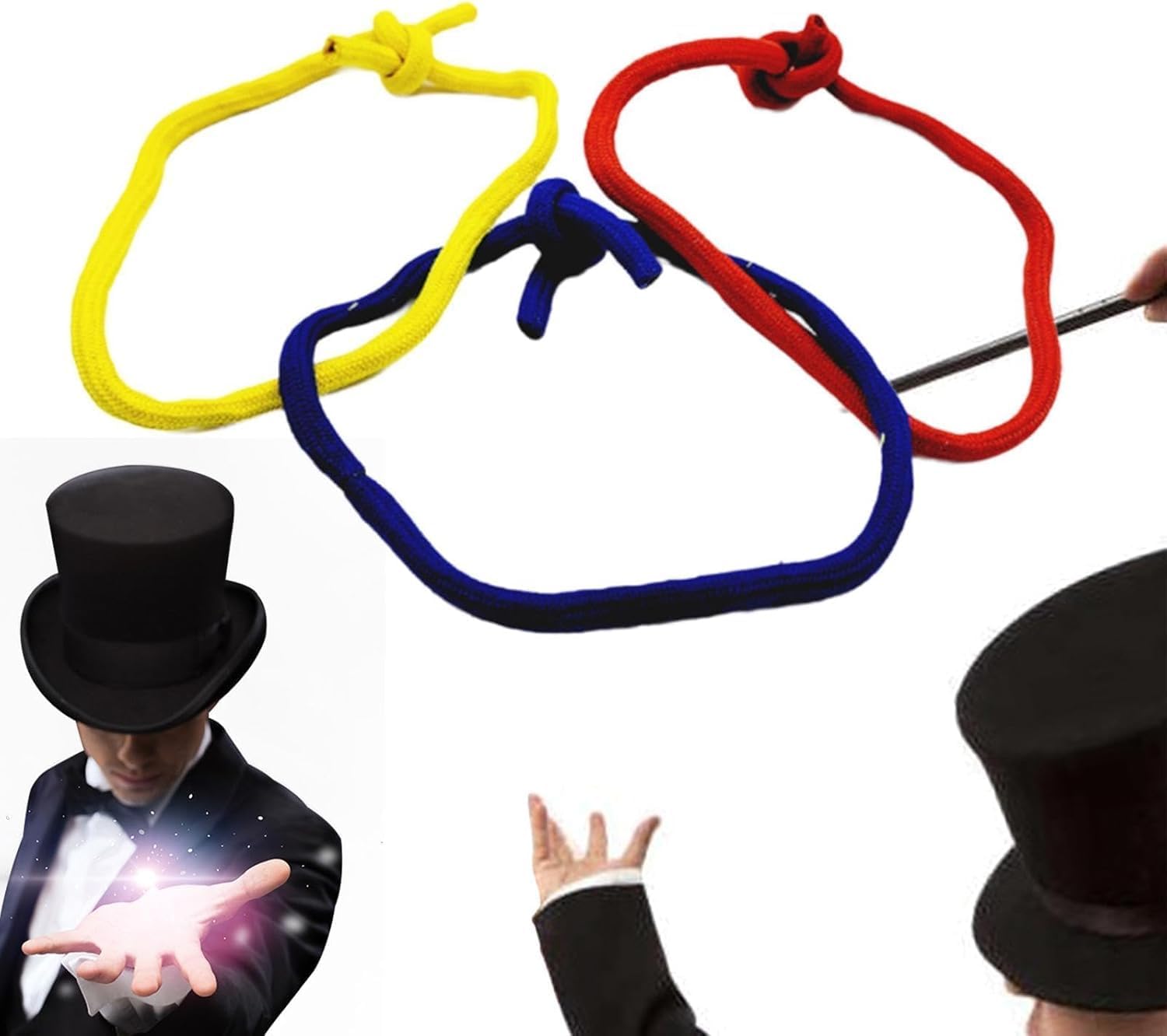 【Materiale di alta qualità】 Realizzate in poliestere di alta qualità, queste corde di collegamento sono resistenti all'usura e robuste, garantendo durata per un uso a lungo termine in molteplici spettacoli. DIMENSIONE PERFETTA PER I TRUCCHI: Ogni anello di corda misura circa 90 cm, il che li rende facili da usare e creano illusioni impressionanti. 【Incredibili prestazioni di illusione】 Crea spettacoli magici senza soluzione di continuità e complicati con nodi stretti che si allacciano e si sciolgono facilmente, stupindo il tuo pubblico senza sforzo. Applicazioni versatili: per spettacoli teatrali, spettacoli di strada, festival, feste serali o altri eventi magici a tema, aggiungendo un tocco emozionante ad ogni occasione. 【Ottimo regalo per i maghi】 Un regalo premuroso per maghi professionisti, principianti o appassionati di magia che desiderano migliorare la propria collezione di oggetti di scena.