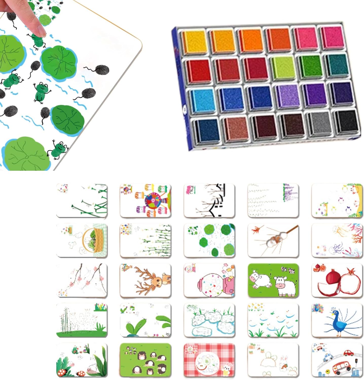 Divertente kit per pittura con le dita: progettato con carte da disegno per bambini e vivaci cuscinetti per timbri multicolore, promuove l'uso di forniture artistiche creative per supportare lo sviluppo dell'immaginazione durante coinvolgenti allenamenti di pittura con le dita dei bambini a casa o a scuola Set di vernici innocue: combinando materiali sicuri per i bambini con una formula delicata sulla pelle, questo set di pittura a dita sicuro utilizza forniture artistiche ecologiche e vernici approvate dai genitori per una tranquillità creativa Facile esplorazione creativa: incoraggia la crescita artistica attraverso un set artistico adatto ai principianti realizzato con cura che supporta il gioco singolo ed elimina la necessità di assistenza, rendendolo una scelta ideale per facili attività di pittura che ispirano creatività Ampiamente usato: ideale come materiale artigianale in classe o come set di attività per feste, questo kit artistico multiuso migliora le lezioni d'arte a casa e fornisce materiali per progetti fatti a mano per possibilità più creative Lunga durata: carta artistica resistente e biglietti da disegno riutilizzabili completano il vivace set di vernici, fornendo colori resistenti allo sbiadimento che mantengono la loro brillantezza per supportare opere d'arte di lunga durata e ripetuti allenamenti creativi