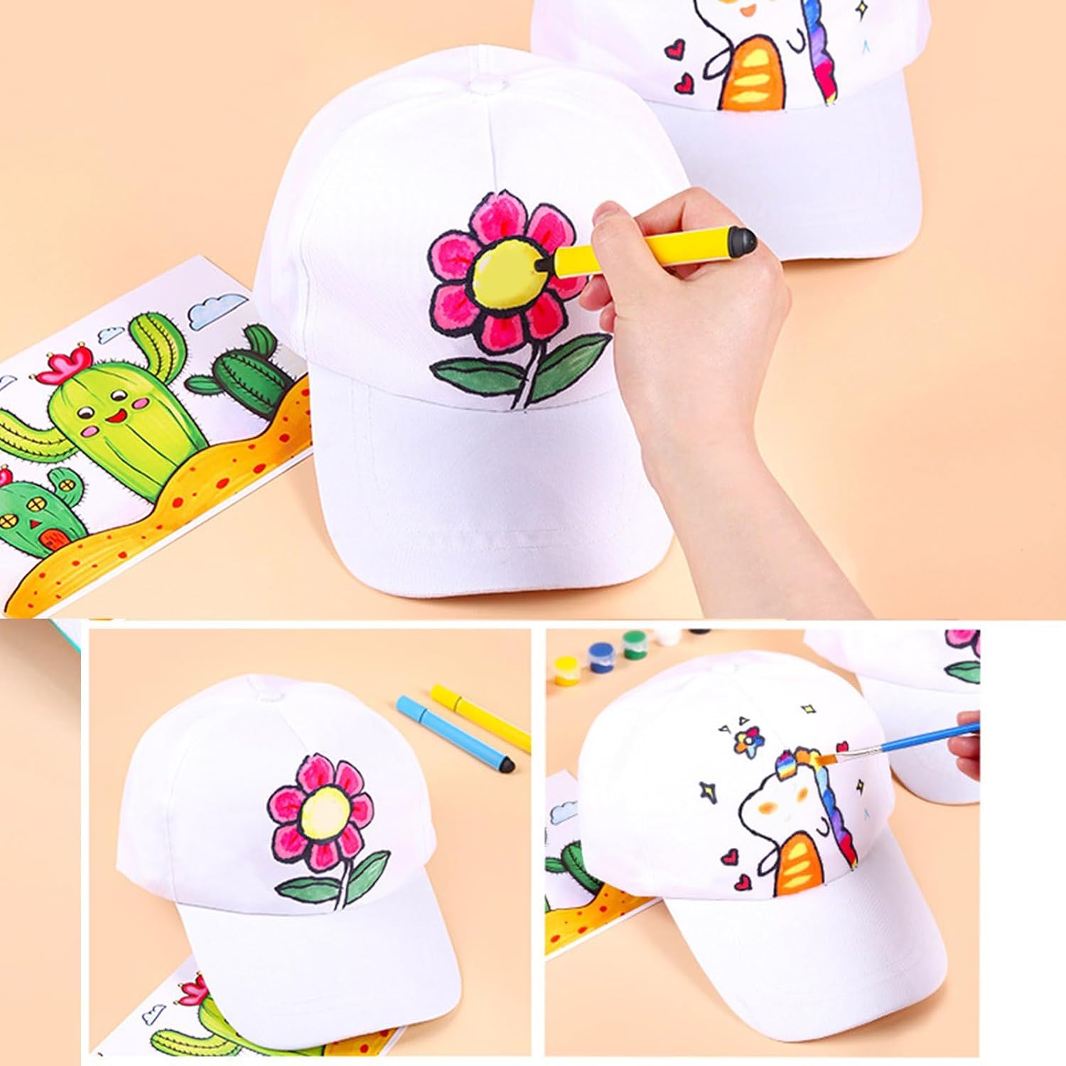 Cappello da baseball del cotone del cappello di arte dei bambini della pittura e delle attività creative di disegno Caratteristiche: Scatena la creatività del tuo bambino con questo cappello da baseball in cotone bianco progettato per i bambini per dipingere a mano disegni unici usando acquerelli, acrilici o pennarelli. Tessuto di cotone traspirante di alta qualità, questo cappello con superfici lisce resiste a ripetute pitture artistiche mantenendo il comfort durante l'uso prolungato per artisti di età compresa tra 5 e 12 anni, famiglie creative ed educatori d'arte alla ricerca di strumenti interattivi per attività di sviluppo. Utilizzare durante progetti artistici scolastici, attività di festa di compleanno in campeggio o momenti di legame in famiglia all'aperto che richiedono protezioni solari. Le superfici lavabili in lavatrice preservano le opere d'arte mentre le cuciture rinforzate garantiscono la durata attraverso innumerevoli avventure fantasiose. Specifiche tecniche: Componente: Cotone Circonferenza della testa: circa 52-55 cm. Quantità: 1 pezzo. La confezione include: 1 cappello bianco. Nota: 1. Si prega di considerare un margine di errore di 0-2 cm dovuto alla misurazione manuale. 2. A causa delle differenze tra i diversi monitor, l'immagine potrebbe non riflettere esattamente il colore dell'articolo.