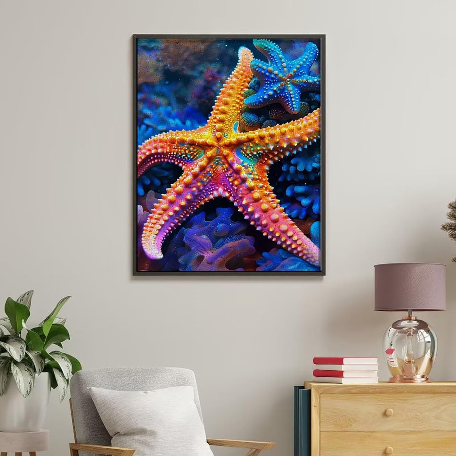Pittura con i Numeri per Adulti e Bambini - Kit Completo DIY Colori Acrilici - Regalo Creativo per Principianti e Artisti Esperti - Decor Murale Casa, 80 x 110 cm Senza cornice (stelle del mare) E-187