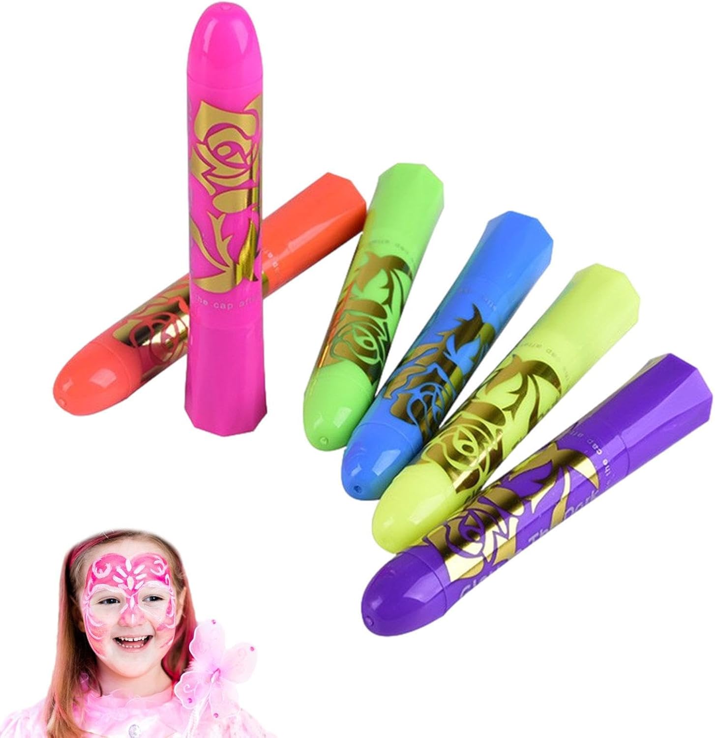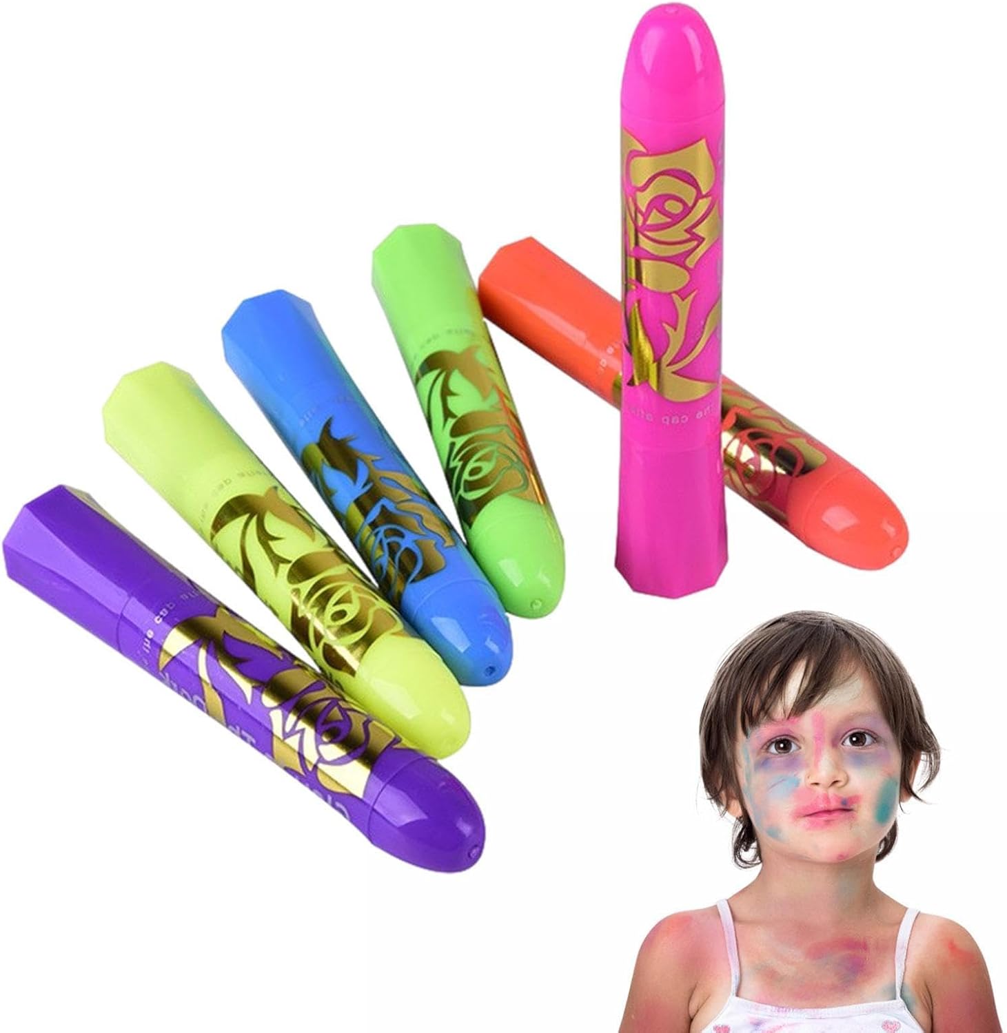 Esperienza Utente Migliorata: Include un set di 6 colori viso neon, progettato per effetti bagliore vivaci sotto luce UV. Garantisce un'applicazione sicura evitando occhi e labbra, migliorando così il divertimento con colori luminosi e protetti in ogni uso. 4. Strumenti Arte Luminosa: Sei vividi colori neon risplendono sotto luce nera, ideali per creare design unici con matite facciali glow a scatto che garantiscono applicazione facile e uniforme in pochi secondi. Prestazioni d'uso: Garantisce risultati ottimali in eventi di Halloween cosplay festival e concerti; ideale per attività di face painting temporaneo e spettacoli dal con effetto neon luminoso Qualità Sicura: Prodotto cosmetico neon studiato senza sostanze nocive, adatto a viso e corpo per uso festivo o progetti artistici, garantendo serenità a bambini e adulti Pulizia Semplice: Pittura per viso neon idrosolubile si rimuove senza sforzo, senza causare prurito desquamazione o irritazione. Formula delicata adatta anche a pelli sensibili con comfort garantito durante la rimozione