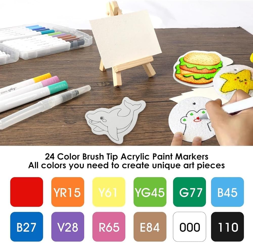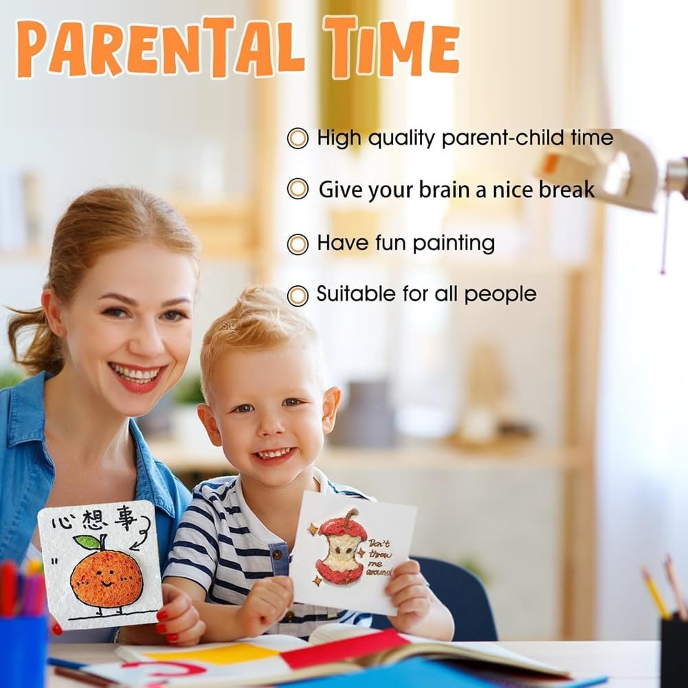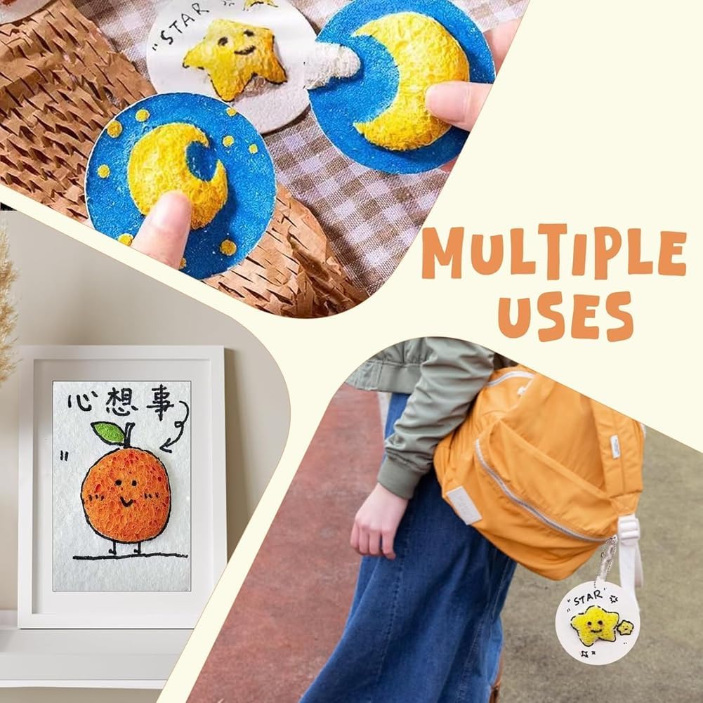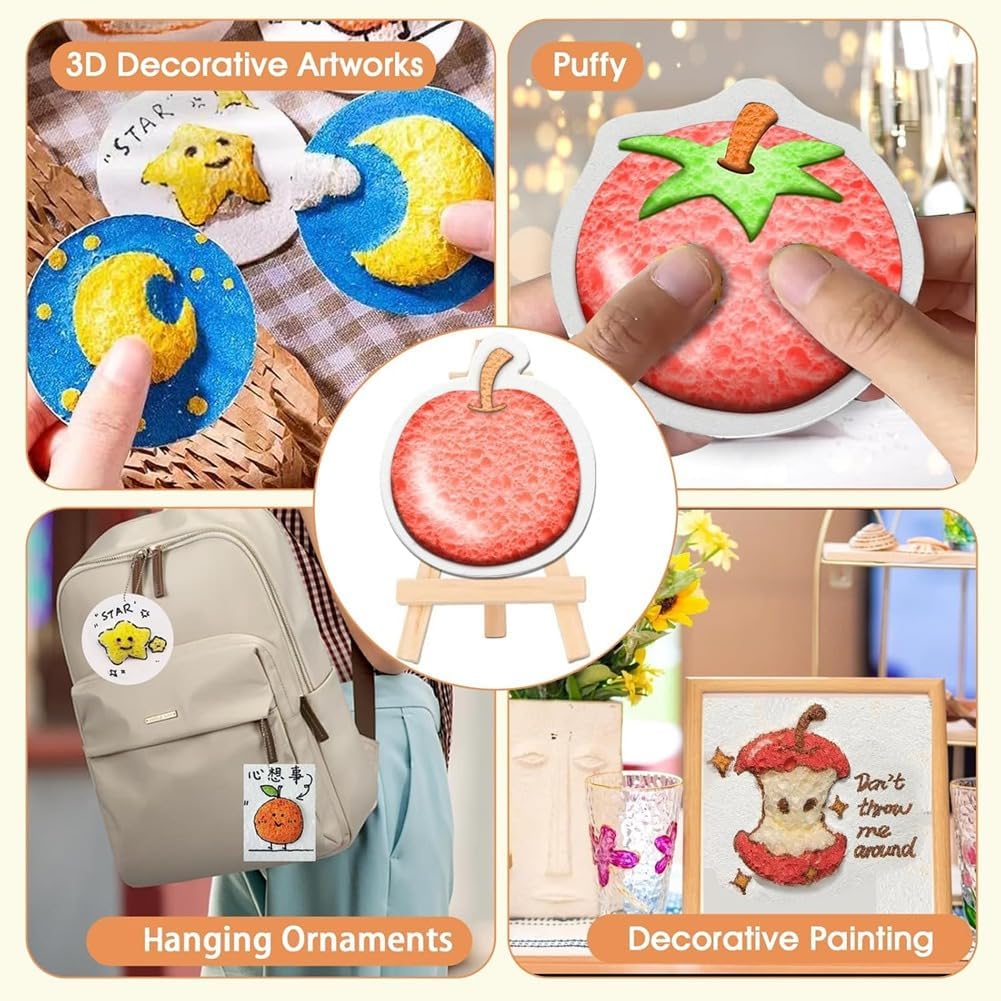 Scatena la creatività e l'apprendimento: introduci i bambini a un affascinante mix di arte e scienza con il nostro kit artistico 3D. Il procedimento è semplice: colora, aggiungi acqua e osserva come prendono forma splendidi effetti 3D. Questo kit non è solo divertente ma anche educativo, il che lo rende la scelta per l'apprendimento . Coinvolge persone di tutte le età: immergiti in un'attività universalmente divertente con il nostro kit di pittura con texture in schiuma 3D magica. Perfetto per bambini, adolescenti e adulti, questo kit unisce le famiglie, offrendo un'esperienza divertente e interattiva. Le spugne asciutte del kit si gonfiano magicamente si aggiunge acqua, creando accattivanti disegni 3D che tutti . Risultati di qualità professionale: scopri la soddisfazione di un'arte dall'aspetto professionale con il nostro kit di pittura 3D con texture in schiuma facile da usare. I pennarelli acrilici con punta a pennello garantiscono un'applicazione e colori vivaci e audaci. Ammira con stupore i tuoi disegni texturizzati prendere vita con poche d'acqua. Tempo di qualità con i propri cari: trascorri del tempo di qualità creando con il nostro kit di pittura con texture in schiuma 3D. È progettato per essere facile da usare, permettendoti di goderti il processo insieme ai tuoi figli o nipoti. Questo kit è un modo eccellente per le famiglie di legare grazie alla comune per l'arte. Kit completo: il nostro set da 55 pezzi include 17 fogli di carta pretagliati in schiuma di forme, 24 pennarelli acrilici con punta a pennello, 3 pennarelli ad acqua con punta morbida, un supporto da disegno e 10 catenelle con perline. Tutto ciò di cui bisogno per infinite creazioni artistiche è a portata di mano, racchiuso in una comoda scatola di .