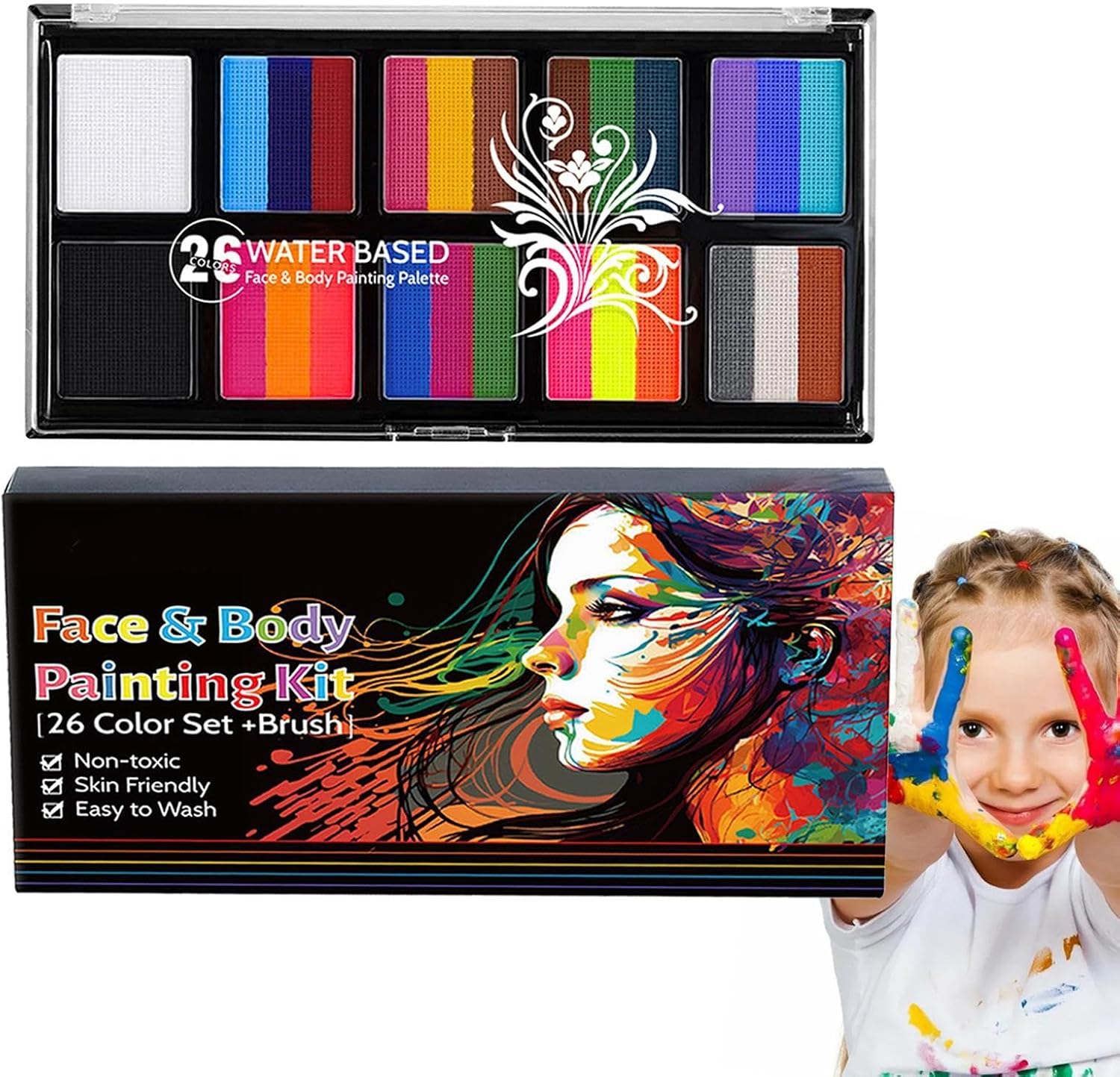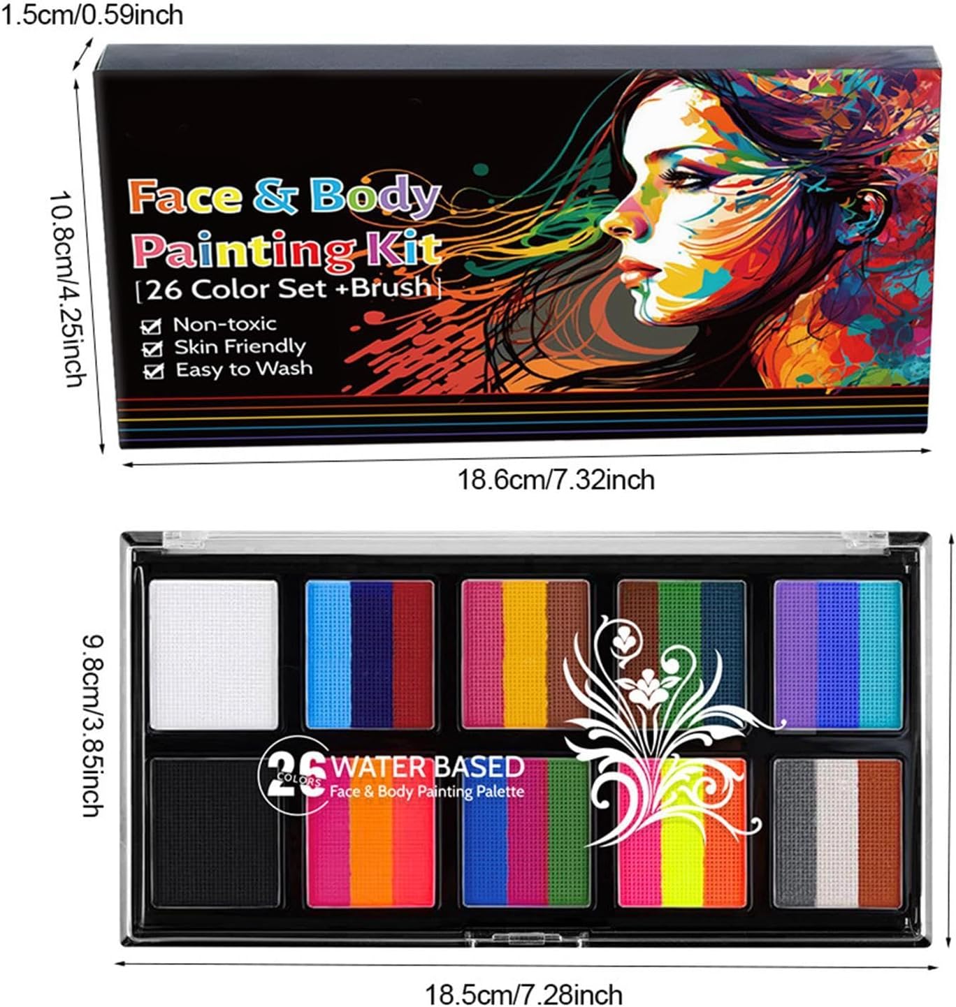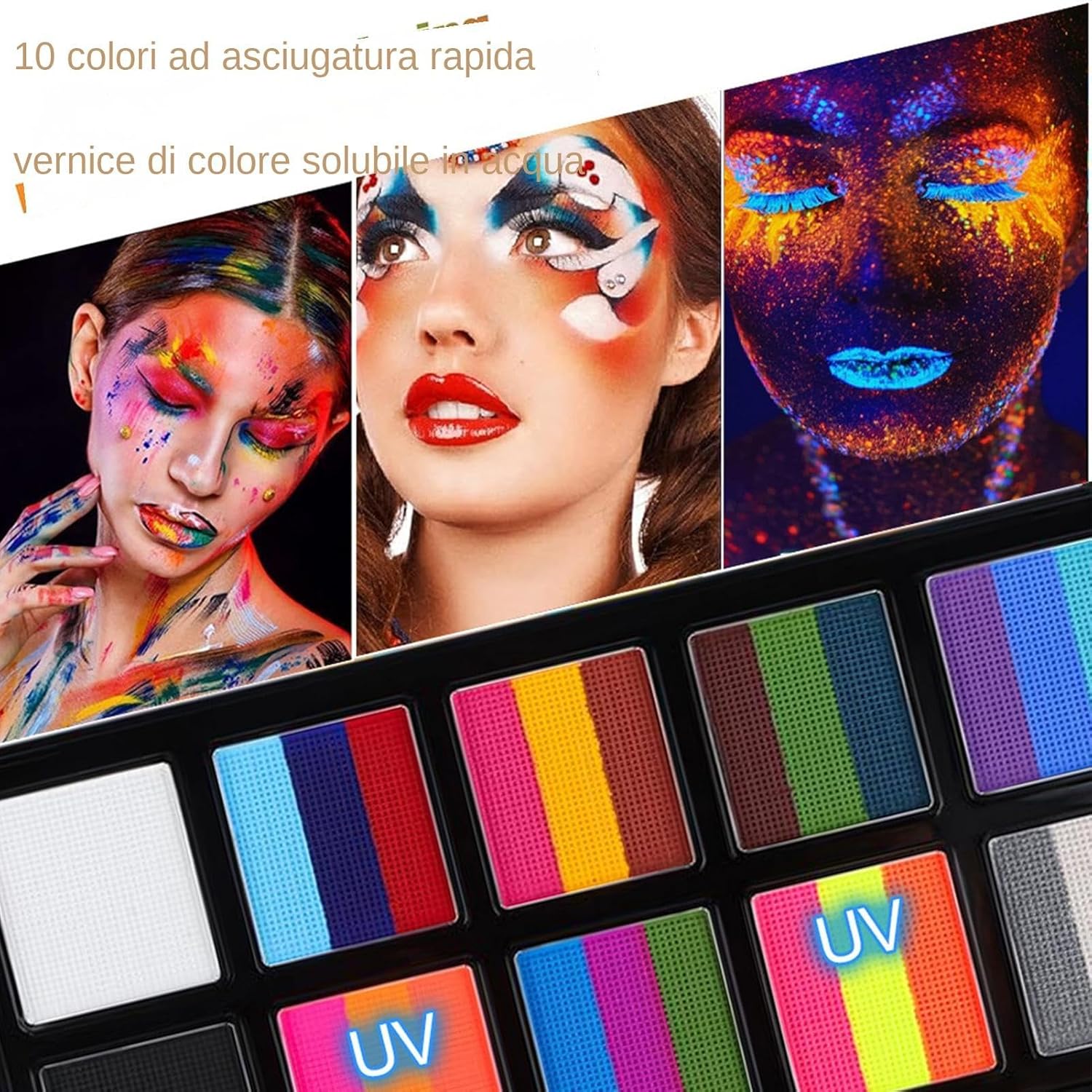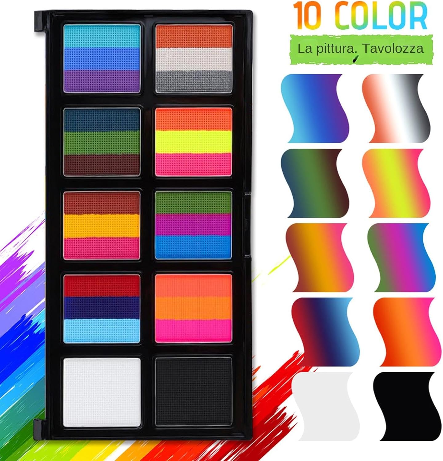 Usi estesi: mostra il tuo patriottismo con la nostra di torte divise ispirata alle bandiere. Che sia per Halloween per una parata, questo kit professionale per truccabimbi arcobaleno farà risaltare i tuoi disegni con bellissimi motivi arcobaleno. Ingredienti delicati per la sicurezza: la nostra vernice per il viso di Halloween è formulata utilizzando ingredienti delicati per garantire sicurezza a tutti i tipi di pelle. Prima 'applicazione, si consiglia di testare una parte a pelle. Adatto sia ad adulti che a bambini, libera la tua creatività in tutta tranquillità. Facile da usare: ottieni facilmente un trucco vibrante e inquietante usando la nostra pittura per il viso di Halloween. Basta mescolare con acqua, spruzzare il colore desiderato e applicare uniformemente con il pennello. Facile da pulire: per ottenere una tonalità brillante, completamente a base d'acqua e facile da pulire con acqua tiepida e sapone un panno umido; immergi semplicemente il pennello avanti e indietro 8-10 volte. Scelta perfetta: aggiungi un tocco di brividi ed emozioni al tuo restyling con questa pittura per il viso di Halloween perfetta per le anime fantasiose. Ottimo per cosplay, festa dei bambini, festival musicali ed eventi scolastici oltre a feste di Halloween, Carnevale, Natale, Pasqua e compleanno.