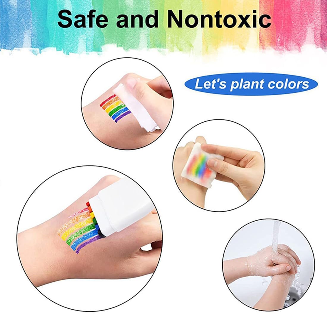 PENNE PER IL TRUCCO DELL'ARCOBALENO: Riceverete 4 pezzi di penne per il trucco del viso dell'arcobaleno in 6 colori diversi, con 6 colori dell'arcobaleno brillanti e vivaci come il rosso, l'arancione, il giallo, il verde, il blu e il viola. Le penne per il trucco arcobaleno sono di dimensioni portatili, in modo da poter sempre ricaricare i colori. Materiale: penna a vernice in plastica di alta qualità, delicata, non irrita la pelle, può essere utilizzata con fiducia, buon olio, non facile da rompere. Sicuro da usare sulla pelle. Ma il tipo di pelle di ognuno è diverso, fare un test della pelle prima dell'uso FACILE DA APPLICARE E RIMUOVERE: Il top coat stick può essere applicato direttamente sulla superficie della pelle pulita o asciutta, semplice da usare. Quando non serve, può essere facilmente pulito con carta assorbente bagnata, struccante e detergente. PORTATILE: I nostri colori per facce arcobaleno sono progettati in formato miniatura e facili da trasportare.6 combinazioni di colori, molto facili da usare. La cover è progettata per stare in tasca e non sporca la borsa. REGALO PERFETTO: Questo è un regalo ideale per ragazzi e ragazze per divertirsi. A differenza di un pennello, i bambini non hanno bisogno di abilità artistiche o idee per usare questo pennello e disegnare motivi o linee in varie forme, il che è molto divertente.