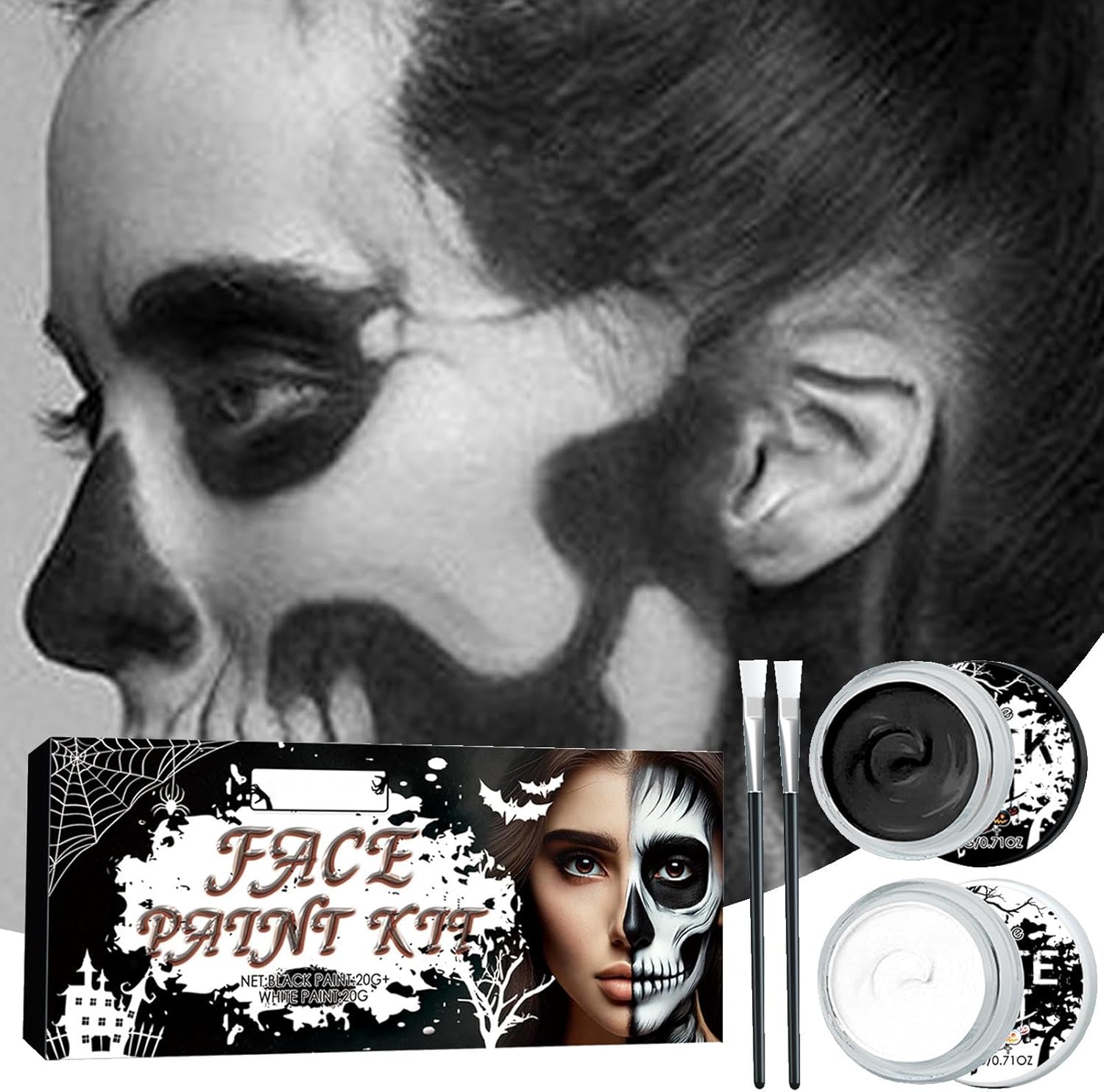 Formula delicata: concediti una pittura per il viso in bianco e nero con i nostri ingredienti per il trucco delicati e non irritanti. Perfetto per tutti i tipi di pelle, anche quella sensibile. Bianco e nero: le nostre tonalità si adattano perfettamente ai temi spettrali, creando un forte contrasto per una trasformazione facile e veloce in fantasmi, zombie o personaggi classici dei film in bianco e nero. Comodo da usare: migliora la tua immaginazione con la nostra pittura per il viso bianca e nera. La nostra vernice per il viso garantisce una facile applicazione, consentendoti di rappresentare disegni straordinari senza esperienza precedente. Finitura a lunga durata: la nostra vernice per il viso bianca e nera impermeabile e resistente al sudore presenta una colorazione decisa che rimane intatta, indipendentemente dalle risate o dai balli. Mantieni il look perfetto per tutta la notte e sii la presenza più brillante della festa. Rimozione facile: non è necessario strofinare per evitare di danneggiare la pelle. Facilmente lavabile con un normale detergente o struccante. La tua pelle è ancora morbida ed elastica dopo il divertimento.