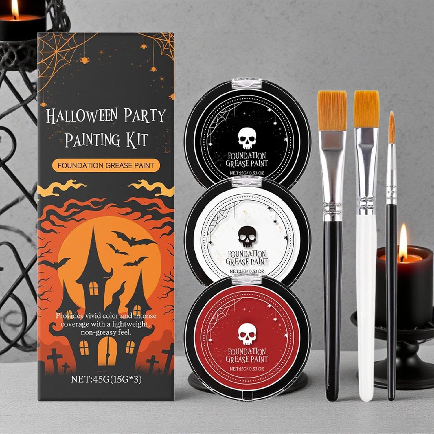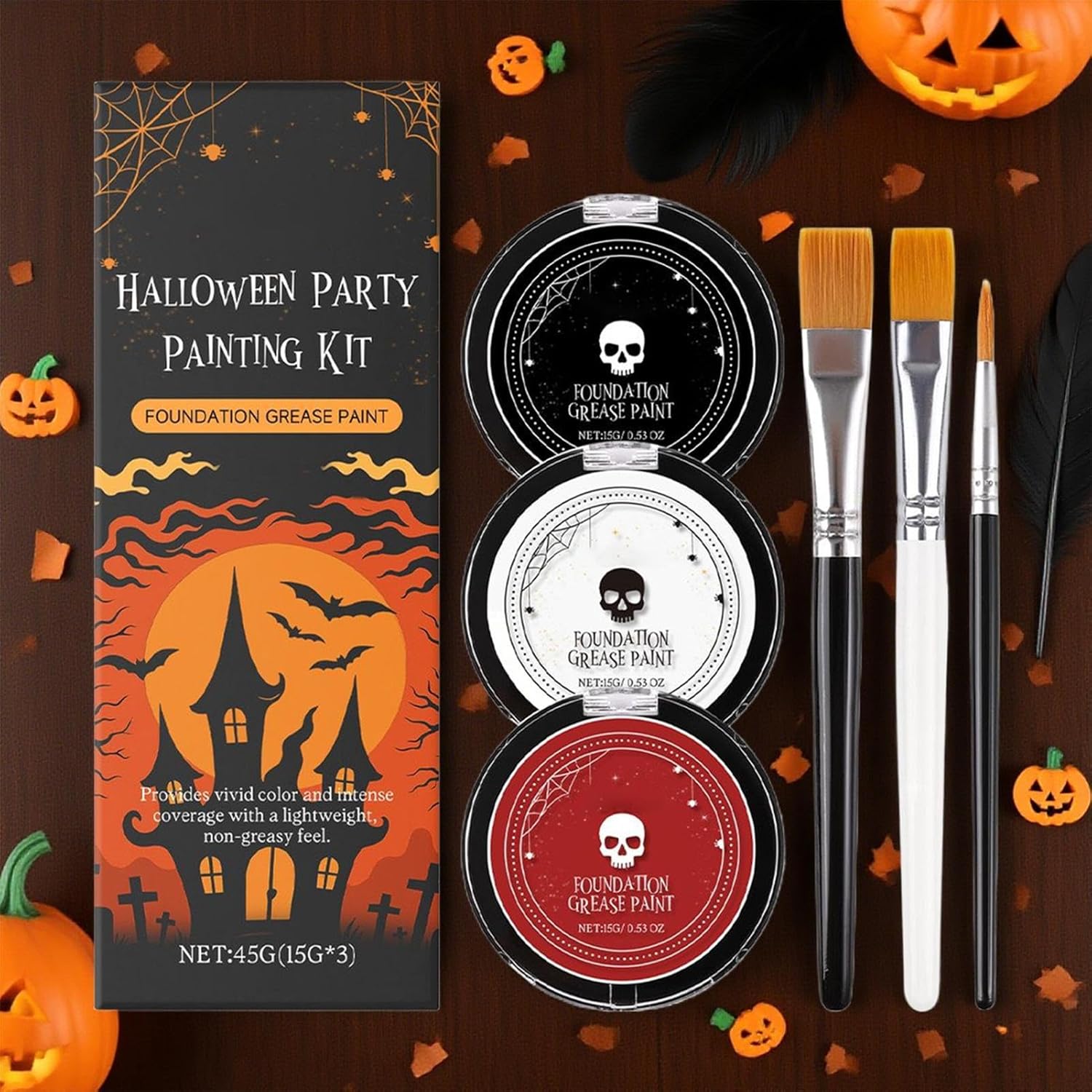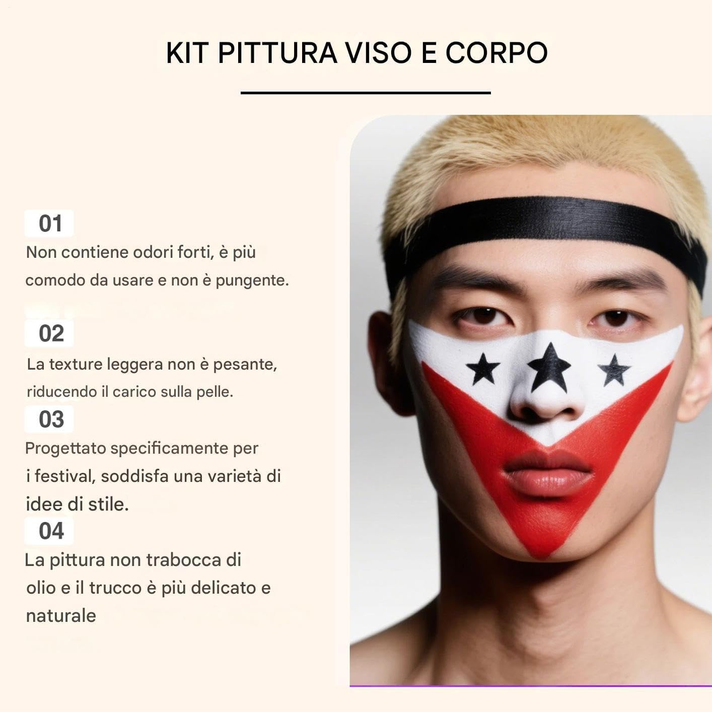 Utilizzo versatile: Prodotto ideale per performance teatrali e pittura su viso/corpo, porta allegria a feste Halloween con applicazioni versatili in eventi a tema e attività artistiche per tutte le età, favorendo la creatività in occasioni speciali Formula Delicata per Pelli Sensibili: Prodotto con ingredienti cosmetici di qualità, questa pittura viso offre un comfort prolungato durante le festività di Halloween senza rischi di irritazione, ideale per pelli reattive e delicate. Colori Intensi: Formula con pigmenti ad alta purezza garantisce una coprenza leggera in un'unica applicazione, ideale per stili gotici e vampiri. Resistenza a sbavature e scolorimento assicura effetti duraturi per tutto Halloween. Applicazione Facile: Realizza design perfetti per Halloween con pennello, spugna o dita, e rimuovi senza sforzo usando un normale detergente con risciacquo per una pulizia immediata Kit Multiuso: Bianco con base crema-polvere per finitura opaca, nero e rosso con texture cremosa a base . Creazione di look eleganti per feste o uso quotidiano. Tre pennelli inclusi.
