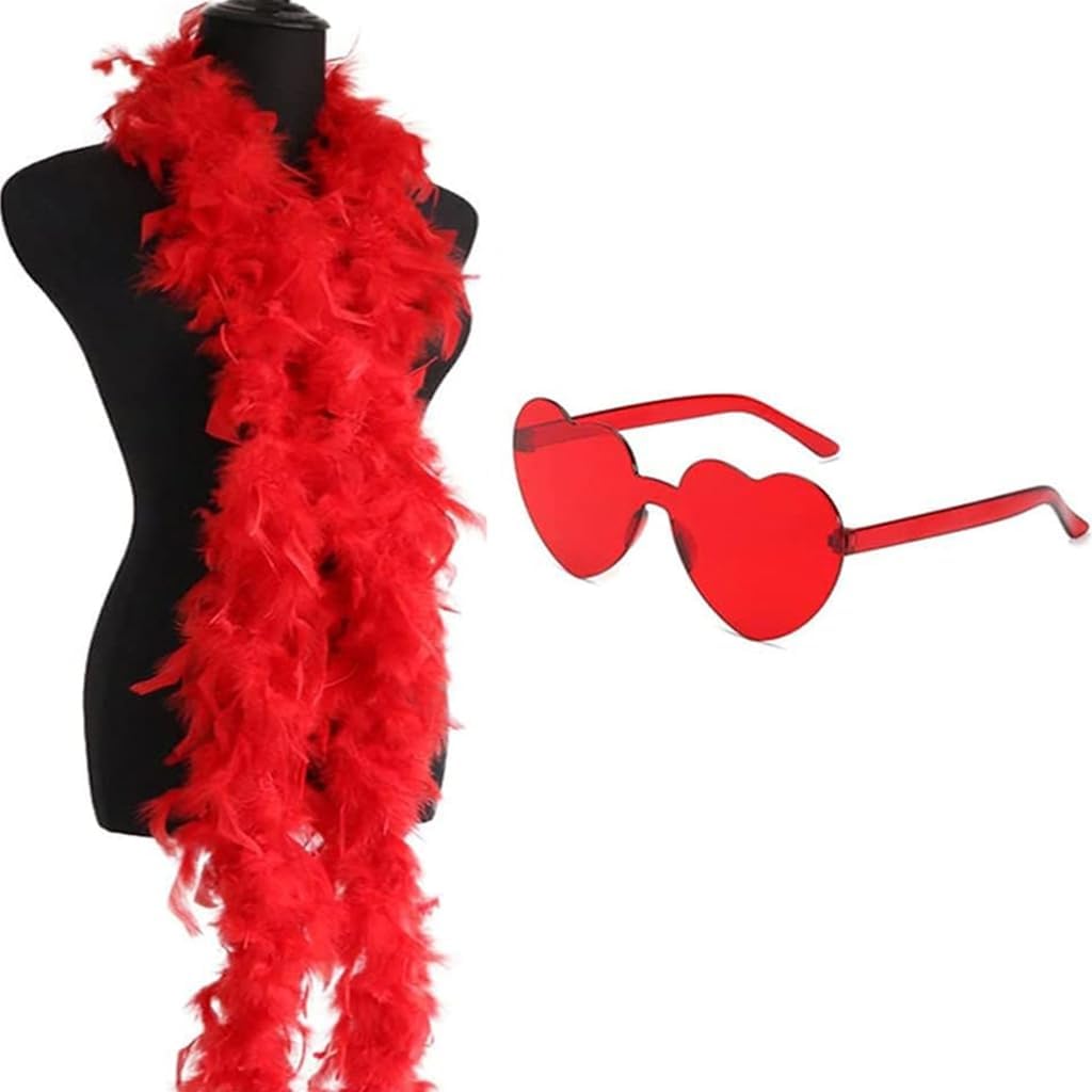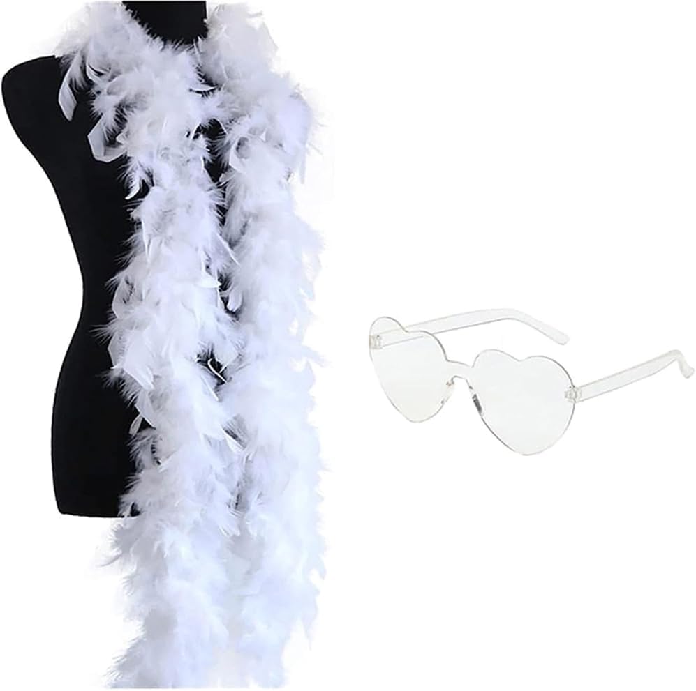boa di piume, sciarpa, occhiali da donna, gioco di ruolo, costume, cravatta, occhiali da sole, per musica, festival, addio al celibato, carnevale Caratteristiche: Migliora il tuo look da festa con questa sciarpa, perfetta per diverse occasioni. Questa sciarpa è realizzata in piume naturali e plastica, incredibilmente morbida e confortevole. Per la finitura, è stato accuratamente pulito. Per un look individuale alla moda per spettacoli di danza, matrimoni e festival. Accessorio perfetto per feste a tema come Natale, Capodanno e Halloween. Ideale per vari travestimenti come carnevale, giorno dell'indipendenza, adatto per persone di età diverse. Specifiche: Dimensioni del prodotto: come da immagine. Opzione colore: 8 colori opzionali come mostrato in foto, si prega di scegliere la vostra preferenza tessuto. La confezione include: 1 boa di piume. 1 paio di occhiali da sole a Nota: Si prega di considerare un margine di errore di 1-2 cm a causa della A causa delle differenze tra i diversi monitor, l'immagine potrebbe non riflettere il colore reale dell'articolo.