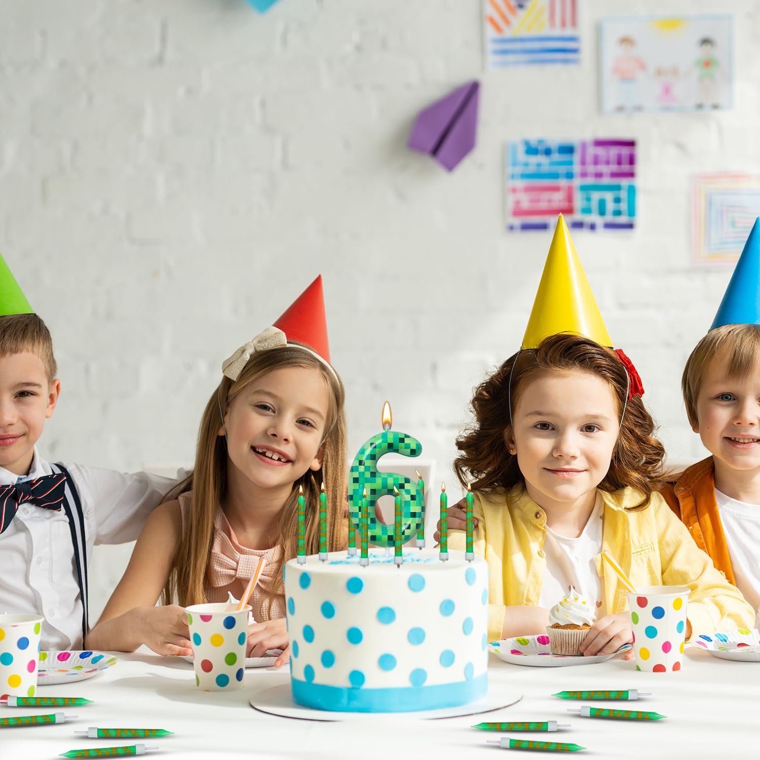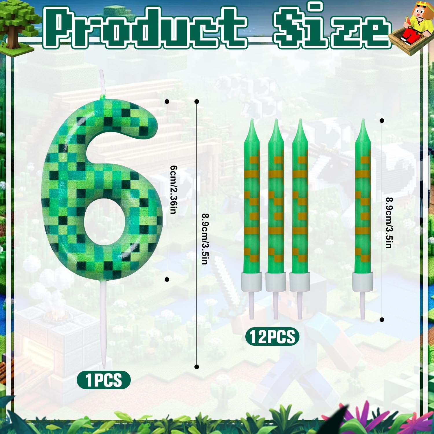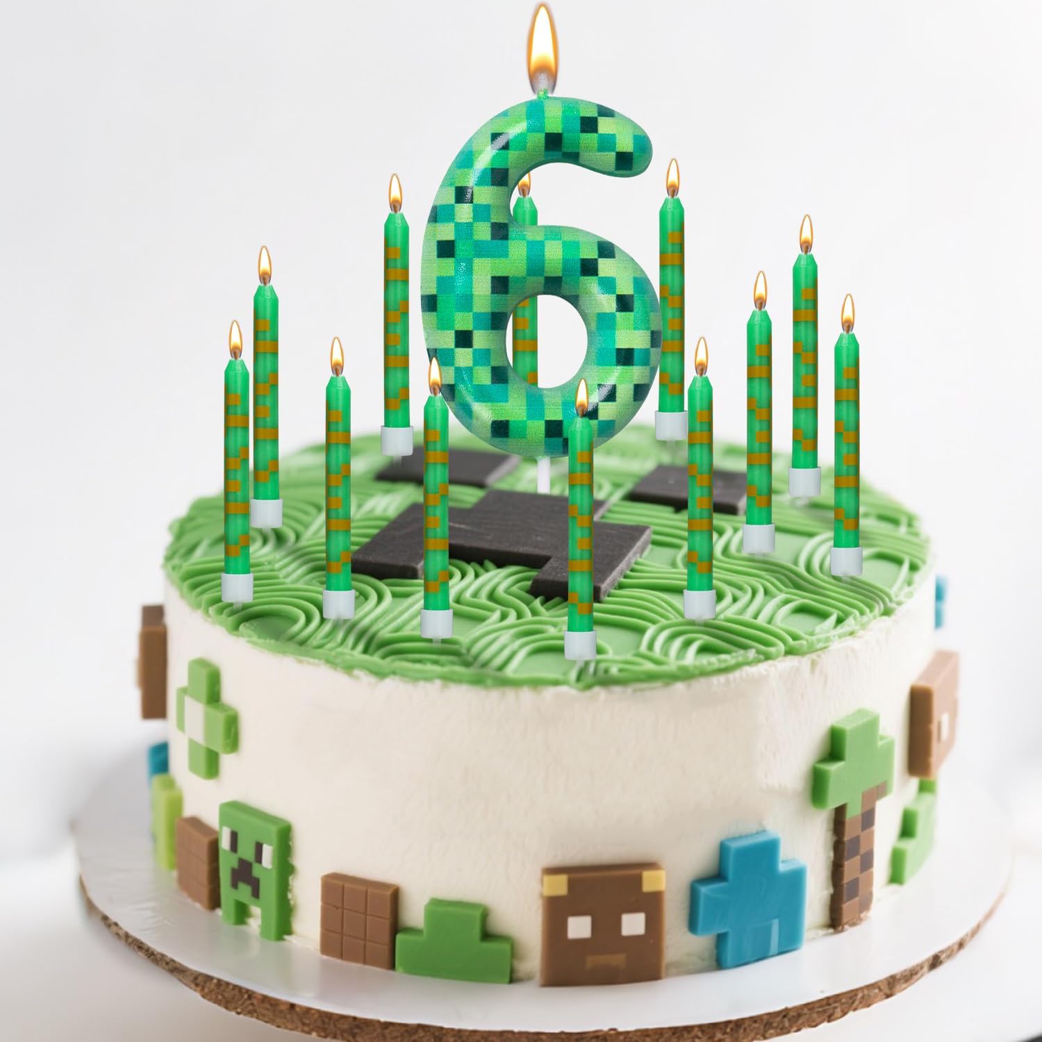 Elementi unici: la combinazione di motivi quadrati pixel e ricche tonalità verdi ricorda gli incantevoli mondi dei videogiochi classici. I bambini si sentono immediatamente come se fossero nel bel mezzo di un'avventura digitale colorata. Quando i tuoi ospiti vedono queste decorazioni per torte Pixel Candle, i loro occhi si illumineranno di eccitazione! Dimensioni ottimali: le candele di compleanno sono alte circa 10 cm, quindi non troppo grandi, né troppo piccole. Il fondo delle candele pixel ha un bel picco stretto, che dà loro un alto supporto quando inseriti nella torta. È perfetto per piccole torte, torte grandi, cupcake e persino alzate per torte e attirerà immediatamente l'attenzione di tutti Materiali di alta qualità: queste candele di compleanno per giochi di minatore sono realizzate in cera di paraffina di alta qualità, bruciano in modo uniforme e sicuro. La fiamma è calda e non produce né fumo né odori sgradevoli, quindi i compleanni possono essere senza preoccupazioni Sorpresa indimenticabile: ogni set include 1 candela di compleanno pixel accuratamente progettata con motivo digitale e 12 candele di compleanno. L'interessante tema pixel ti fa avere grandi occhi e pura gioia sulla tavola del compleanno. Le candele di compleanno non sono solo decorazioni, ma trasforma il momento di spegnere le candele in una piccola avventura Ampia applicazione: che si tratti di una festa di compleanno, anniversario, baby shower, matrimonio o festa a tema, questo divertente topper per torta Pixel può creare un'atmosfera allegra e unica, che non solo fa sentire felici i bambini, ma rende anche felici gli adulti Garanzia di qualità: le nostre candele di compleanno sono confezionate in scatole di plastica, che le proteggono naturalmente da scheggiature o rotture durante il trasporto e lo rendono anche comodo per conservarle e riutilizzarle. Se avete problemi con le vostre candele di compleanno, vi preghiamo di contattarci immediatamente e troveremo la soluzione migliore per voi