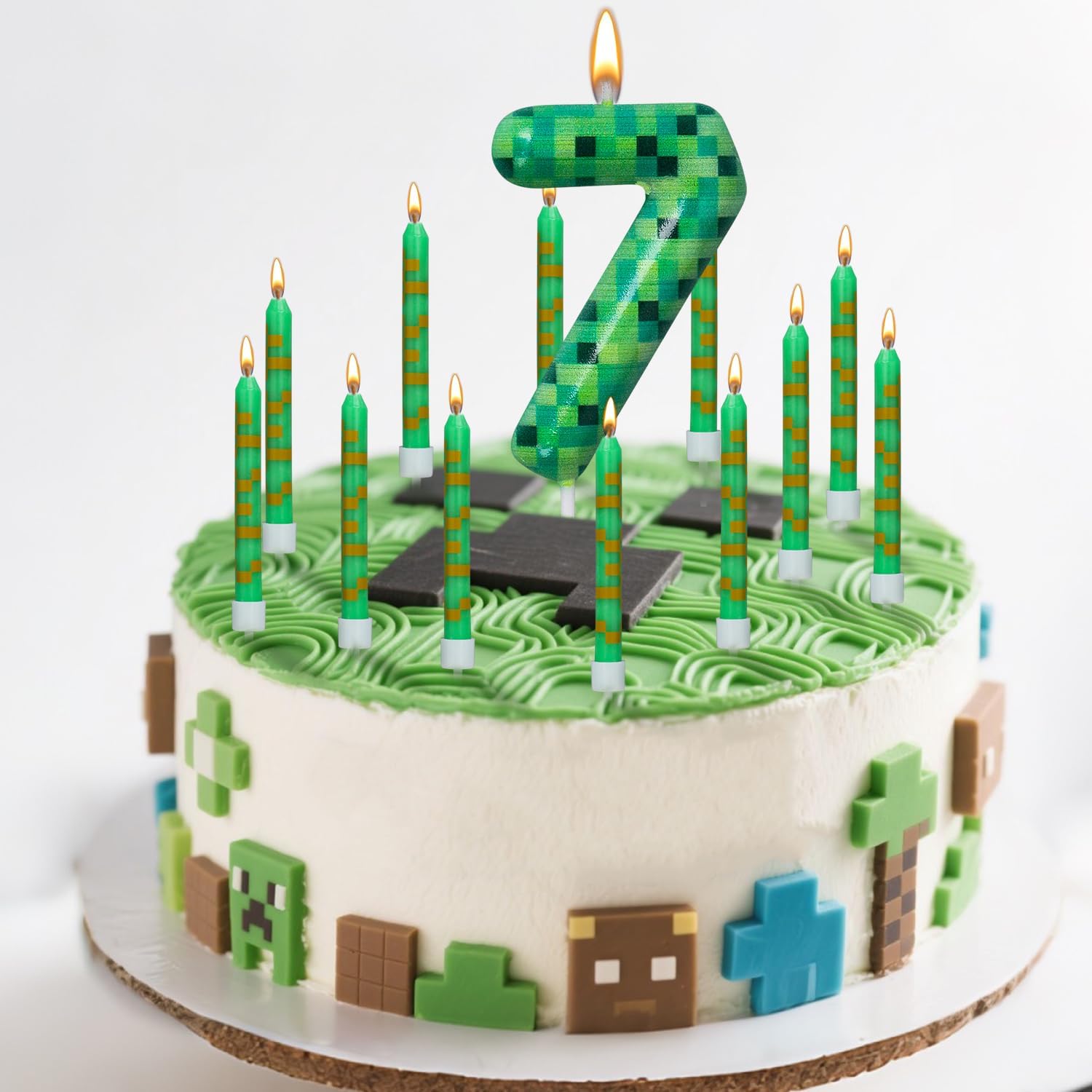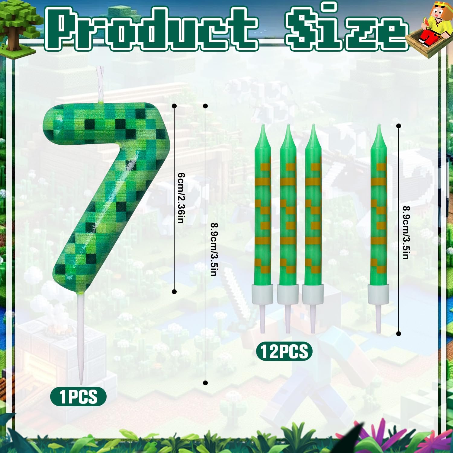 Elementi unici: la combinazione di motivi quadrati pixel e ricche tonalità verdi ricorda gli incantevoli mondi dei videogiochi classici. I bambini si sentono immediatamente come se fossero nel bel mezzo di un'avventura digitale colorata. Quando i tuoi ospiti vedono queste decorazioni per torte Pixel Candle, i loro occhi si illumineranno di eccitazione! Dimensioni ottimali: le candele di compleanno sono alte circa 9 cm, quindi non troppo grandi, né troppo piccole. Il fondo delle candele pixel ha un bel picco stretto, che dà loro un alto supporto quando inseriti nella torta. È perfetto per piccole torte, torte grandi, cupcake e persino alzate per torte e attirerà immediatamente l'attenzione di tutti Materiali di alta qualità: queste candele di compleanno per giochi di minatore sono realizzate in cera di paraffina di alta qualità, bruciano in modo uniforme e sicuro. La fiamma è calda e non produce né fumo né odori sgradevoli, quindi i compleanni possono essere senza preoccupazioni Sorpresa indimenticabile: ogni set include 1 candela di compleanno pixel accuratamente progettata con motivo digitale e 12 candele di compleanno. L'interessante tema pixel ti fa avere grandi occhi e pura gioia sulla tavola del compleanno. Le candele di compleanno non sono solo decorazioni, ma trasforma il momento di spegnere le candele in una piccola avventura Ampia applicazione: che si tratti di una festa di compleanno, anniversario, baby shower, matrimonio o festa a tema, questo divertente topper per torta Pixel può creare un'atmosfera allegra e unica, che non solo fa sentire felici i bambini, ma rende anche felici gli adulti Garanzia di qualità: le nostre candele di compleanno sono confezionate in scatole di plastica, che le proteggono naturalmente da scheggiature o rotture durante il trasporto e lo rendono anche comodo per conservarle e riutilizzarle. Se avete problemi con le vostre candele di compleanno, vi preghiamo di contattarci immediatamente e troveremo la soluzione migliore per voi