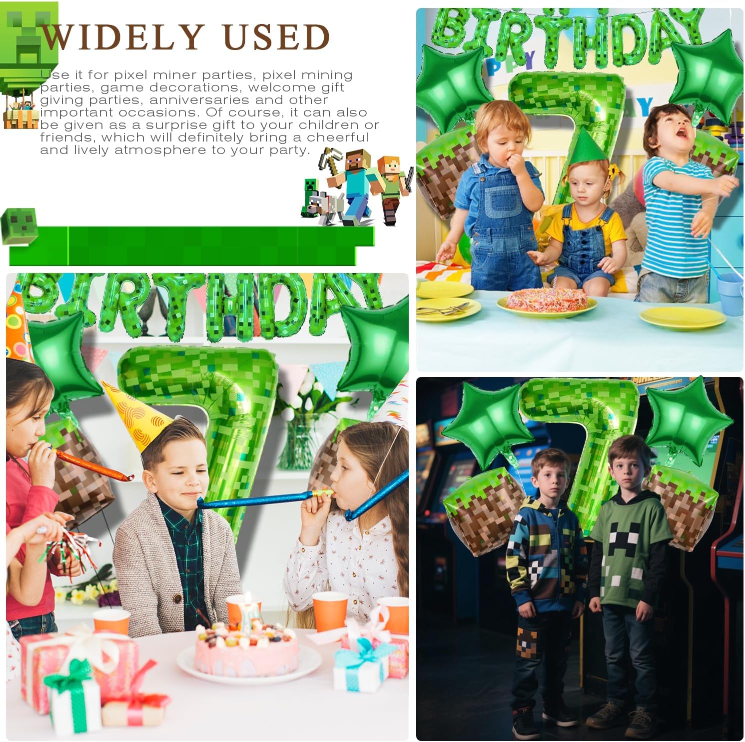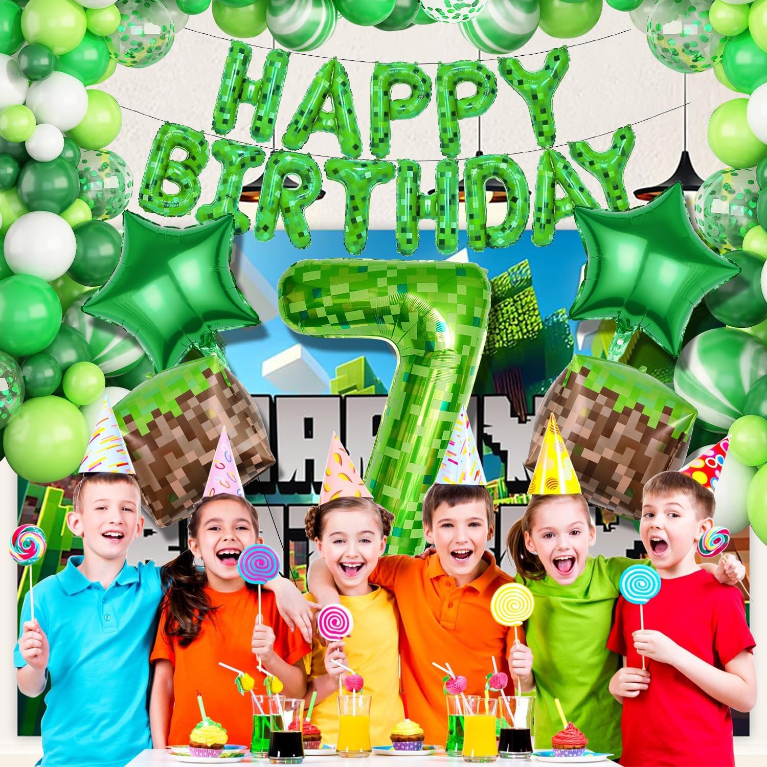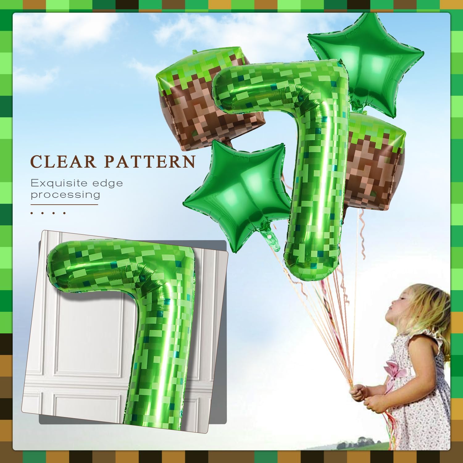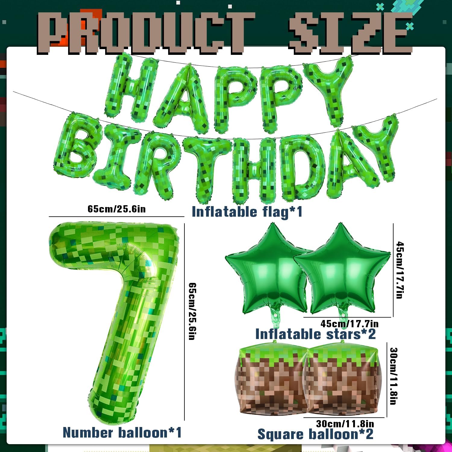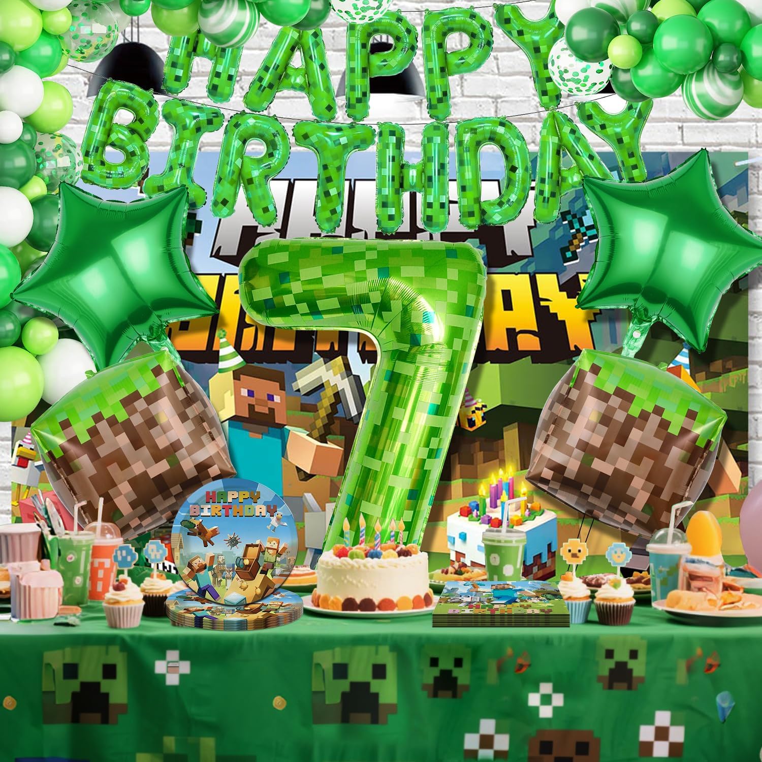 Pixel Party Palloncino Compleanno 7 anni: 1 pezzo da 16 pollici 'Happy Birthday, 1 pezzo 40 pollici verde Pixel Miner palloncino numero 7, 2 palloncini quadrati in pellicola, 2 palloncini quadrati in pellicola, 2 pezzi di palloncini a stelle verdi, 10 m palloncini e nastro biadesivo Pixel Design: queste decorazioni per il compleanno di giovani 7 anni dispongono di design pixelati per videogiochi, perfette per feste a tema di gioco e popolare tra i bambini. Qualità premium: i palloncini decorativi di compleanno per ragazzi Miner sono realizzati in pellicola di alluminio di alta qualità, leggera, sicura, riutilizzabile e particolarmente stabile. Può essere riempito con aria o elio per farlo galleggiare. Facile da gonfiare e chiusura automatica: la decorazione per compleanno è comoda da usare, molto facile da gonfiare e sgonfiare, non ci sono nodi da legare; basta premere la valvola di gonfiaggio. Ampia applicazione: decorazione di compleanno per ragazzi 7 anni, perfetta per feste di compleanno, feste a tema, feste di classe e tutti i tipi di decorazioni per eventi all'aperto. Può essere utilizzato in salotti, pareti interne, aule, giardini all'aperto, ecc.