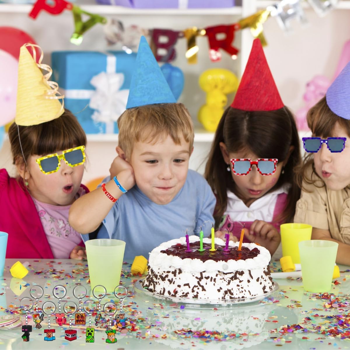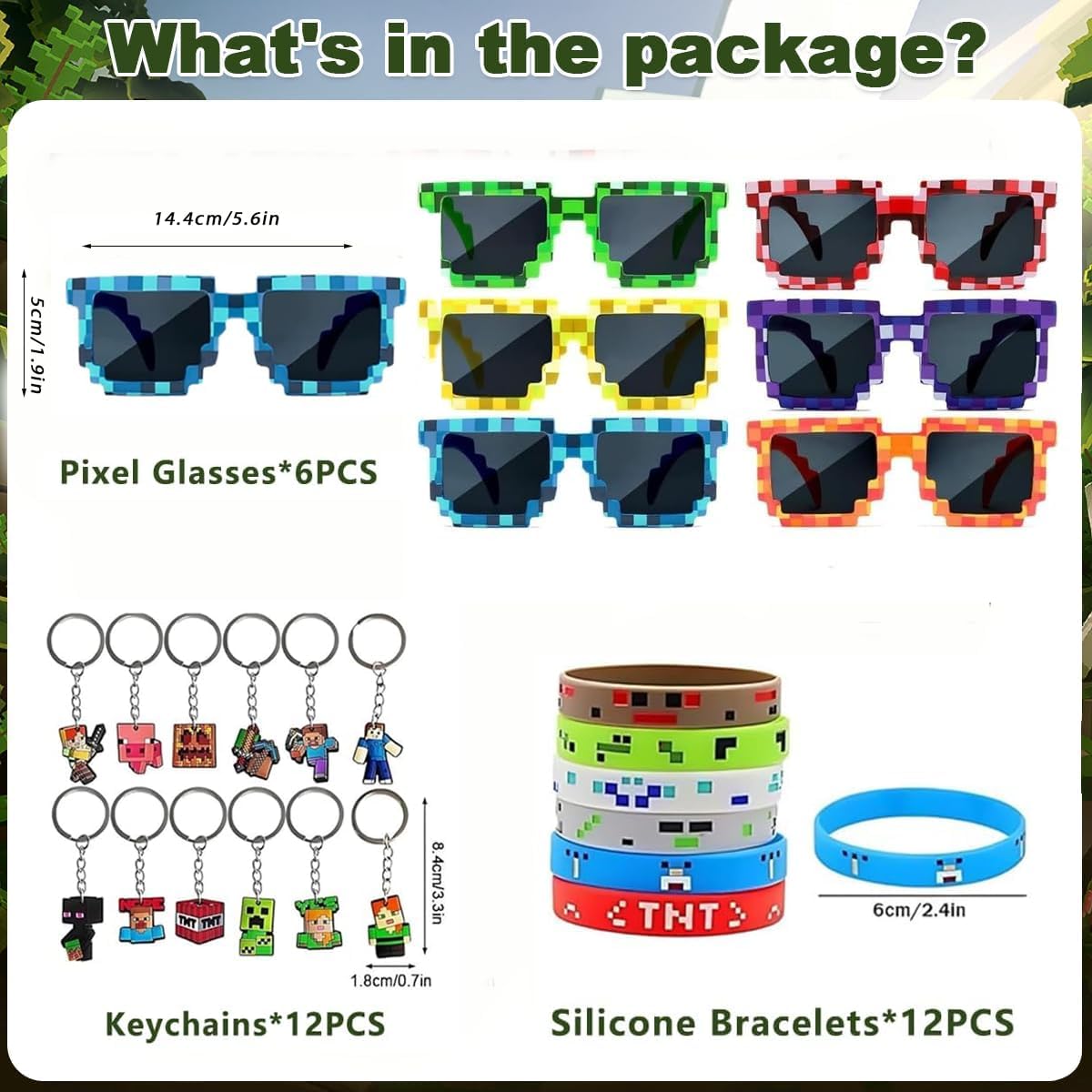【Regalo per la festa di videogiochi】Set di bomboniere per feste di compleanno dei bambini. Disponibili 12 portachiavi per videogiochi, 12 braccialetti per feste, 6 occhiali da sole giocattolo. I bambini adorano le bomboniere a tema videogiochi! Queste bomboniere sono un accessorio essenziale per le decorazioni delle feste di compleanno dei bambini. 【Materiale Alta Qualità】I braccialetti bambini, i set portachiavi, ecc sono realizzati in materiale di alta qualità, che può essere utilizzato a lungo senza cadere o danneggiarsi. Il nostro regalo per la festa del videogioco dei compleanno dei bambini è stato uno dei preferiti tra ragazzi e ragazze. Queste bomboniere sono un accessorio essenziale per le decorazioni delle feste di compleanno dei bambini. 【Gadget per bambini compleanno】Questi portachiavi possono essere appesi agli zaini. I braccialetti sono colorati e stampati con motivi ad alta risoluzione.Questi occhiali da sole per bambini sono disponibili in un totale di 6 colori, che si abbinano bene a diversi abiti e creano un'atmosfera retrò e alla moda nelle feste a tema. 【Design Unico】Ogni Bambini Regalini Premi è progettato con motivi unici di Gamer e colori vivaci, regala ai bambini un divertimento senza fine, Sogna indietro nell'era delle console di gioco. Coinvolgi tutti nel gioco distribuendo piccoli doni alla festa! 【Regalo Perfetto】Vuoi fare a tuo figlio un regalo meraviglioso e fantastico? Il design del tema dei videogiochi è molto popolare tra i bambini di tutte le età! Le regalo fine festa compleanno bambini sono adatte a tutti i tipi di feste, come compleanni, Pasqua, eventi scolastici, Halloween, Natale, feste a tema anime, calendari dell'Avvento o Capodanno. Questo è un grande regalo per i bambini che porterà gioia e sarà ricordato a lungo.
