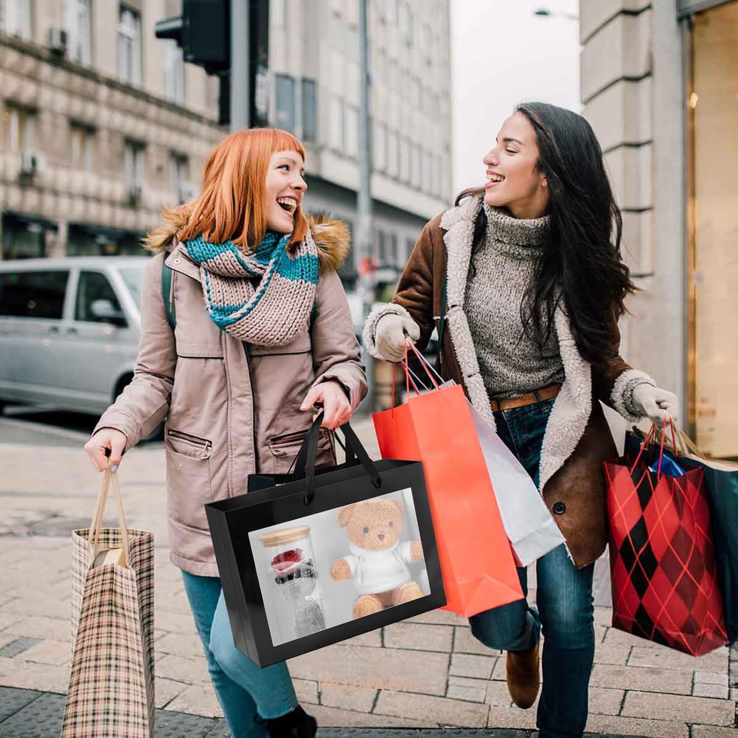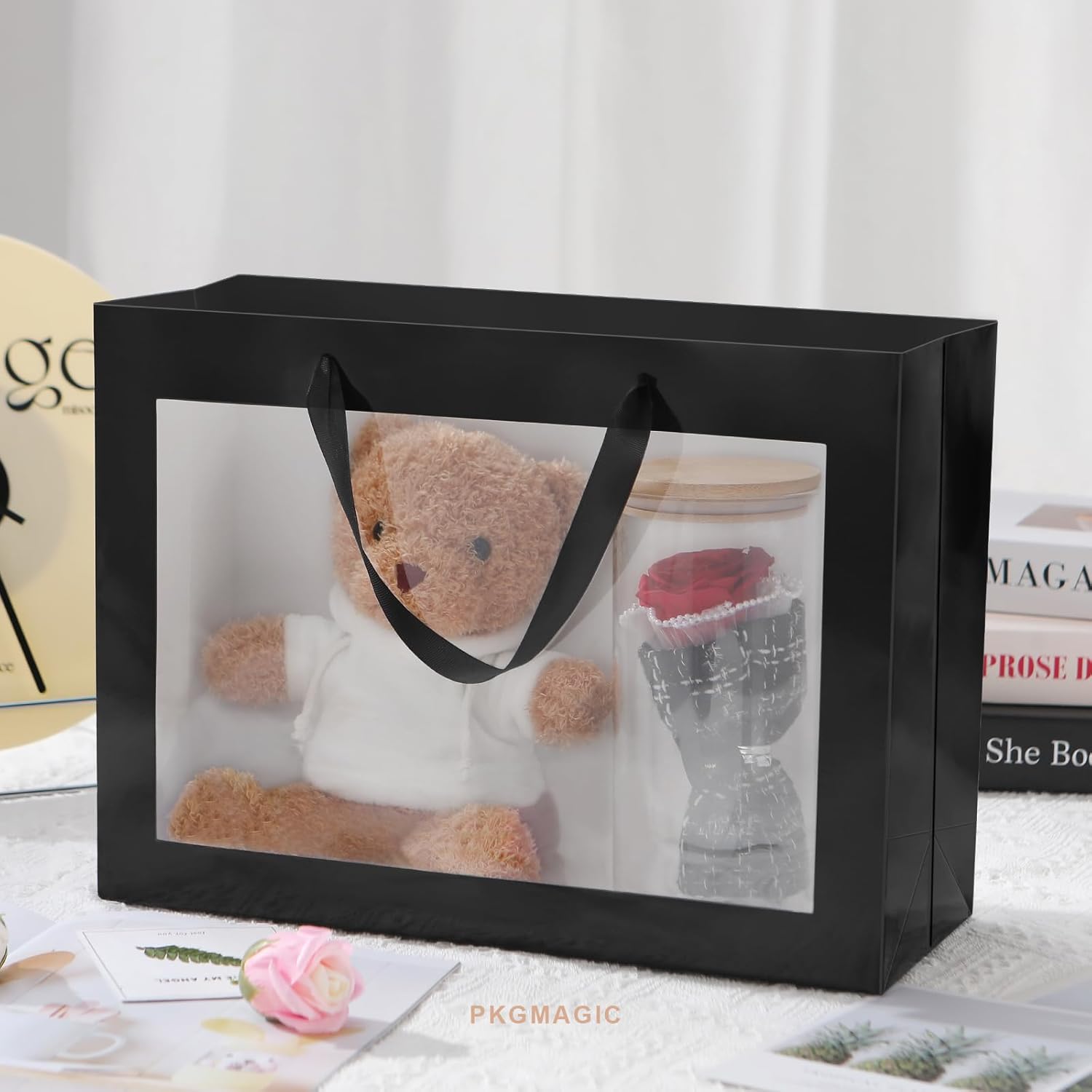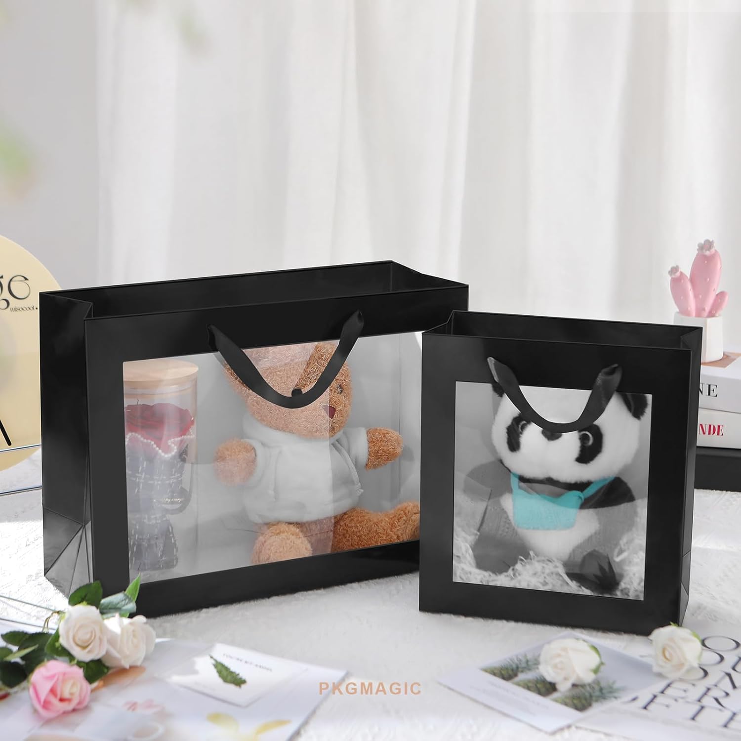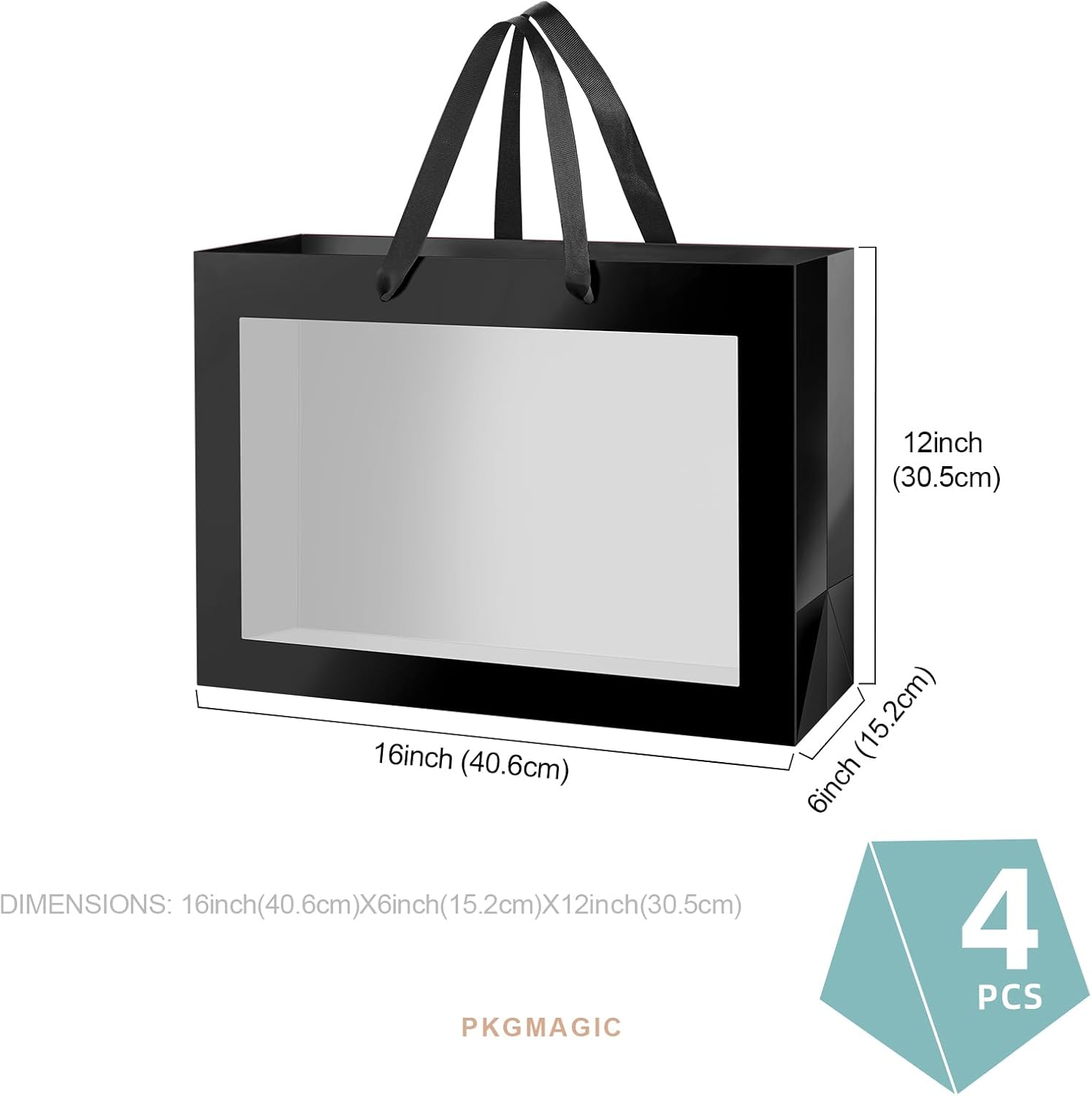 Dimensioni: i sacchetti regalo neri misurano: 40,64 x 15,24 x 30,48 cm (16 × 6 × 12 pollici), adatti per trasportare vari oggetti come mazzi di fiori, bomboniere, snack, giocattoli e altro ancora. La confezione include: sacchetti regalo trasparenti da 4 pezzi con manici. I manici e i sacchetti regalo separatamente per evitare che si pieghino durante il trasporto Materiale: Realizzati con cartone avorio metallizzato e manici scanalati, carta con finitura lucida, questi sacchetti regalo sono resistenti e possono facilmente contenere una varietà di articoli Design con finestra trasparente: I grandi sacchetti regalo sono progettati con una finestra trasparente, che ti consente di vedere attraverso gli oggetti all'interno e di esporre i tuoi regali squisiti Applicazione: il sacchetto regalo con finestre può essere utilizzato come sacchetto regalo per diverse occasioni come compleanni, anniversari, matrimoni, baby shower, lauree e feste varie