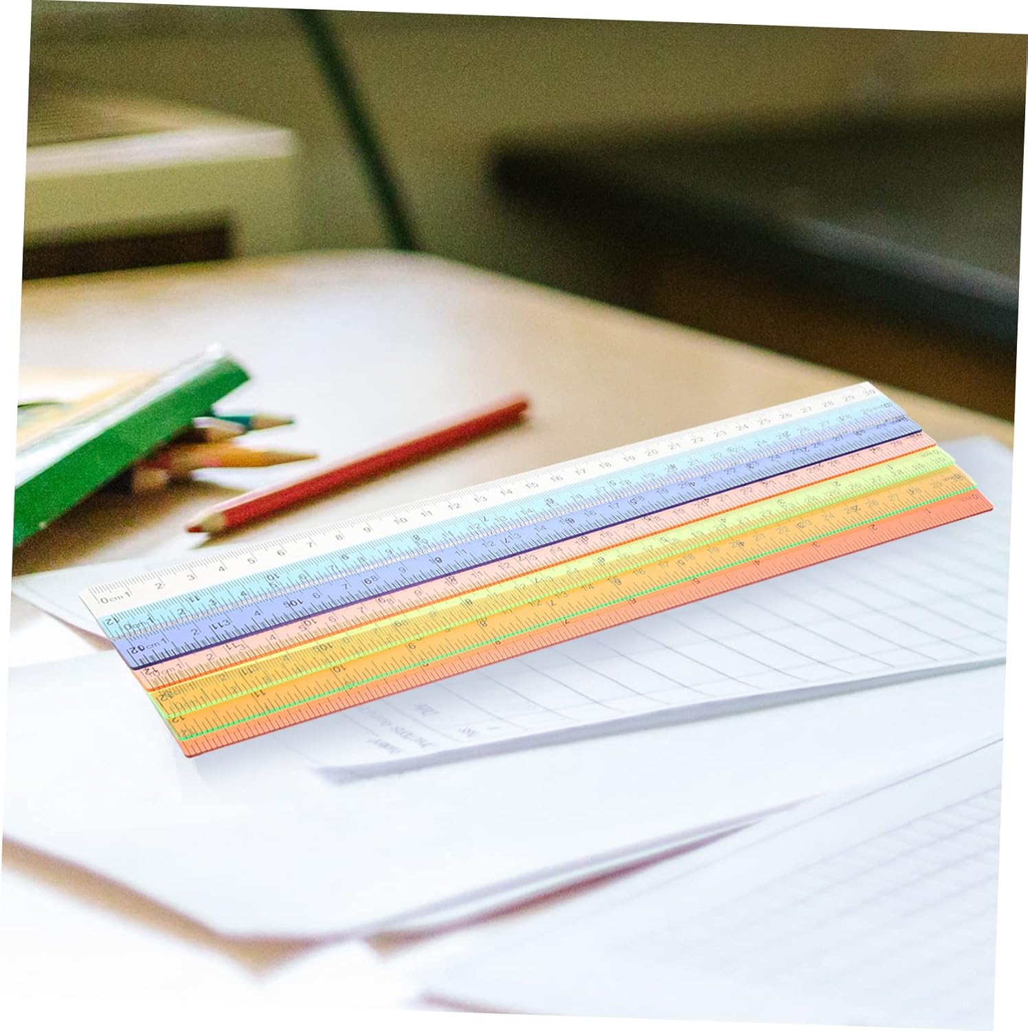 Righello in scala: piccolo e raffinato, facile da usare e trasportare, che può offrirti una buona esperienza, righelli con centimetri. Righelli in plastica multifunzione: il righello dritto colorato può essere utilizzato anche come segnalibro per aiutarti a continuare a leggere facilmente, fornitura per studenti. Righelli dritti: inciso con scala chiara incisa, il righello è facile da leggere e utilizzare, molto pratico e conveniente, righello per bambini. Righelli per studenti: non solo è bello da vedere, ma la sua consistenza e il suo peso sono progettati per sembrare ingombranti per la classe. Righello studente multifunzione: il righello dritto dal design colorato è adatto per aula, scuola, ufficio, casa, ecc., un ottimo aiuto per la misurazione, righelli colorati.