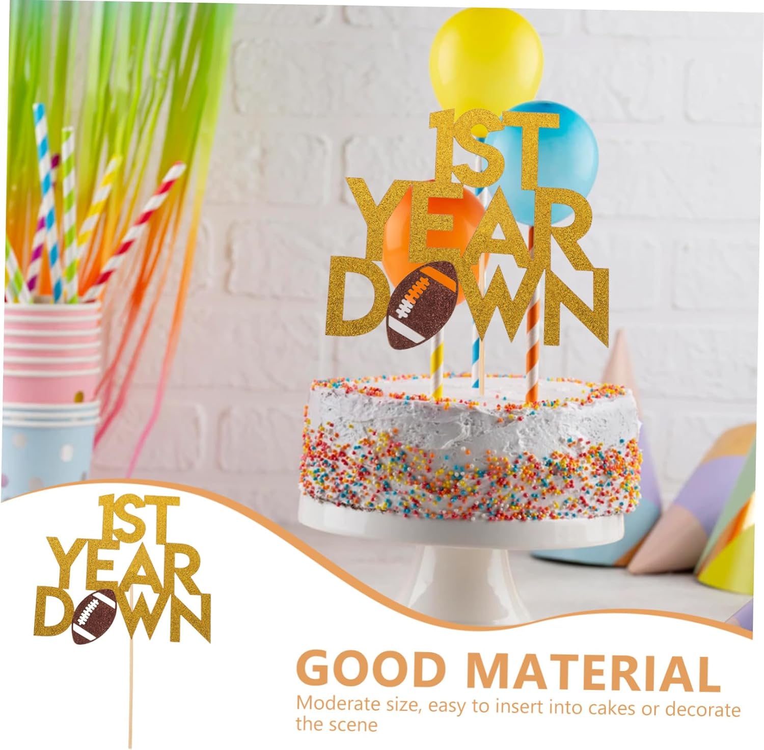 Facile da installare e da pulire: il topper per torta a forma di pallone da calcio e gli stuzzicadenti per torta a forma di pallone da rugby si inseriscono facilmente nelle torte; dopo l'uso, la pulizia rapida e i design riutilizzabili semplificano le feste future, decorazione per topper per torta a forma di pallone da calcio, decorazioni a forma di pallone da calcio Set per feste: include decorazioni per feste a tema rugby, set per feste a tema calcio e topper per torta di compleanno con bandierine, così avrai tutto il necessario per decorazioni complete per feste a tema sportivo, topper per torta sportiva, topper per torta a tema calcio Soluzioni decorative versatili: decorazioni a tema rugby e stuzzicadenti per cupcake a tema rugby si adattano a qualsiasi festa, che si tratti di un compleanno, di una doccia o di una festa sportiva, assicurando che le tue decorazioni sportive si distinguano, topper per cupcake a tema rugby, decorazioni per pali da calcio Idee regalo adatte: il set di bomboniere per feste a tema sportivo e i topper per cupcake per feste di calcio sono regali ideali per ragazzi, amanti dello sport o chiunque festeggi con un topper per torta di compleanno sportivo, decorazioni per feste a tema sportivo, decorazioni per compleanni sportivi Adattabile a qualsiasi dimensione di festa: che si tratti di una piccola riunione di famiglia o di un grande evento, il topper per cupcake a tema rugby e il set per feste di calcio si adattano facilmente, rendendo qualsiasi celebrazione più festosa, topper per cupcake a tema giocatore di football, topper per torta a tema rugby