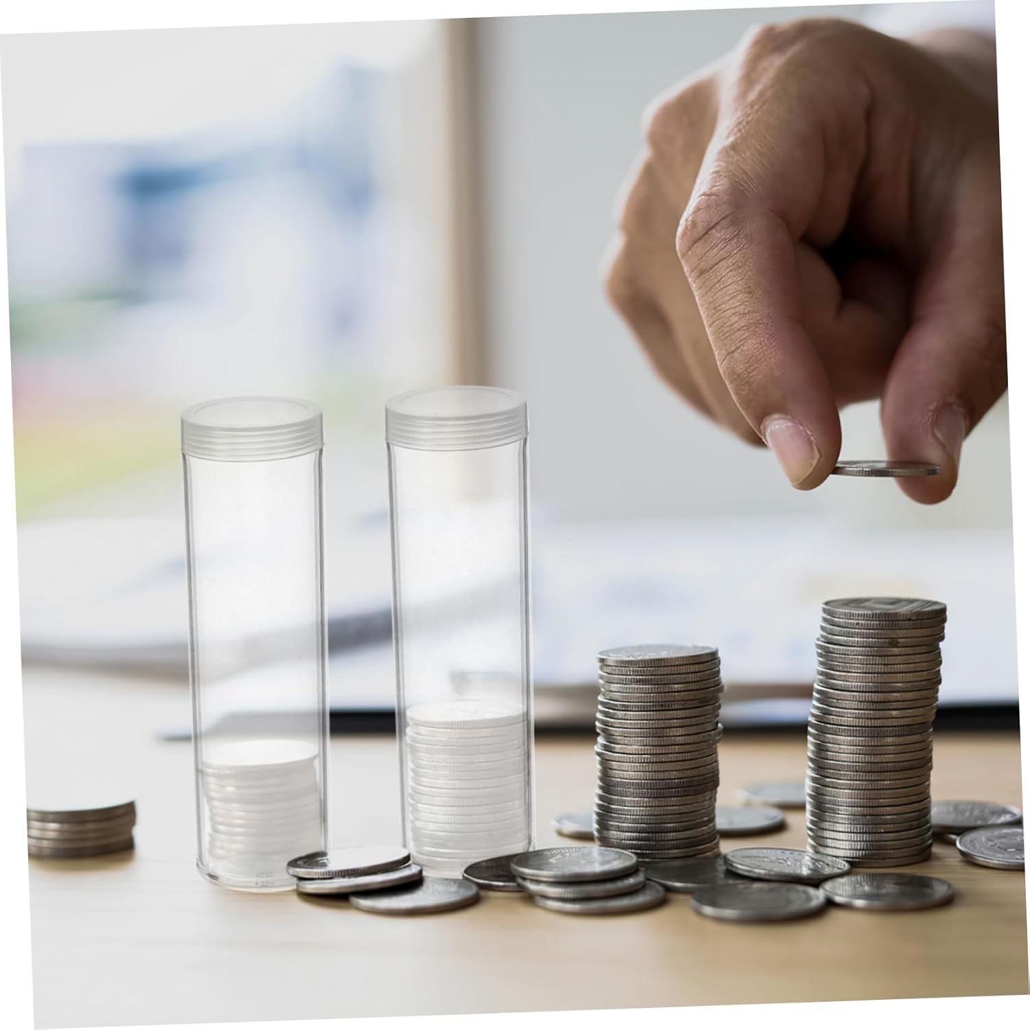 Conservazione conveniente: questi tubi per la conservazione delle monete consentono organizzare sia monete arrotolate che sciolte, risolvendo efficacemente il problema del disordine e mantenendo ordinata e pulita, -monete, tubi conta-monete Facile : il design trasparente consente identificare rapidamente monete senza problemi, risparmiando durante la ricerca pezzi specifici nella tua , tubo trasparente, monete Leggeri e portatili: compatti e facili da trasportare, questi tubi sono adatti per viaggi, attività all'aperto o per esporre monete nei commerci, offrendo protezione ovunque vada, tubi per monete, scatole protettive per monete rotonde in plastica Accesso e facile: potrai rapidamente tue monete, poiché il design trasparente la necessità supposizioni quando cerchi pezzi specifici, tubi stoccaggio rotondi in plastica trasparente, tubi per monete Adatto per esporre: usa questi tubi trasparenti per mettere in mostra tue monete preziose, migliorandone la visibilità durante esposizioni o mostre e mantenendole al sicuro, -erogatore monete, tubi per monete da un quarto