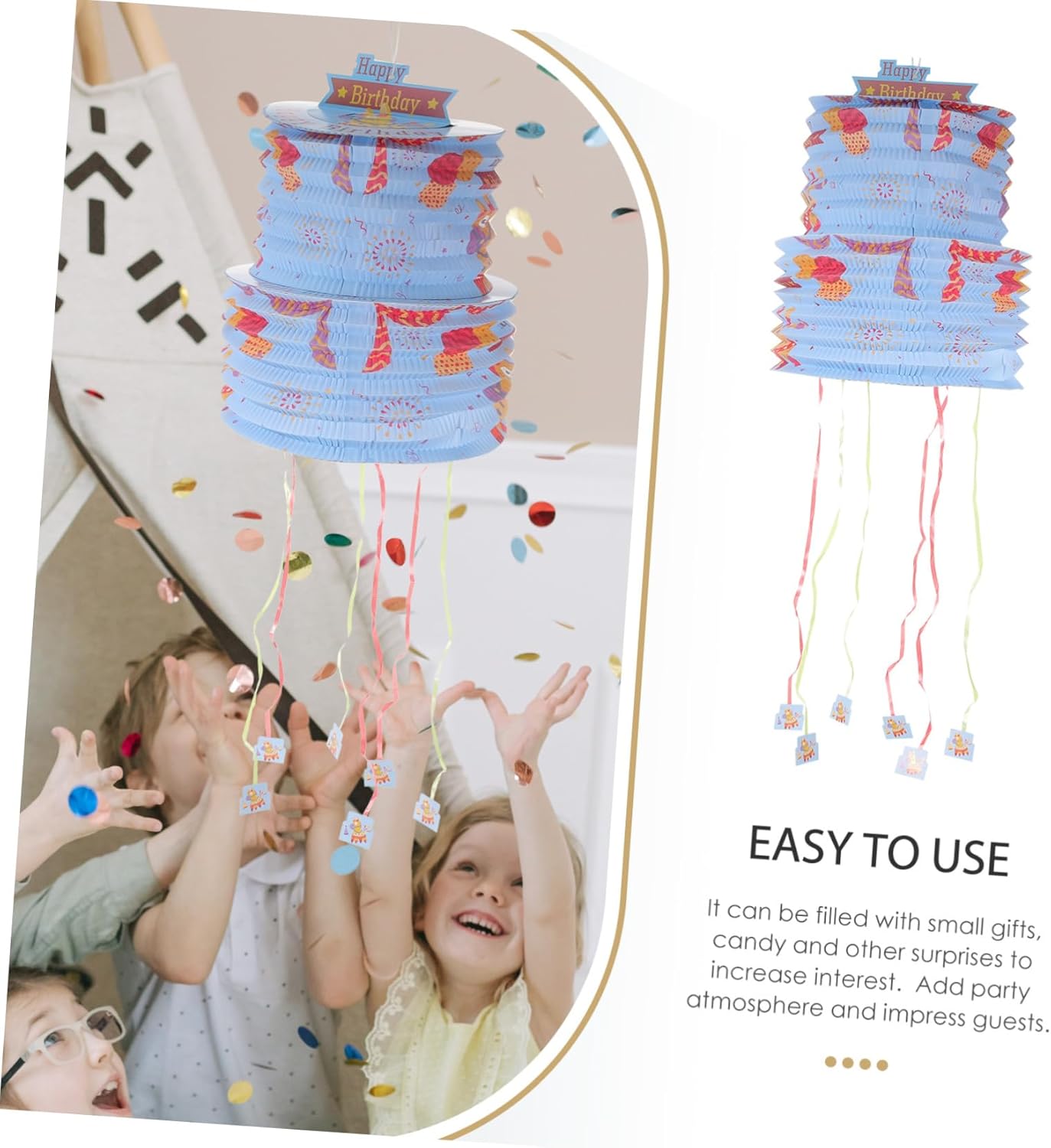 Pinata di caramelle di compleanno: può essere riempita con piccole caramelle e altre sorprese per aumentare l'interesse, aggiungere atmosfera di festa e impressionare gli ospiti, pinata di feste di compleanno. Decorazione pinata: questa pinata completerà la festa, la festa a tema, il carnevale, la festa di compleanno, la celebrazione e altro ancora, pinata di carta di compleanno. Ornamento della pinata: usa la pinata come decorazione per le feste o chiedi agli ospiti di provare a rompere la pinata per rilasciare le caramelle all'interno, pinata messicana. Pinata per la festa: riempila facilmente con un ripieno di pinata come caramelle, cioccolatini, mini giocattoli o coriandoli, pinata di carta. Oggetto di pinata: questo ornamento di pinata di carta è perfetto per una festa di compleanno, una festa o un evento speciale imminente, decorazione di pinata per eventi.