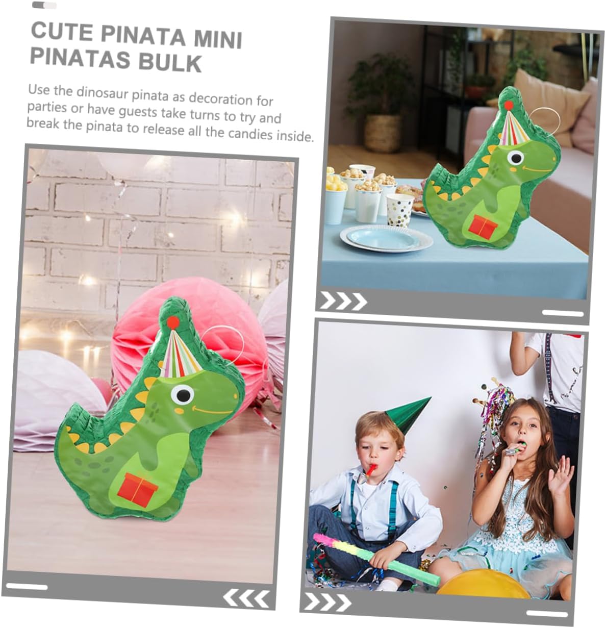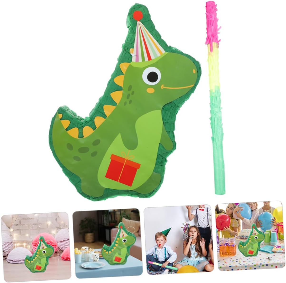 Presenta un design a forma di dinosauro bello, unico e creativo che attirerà l'attenzione della gente. Il design divertente e accattivante sarà apprezzato da persone di tutte le età e ravviverà le tue feste. Questa pignatta completa la festa, la festa a tema, il carnevale, la festa di compleanno, la celebrazione e molto altro ancora. Molto adatto per suonare durante feste, feste di compleanno e festival o celebrazioni. Il tradizionale giocattolo della pignatta ha la forma di un dinosauro, che si adatta molto bene alla festa. Questa decorazione pignatta è accattivante con colori vivaci, perfetti per le decorazioni delle feste e anche come oggetti fotografici.
