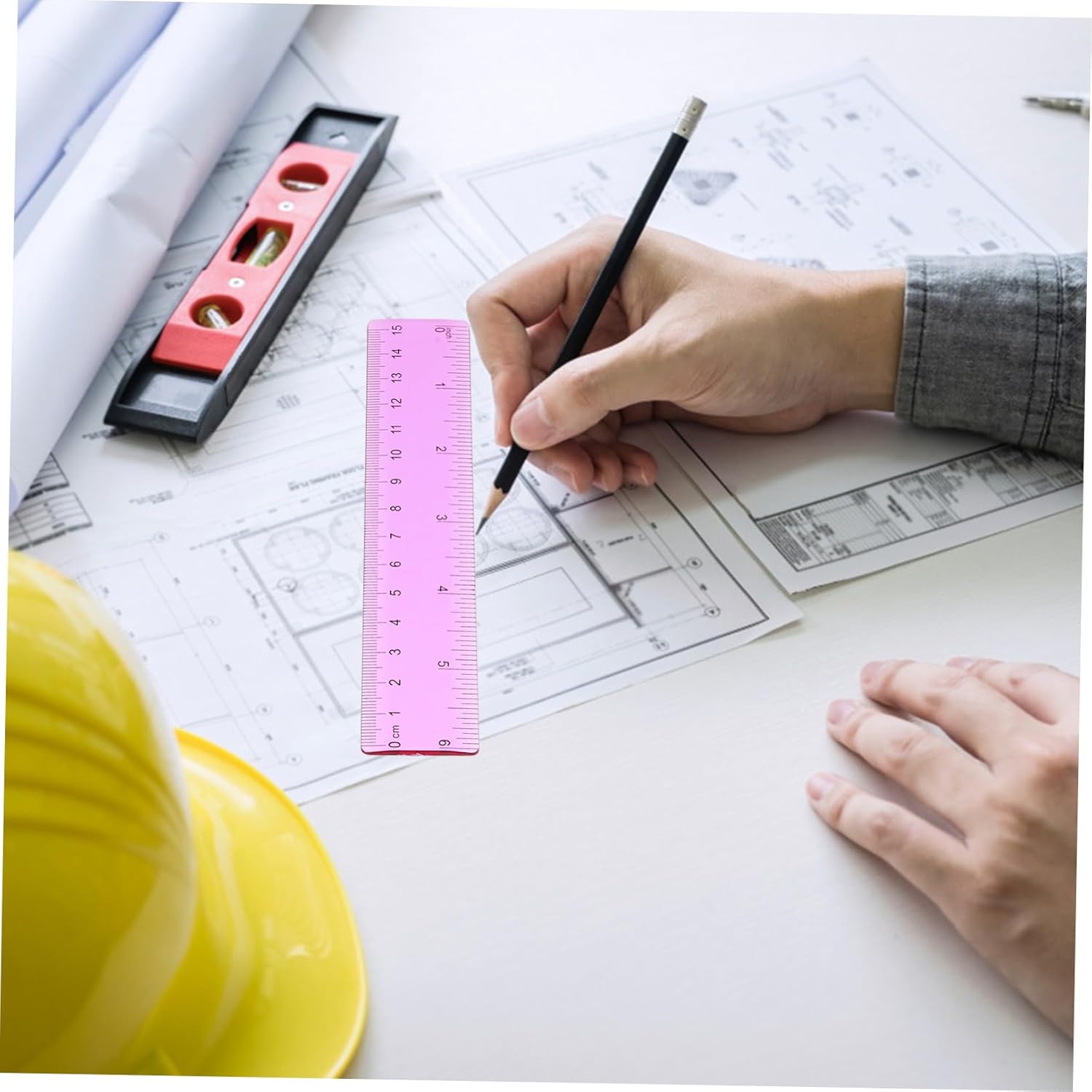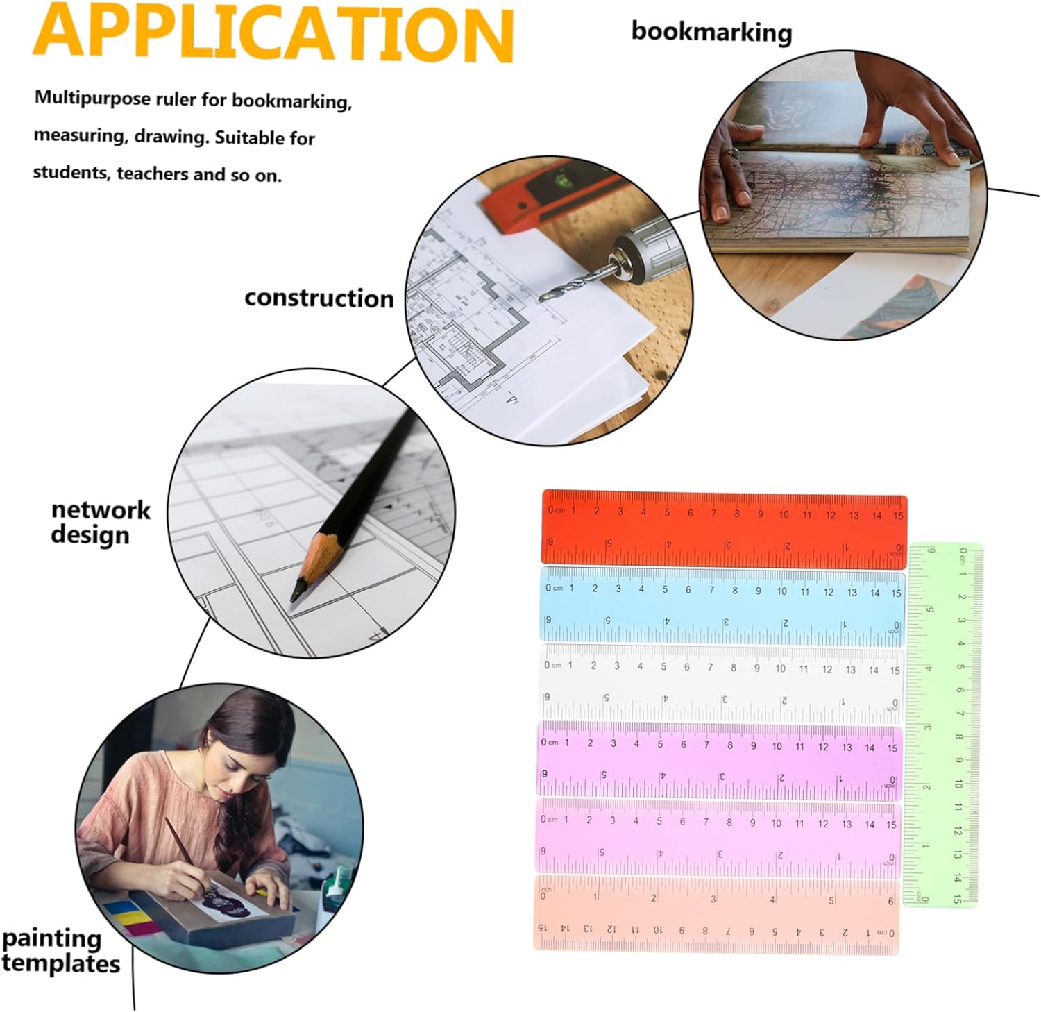 Materiale scolastico: può essere utilizzato a scuola, in ufficio, a casa o lavoro, ovunque e ogni volta che è necessario utilizzarlo, strumento di disegno. Righello dritto: è un valido aiuto per artisti, ingegneri, designer, architetti, studenti e altri, kit righello multifunzionale. Strumento di misurazione: la pregevole fattura e il materiale stabile assicurano che non sbiadisca o sfreghi durante l'uso, righello da ufficio. Strumento di disegno di progettazione: con numero di scala in plastica, garantisce la precisione, un set di strumenti di disegno eccellente e utile per te, righello da disegno per ufficio. Righello geometrico professionale: la testa del righello antiscivolo dal design ergonomico lo rende comodo da tenere in mano, un must per la scuola.