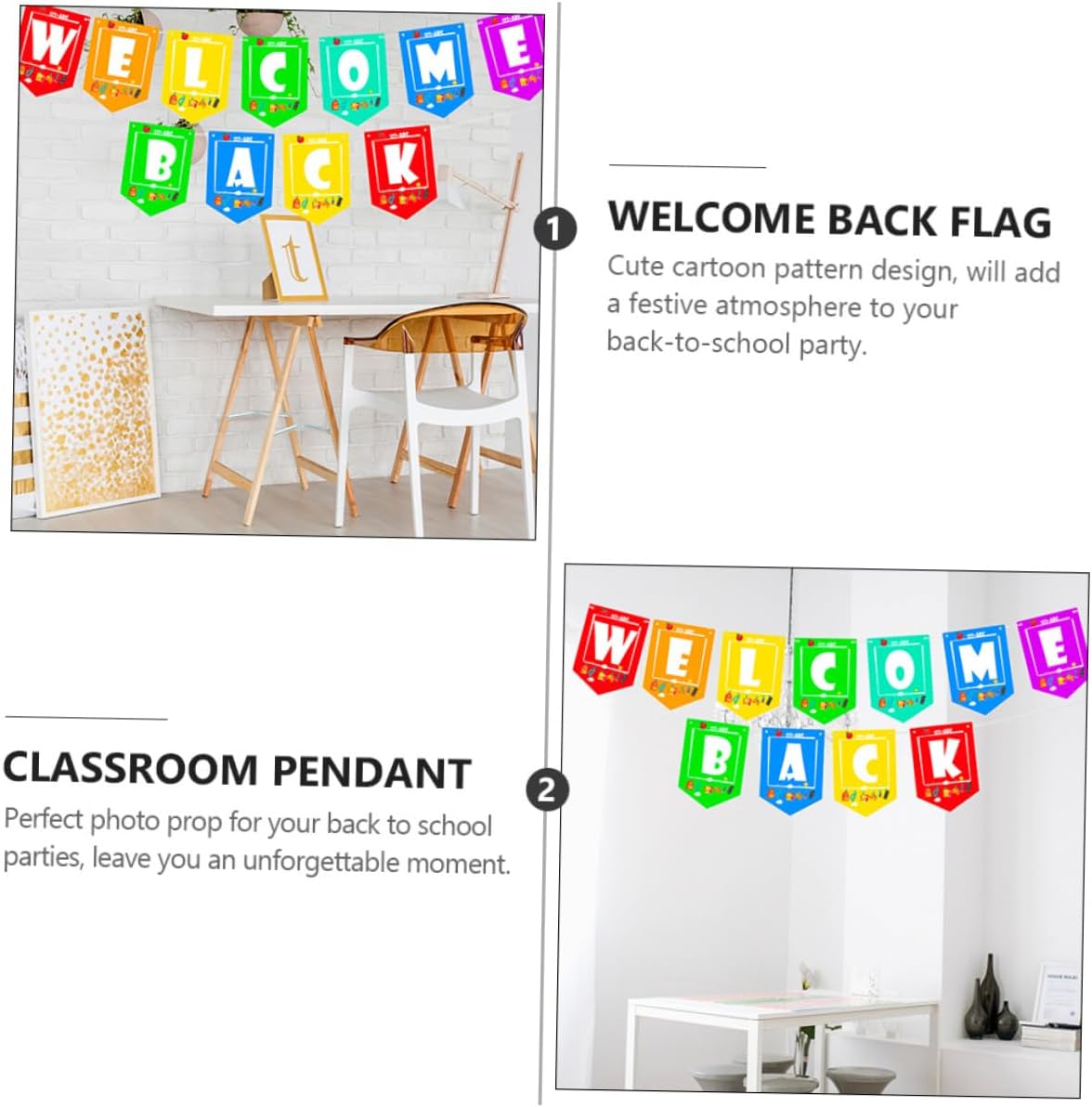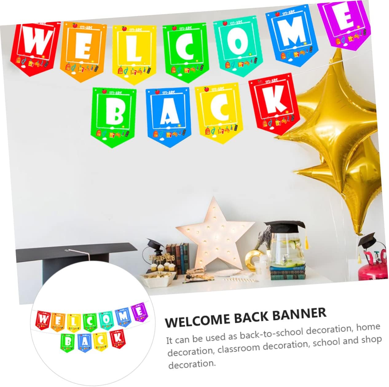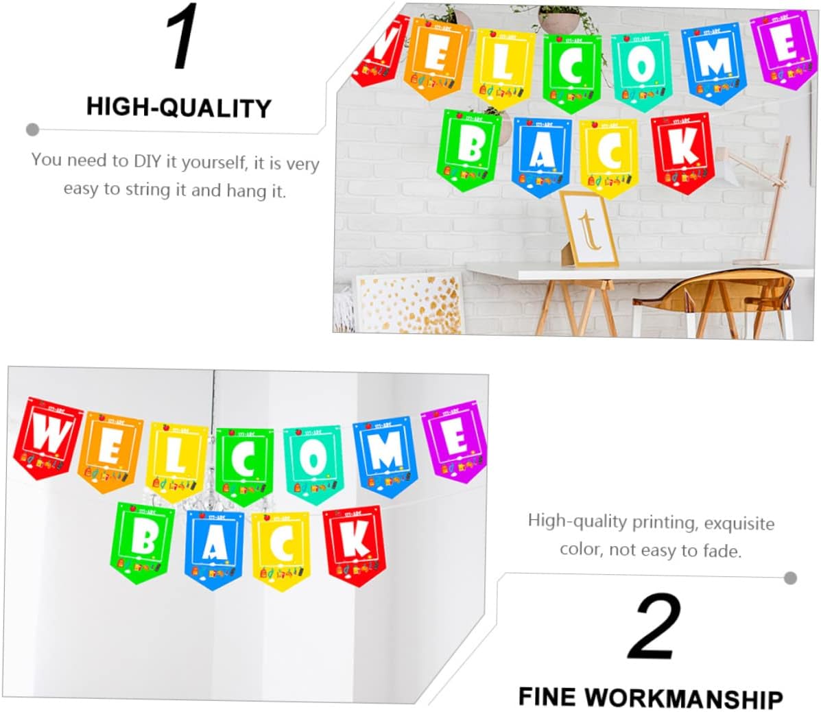 Decorazioni con ghirlande: il design a motivi di cartoni animati aggiungerà un'atmosfera festosa alla tua festa di ritorno a scuola., striscione con cartello di benvenuto. Gagliardetto di bentornato: scelta per i bambini da esporre il primo di scuola e decorazione dell'aula, del campus. Insegne per ufficio: devono essere semplicemente assemblate, adatte a insegnanti e studenti, gli ornamenti per ufficio. Forniture per feste di rientro a scuola: possono essere utilizzate come decorazioni per il rientro a scuola, decorazioni per la casa, decorazioni per l'aula, decorazioni per la scuola e il negozio, decorazioni per il rientro a scuola. L'ornamento dell'ufficio: per decorare l'aula del primo di scuola, le attività scolastiche o gli insegnanti, la scuola.