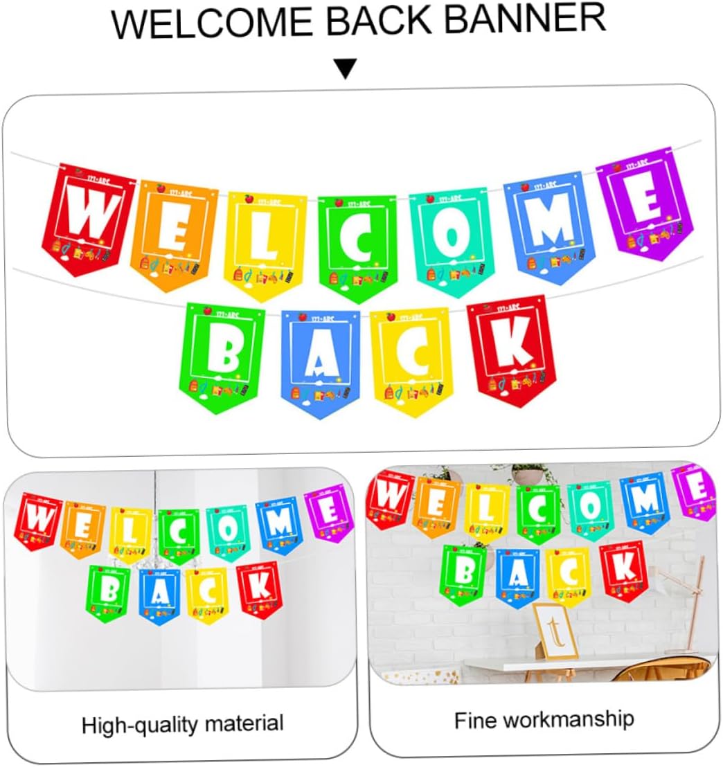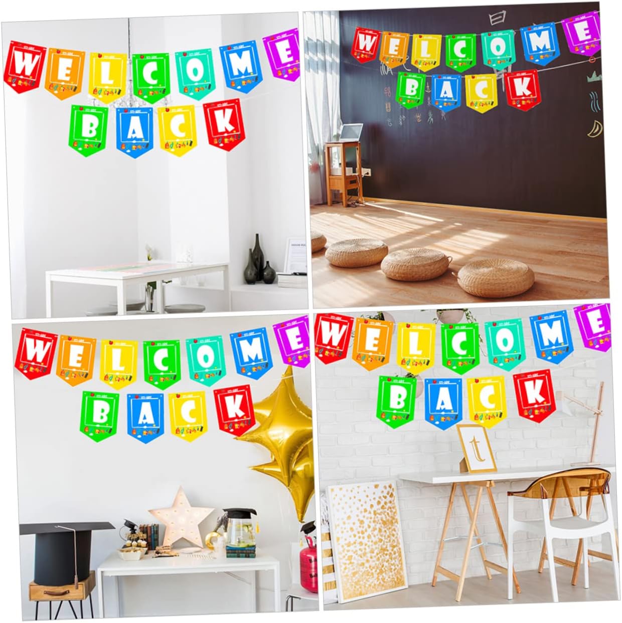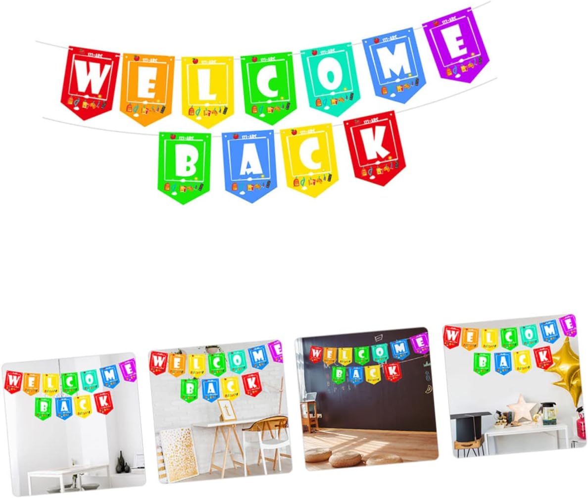 Decorazioni con ghirlande: il design a motivi di cartoni animati aggiungerà un'atmosfera festosa alla tua festa di ritorno a scuola., striscione con cartello di benvenuto. Gagliardetto di bentornato: scelta per i bambini da esporre il primo di scuola e decorazione dell'aula, del campus. Insegne per ufficio: devono essere semplicemente assemblate, adatte a insegnanti e studenti, gli ornamenti per ufficio. Forniture per feste di rientro a scuola: possono essere utilizzate come decorazioni per il rientro a scuola, decorazioni per la casa, decorazioni per l'aula, decorazioni per la scuola e il negozio, decorazioni per il rientro a scuola. L'ornamento dell'ufficio: per decorare l'aula del primo di scuola, le attività scolastiche o gli insegnanti, la scuola.