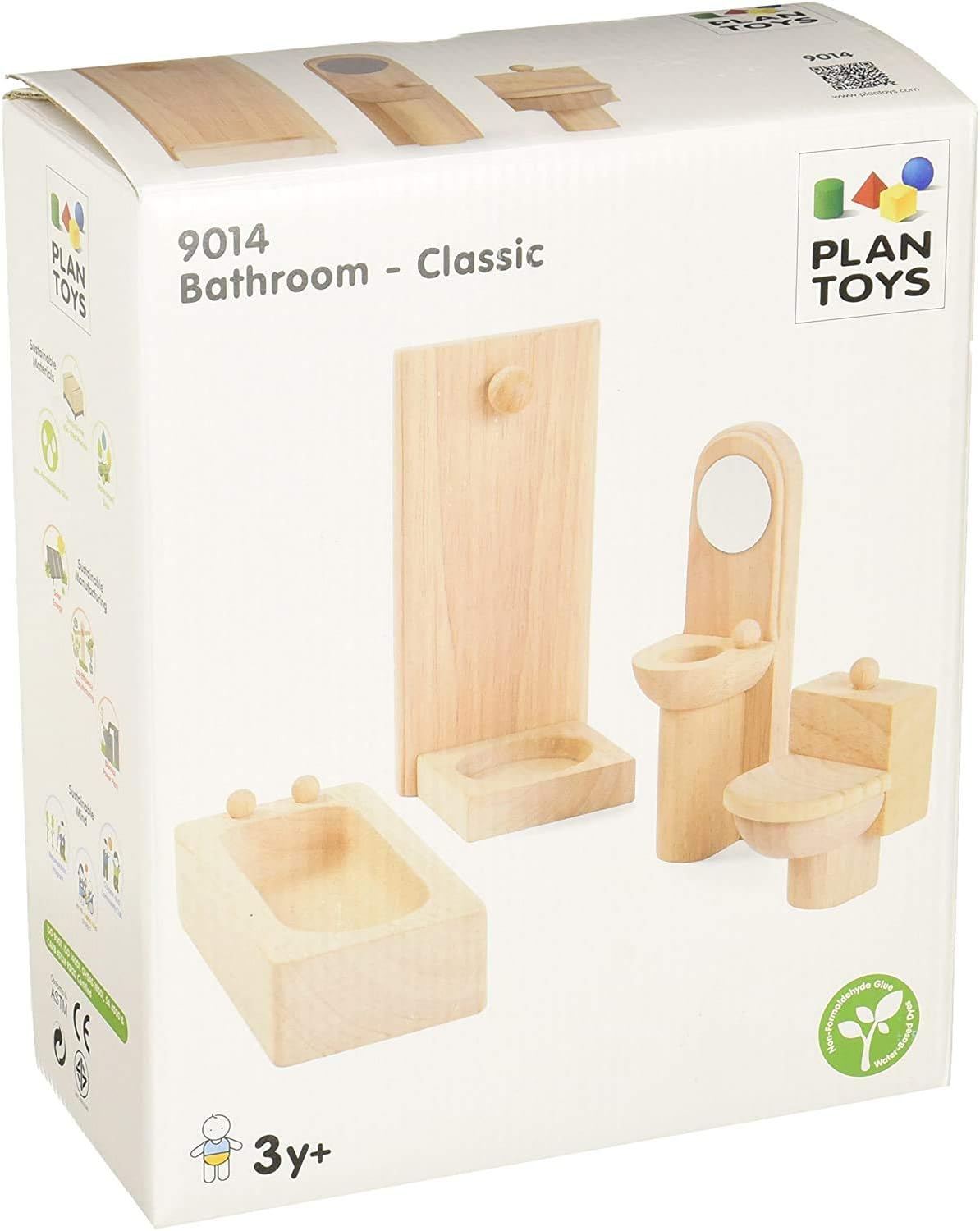Legno Vasca da bagno, lavabo, doccia e WC Scaled per accessoriare PlanToys Case delle bambole e le loro famiglie Realizzato con materiali atossici trattati chimicamente Rubberwood a PlanToys alta standard Aiuta a sviluppare la coordinazione occhio-mano e gioco immaginativo; adatto a bambini a partire dai tre anni