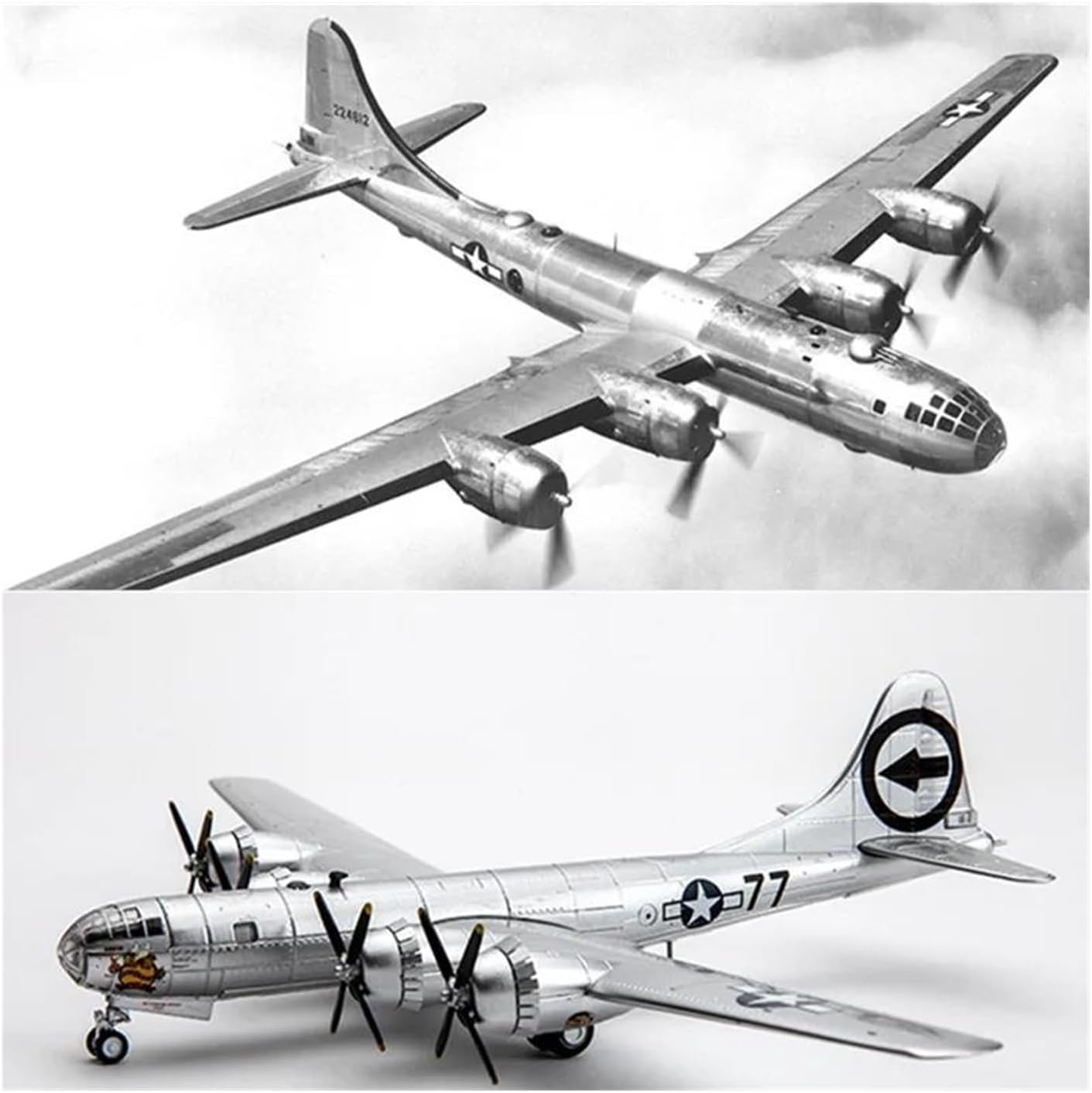 Funzione: questo modello di aereo pressofuso è un gioiello di modello da acquistare, puoi goderti i tesori unici dell'aviazione, ideali per i modellisti dell'aviazione, adatti come giocattoli e opere d'arte per amici e parenti. Modello in scala 1:144 B-29 Super Flying Fortress Bombardiere a elica per carichi pesanti quadrimotore. L'aeroplano giocattolo non è solo un giocattolo a sé stante, ma può anche essere utilizzato insieme ad altri giocattoli, come mattoncini, puzzle, ecc. È un giocattolo che ispira la creatività e l'immaginazione dei bambini, permettendo loro di creare le proprie storie di aviazione. Tutto sommato, il suo design autentico lo rende la scelta per chi è interessato ad aggiungere qualcosa di unico al proprio aeromodello. Ordina adesso il tuo aeromodello!
