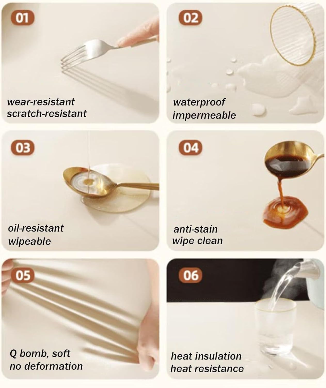 【Tovaglia in similpelle】: Realizzata in vinile di alta qualità, questa tovaglia in similpelle garantisce resistenza e una consistenza liscia. Il suo design minimalista in tinta unita conferisce un tocco di eleganza a qualsiasi ambiente. Che si tratti di tavoli da pranzo, feste o eventi, questa elegante tovaglia è facile da pulire e mantenere, il che la rende la scelta ideale for l'uso quotidiano. 【Protezione for tavolo】: tovaglietta in materiale PU di alta qualità. Questa copertura lavabile è antispruzzo, antigraffio, antigrasso, resistente al calore e impermeabile. Lo spessore ideale della tovaglia in PVC protegge efficacemente da usura, graffi e danni da alte temperature, garantendo una lunga durata. Questo accessorio essenziale mantiene il tuo tavolo da pranzo protetto ed elegante. Progettata appositamente for migliorare la tua esperienza culinaria, questa tovaglia effetto pelle. Tovaglia con superficie realizzata in resistente similpelle. Progettata con una confezione in stile cuffia da doccia, offre una copertura a 360° for evitare scivolamenti, garantendo stabilità e resistenza a deformazioni o spostamenti. Questo fissa saldamente la tovaglia alle stoviglie. Adatta a piani di tavoli di vario spessore. Copritavolo da pranzo in pelle, realizzato su misura for adattarsi al tuo tavolo da pranzo.