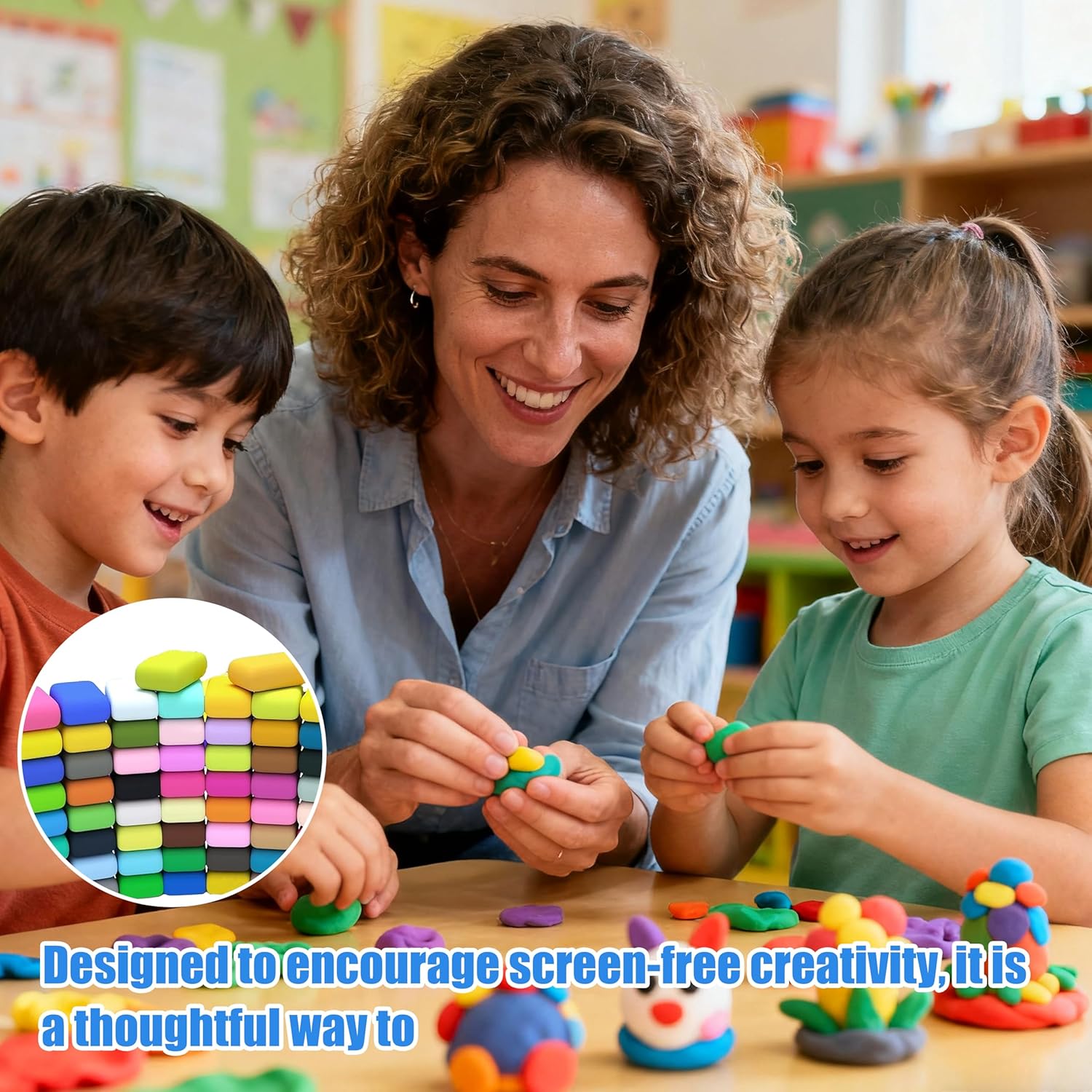 Set completo con 72 colori vivaci: questo kit di plastilina per bambini include 72 blocchi da 10g ciascuno in tonalità brillanti, offrendo infinite possibilità creative per modellare animali, personaggi, miniature o decorazioni festive. Ideale per attività artistiche in classe o a casa, aiuta a sviluppare la fantasia e la coordinazione in modo divertente e colorato, incoraggiando la creatività manuale e l’apprendimento attraverso il gioco. Kit creativo facile da usare: fornito con 72 pezzi di plastilina ad asciugatura all’aria, 3 strumenti di modellazione, borsa richiudibile e manuale illustrato, è perfetto per bambini e principianti. Pensato per progetti scolastici fai-da-te, lavoretti di compleanno o decorazioni stagionali, consente di dare vita a idee originali senza bisogno di forno o attrezzature complesse, stimolando l’immaginazione e la manualità fine. Materiali sicuri e certificati: la nostra plastilina modellabile è realizzata con ingredienti naturali atossici, conforme agli standard di sicurezza ASTM e CE EN-71. Sicura per bambini sopra i 3 anni sotto la supervisione di un adulto, garantisce tranquillità ai genitori e un’esperienza di gioco priva di rischi. Non commestibile, ma perfetta per ore di divertimento creativo in totale sicurezza. Morbida, elastica e pronta all’uso: la consistenza leggera e soffice rende la plastilina facile da modellare anche per le mani più piccole. È flessibile e si stende senza sforzo, asciugando naturalmente in 24-48 ore mantenendo la forma creata. Perfetta per realizzare oggetti decorativi o piccoli regali artigianali che durano nel tempo senza bisogno di cottura. Regalo creativo per ogni occasione: ideale come sorpresa di compleanno, pensiero natalizio o premio scolastico, questo set di plastilina colorata incoraggia attività senza schermi, promuovendo l’apprendimento attraverso il gioco manuale. Un dono che stimola la fantasia e la capacità di concentrazione, trasformando ogni momento libero in un’occasione di creazione artistica.