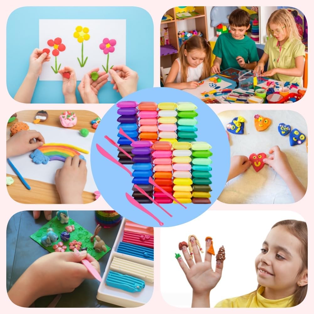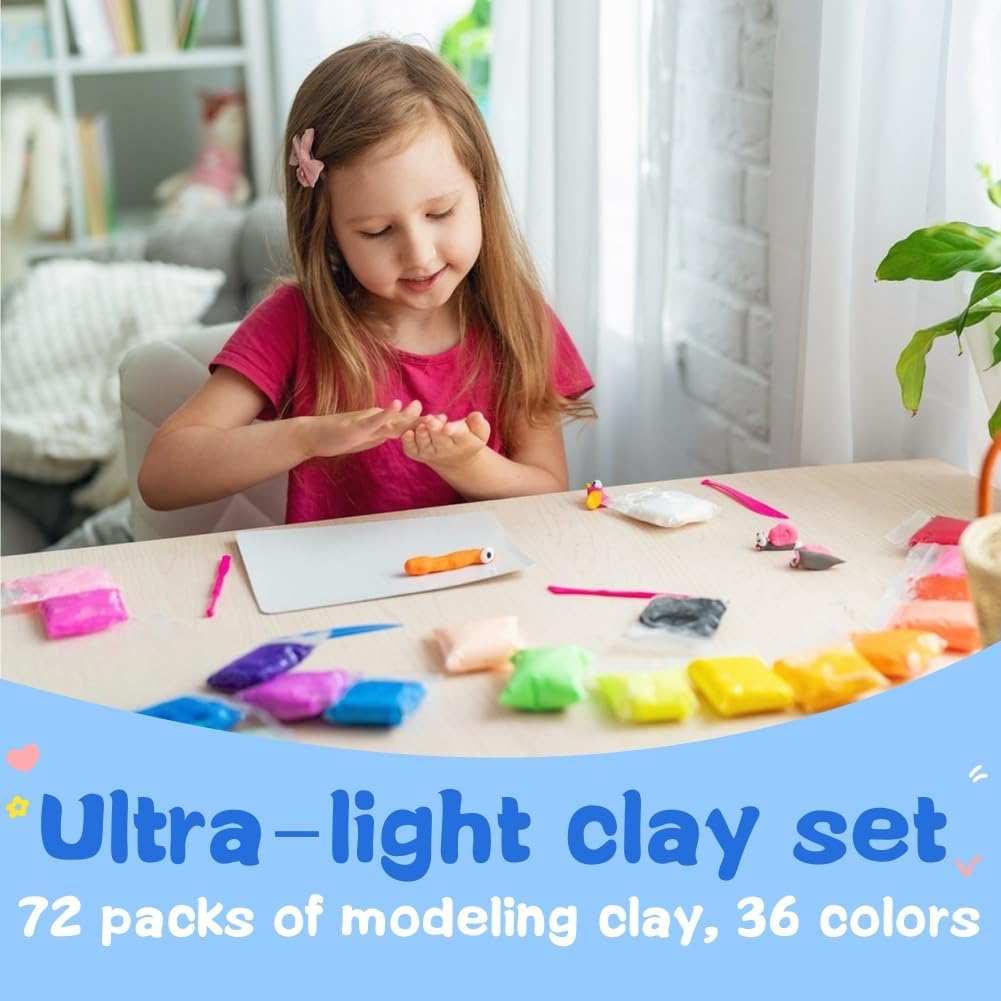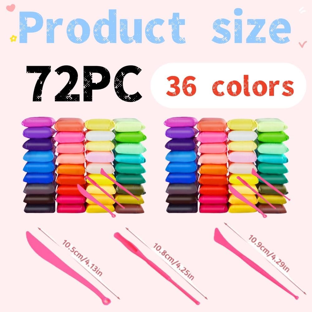 Confezione del prodotto: il prodotto contiene 72 pezzi di plastilina. Materiali di alta qualità: realizzata con materiali di alta qualità, morbida, elastica e non appiccicosa. Facile da modellare, allungare e piegare, rendendo più semplice la miscelazione di colori diversi. Facile da usare: la plastilina si indurisce completamente entro 24 ore. Conservare in un sacchetto richiudibile per evitare che si secchi. Dopo l'uso, assicurarsi di richiudere bene il sacchetto. Ampia gamma di applicazioni: adatta per creare animali, cibo, fiori e altre forme, migliorando al contempo la coordinazione occhio-mano dei bambini durante il gioco.