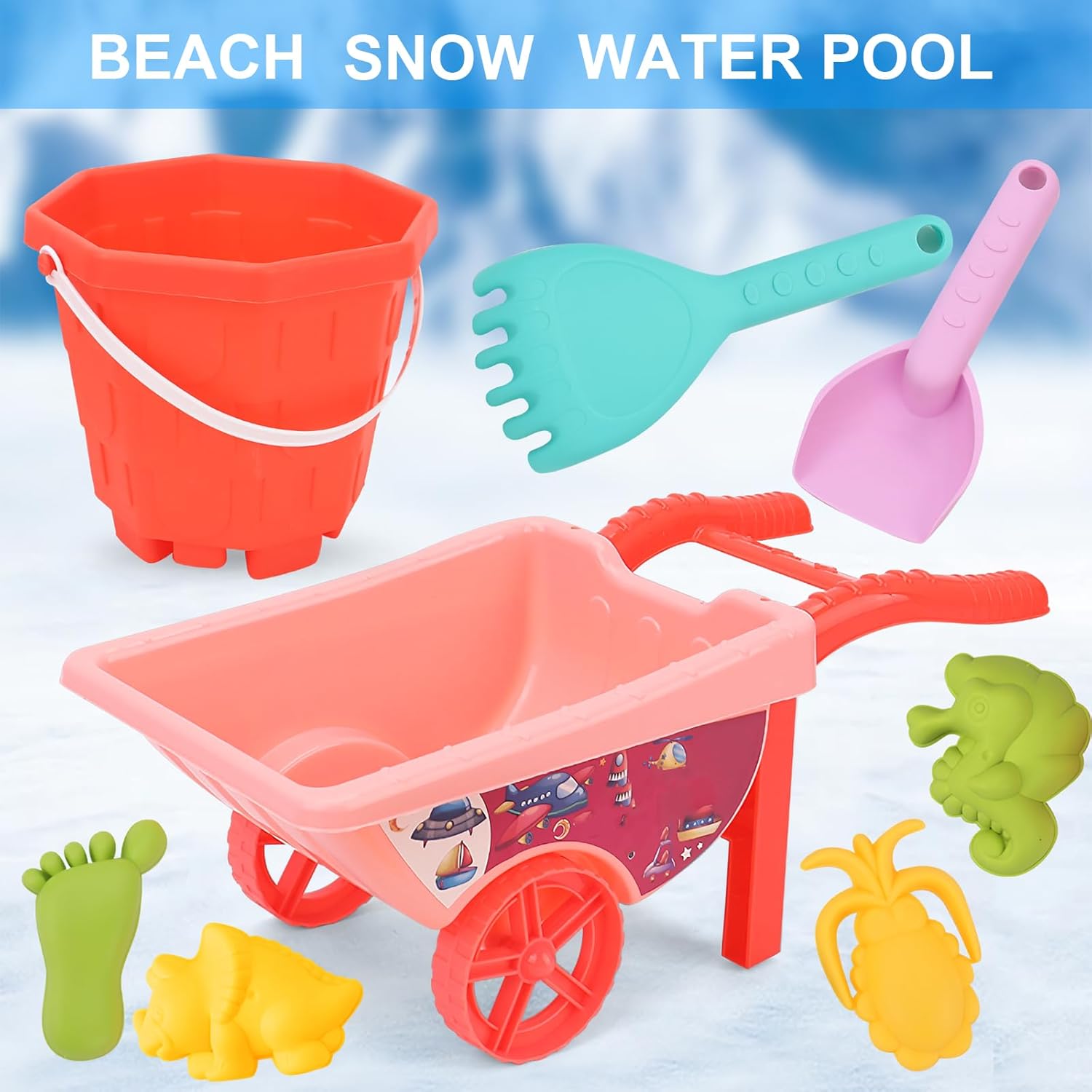 materiale ABS sicuro, questo giocattolo da playset sabbia è ottimo per divertimento all'aperto. Consenti facilmente lo stoccaggio e trasporto Scopri set sabbia per bambini! set secchi sabbia include le necessarie stampi per migliorare l'esperienza del gioco della spiaggia per bambini Porta set giocattoli sulla spiaggia, a bordo piscina o qualsiasi posizione all'aperto per l'intrattenimento. mentre tuo figlio goditi gioco fantasioso in vari contesti set secchi sabbia è ottimo per giovane adventurale. Con suo giocattolo sabbia qualità e vari stampi, offre ore divertimento esplorazione. GetReady per non forgettablemories Ottimo per i bambini età pari o superiore a 3 anni, set giocattoli per secchio sabbia incoraggia la creatività e l'immaginazione. Lascia che tuo bambino esplora la sabbia e crei sculture uniche sabbia
