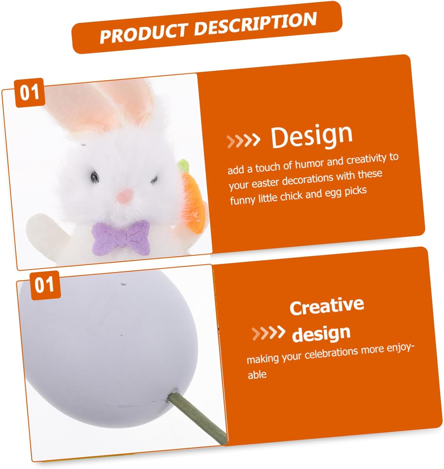 Decorazione giocosa: aggiungi un elemento giocoso e creativo alle tue decorazioni pasquali con questi divertenti stuzzicadenti per conigli e uova e rendi la tua celebrazione ancora più piacevole Creatività fai-da-te: questi plettri sono ideali per progetti fai da te e ti consentono di creare composizioni floreali e decorazioni personalizzate che riflettono il tuo stile unico Versatili: questi plettri sono un'ottima scelta per i regali di Pasqua e sono adatti a una varietà di destinatari e occasioni Adorabile e divertente: il design carino e stravagante degli spiedini di coniglietto e uova attirerà l'attenzione degli ospiti e aggiungerà un tocco divertente alle tue decorazioni pasquali. il tuo arredamento Materiali robusti: realizzati con materiali durevoli e affidabili, questi plettri sono costruiti per durare e possono essere riutilizzati per molte Pasque a venire