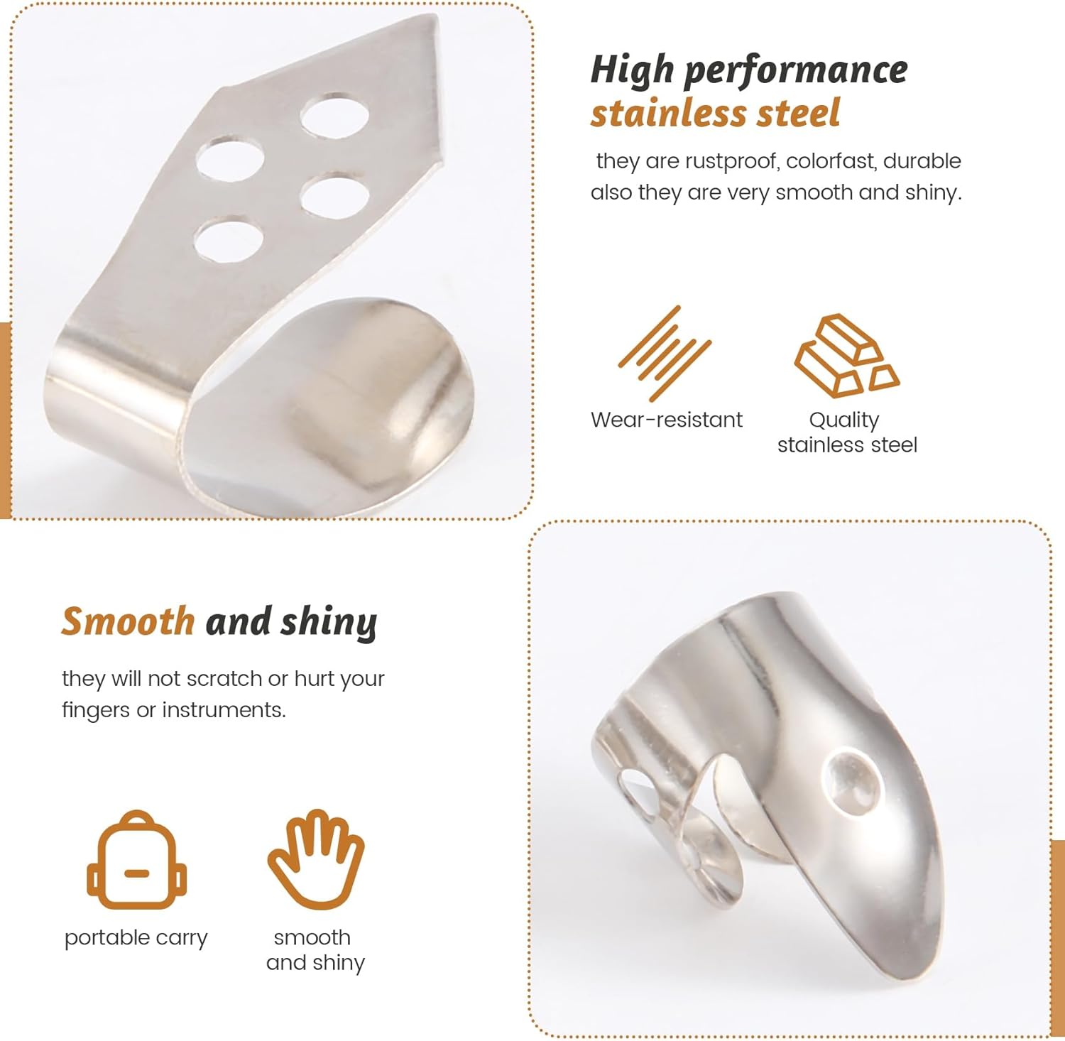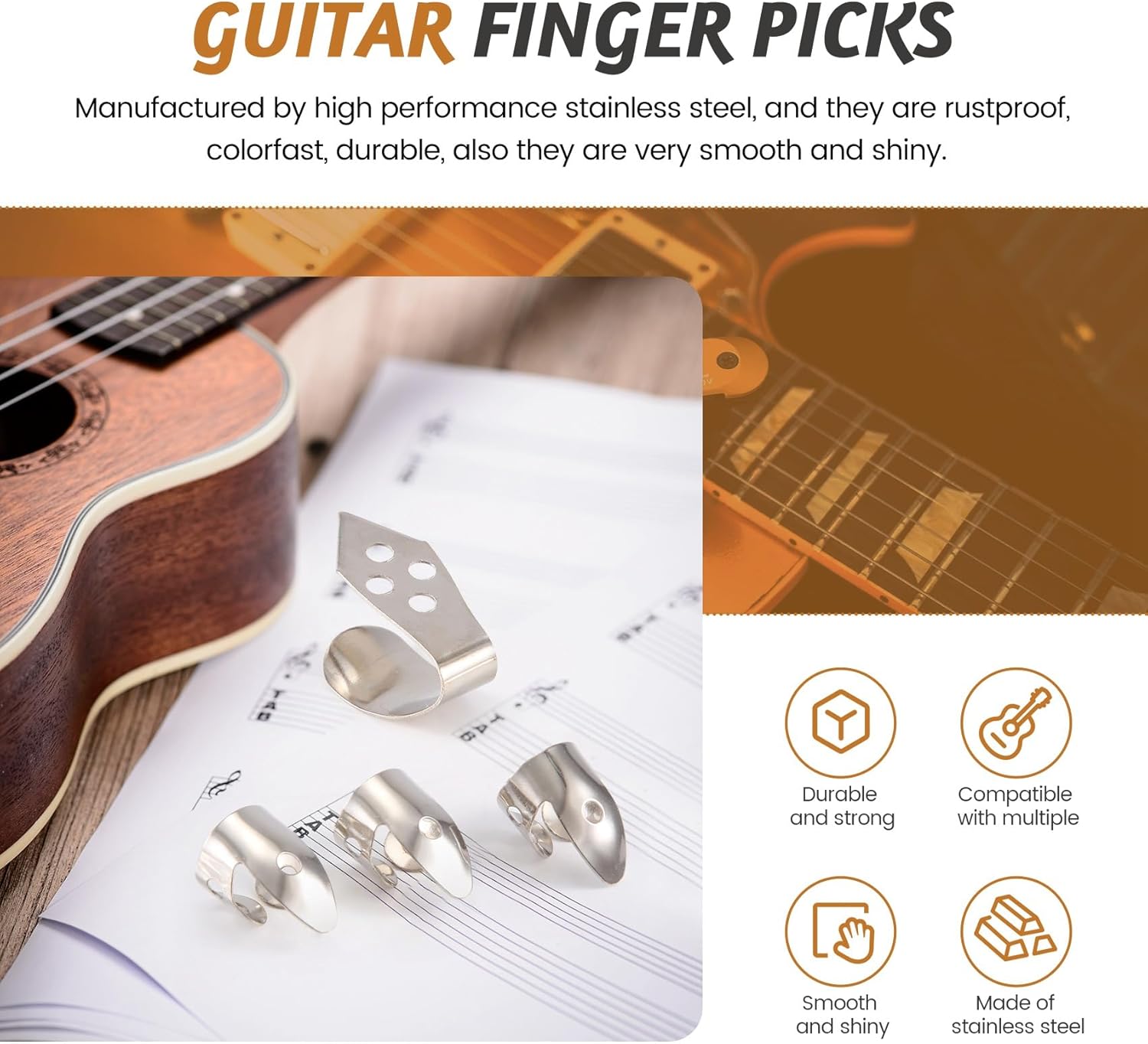 Realizzati in acciaio inossidabile ad alte prestazioni, sono antiruggine, resistenti al colore, durevoli, inoltre sono molto lisci e lucenti. Leggero per il trasporto portatile Alta qualità per un uso durevole e duraturo. I plettri per chitarra sono comodi da usare, bordi affilati, non graffieranno o danneggeranno le o gli strumenti. Adatto per la maggior parte delle . Adatto per chitarre, basso, ukulele e altri strumenti.