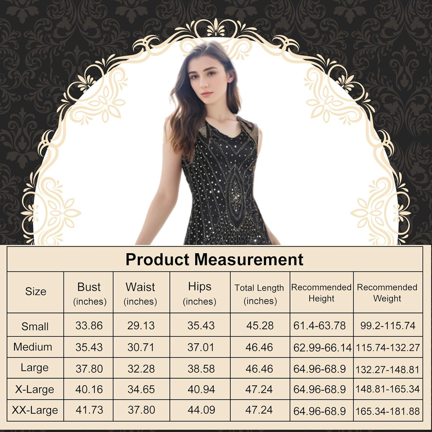 Ich schreibe selten Rezensionen, aber heute muss ich mal. Das Kleid habe ich in XL bestellt, normalerweise trage ich Gr. 38/40. Es passt super und macht optisch etwas her. Das Zubehör wertet das Outfit nochmal auf. Ich bin sehr zufrieden. Fasching kann kommen.